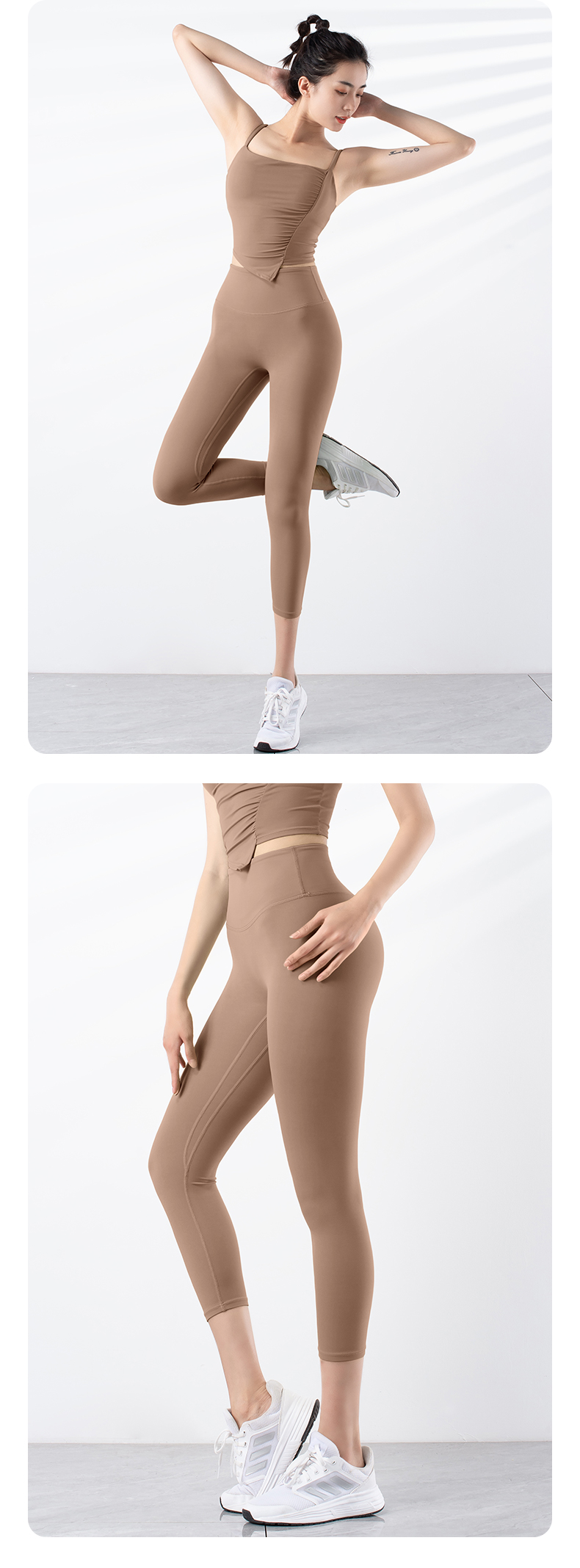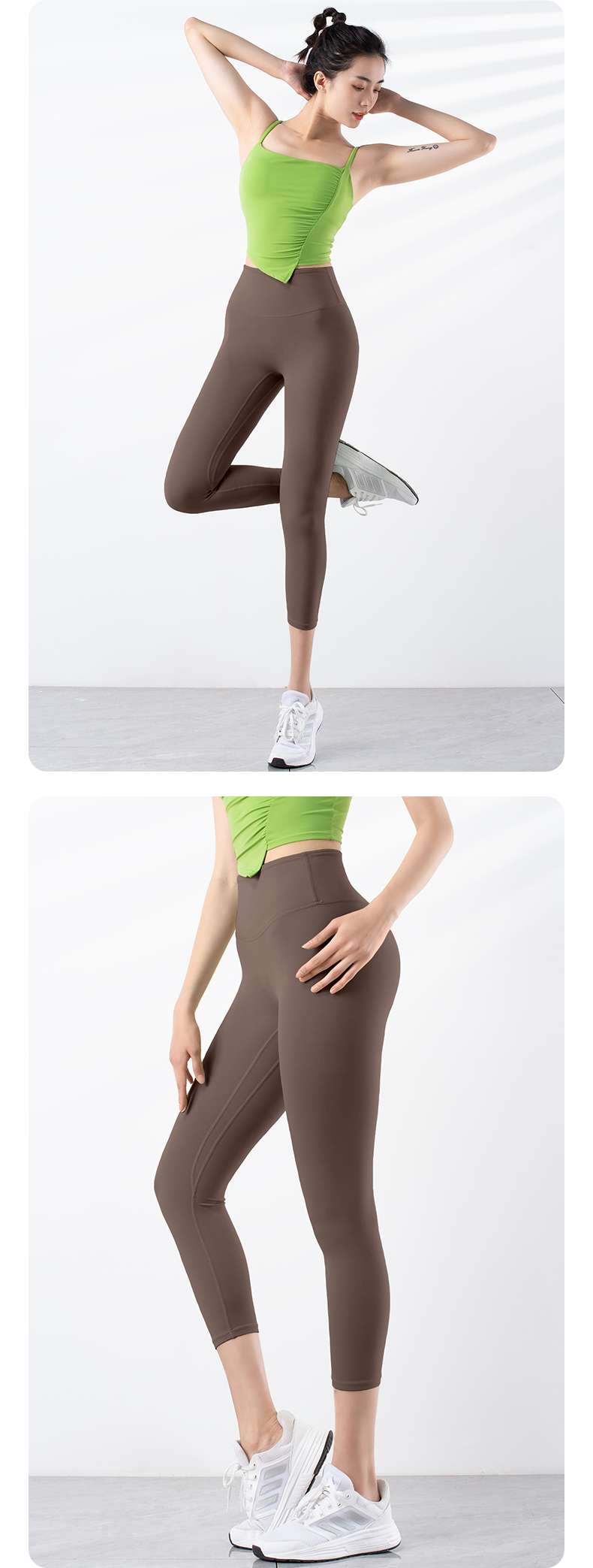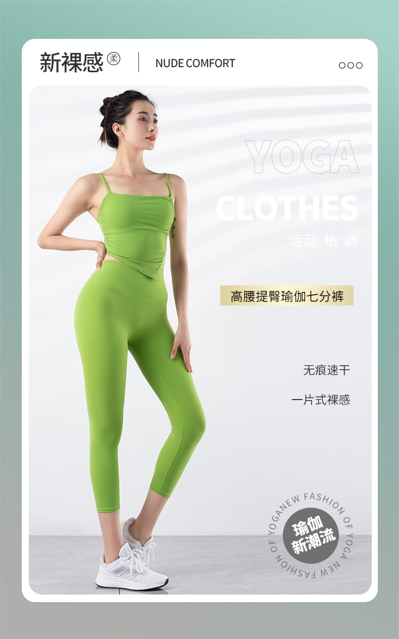 跃牌【禅语梵心系列】新品无痕速干塑身高腰提臀一片式裸感瑜伽七分裤F2243