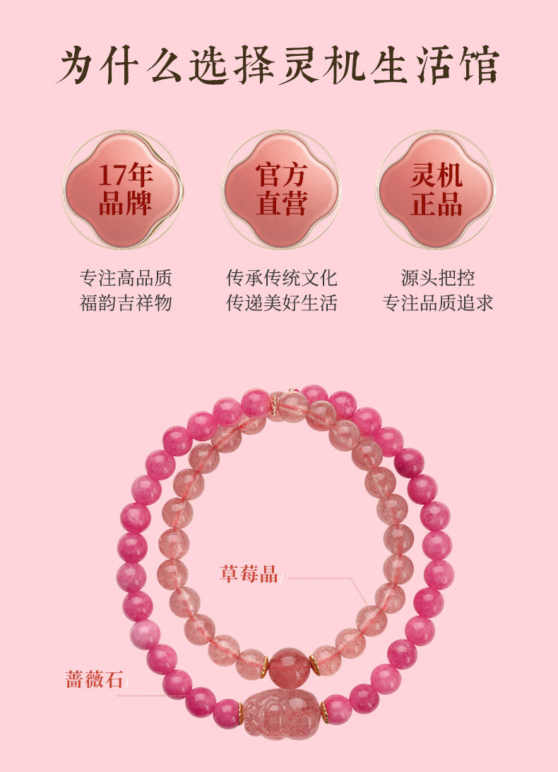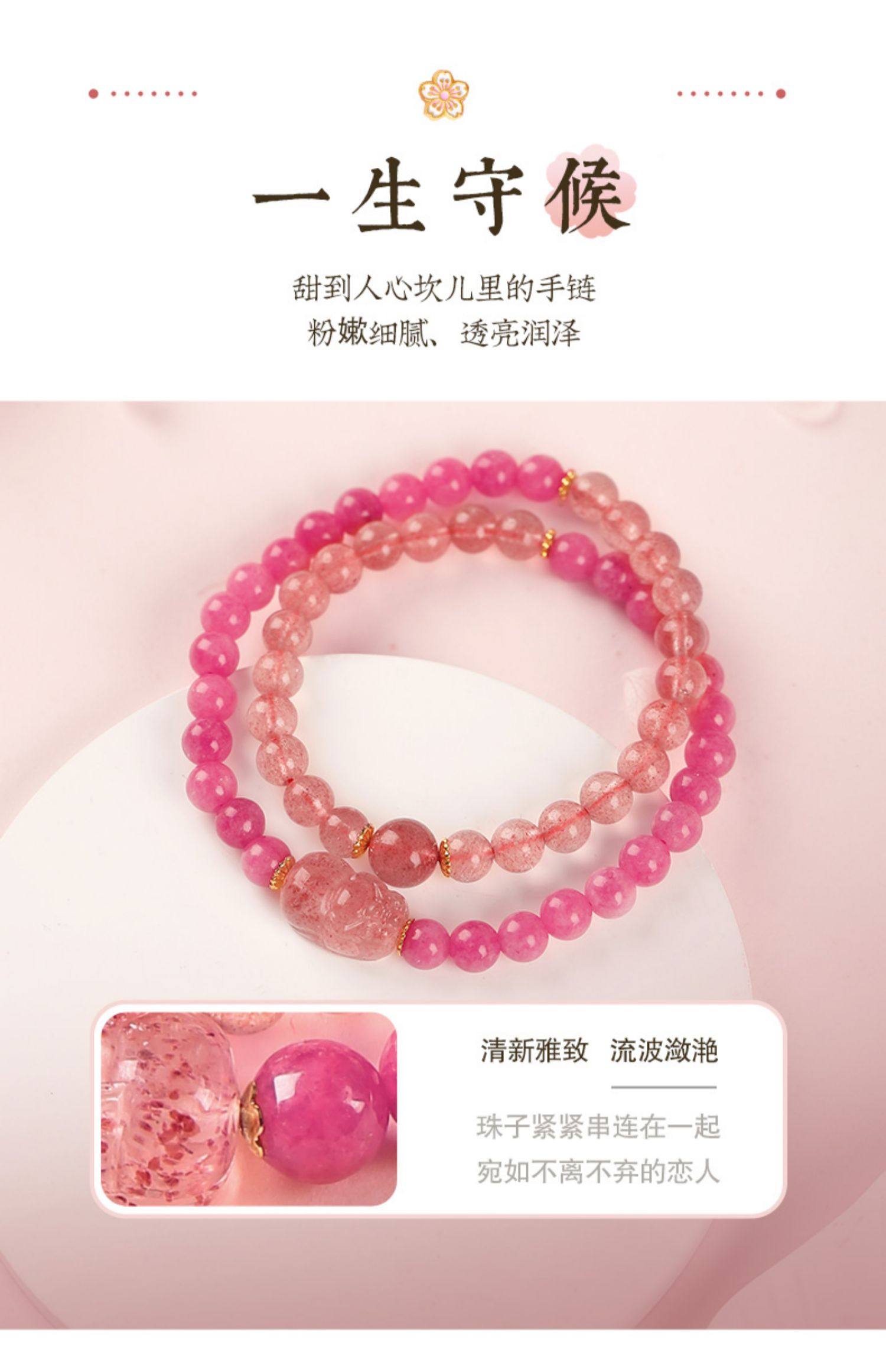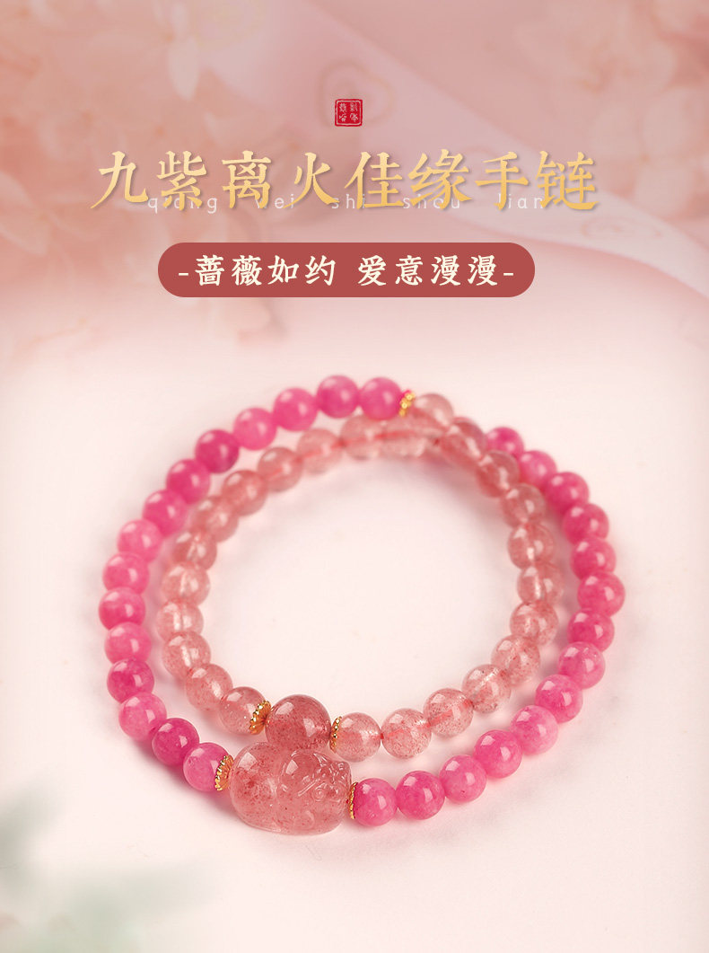 【祈愿吉品】九紫离火佳缘手链女桃花双圈草莓晶
