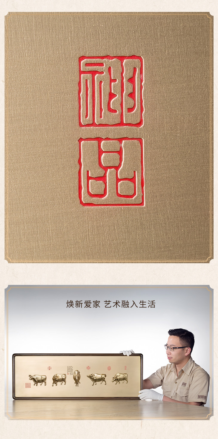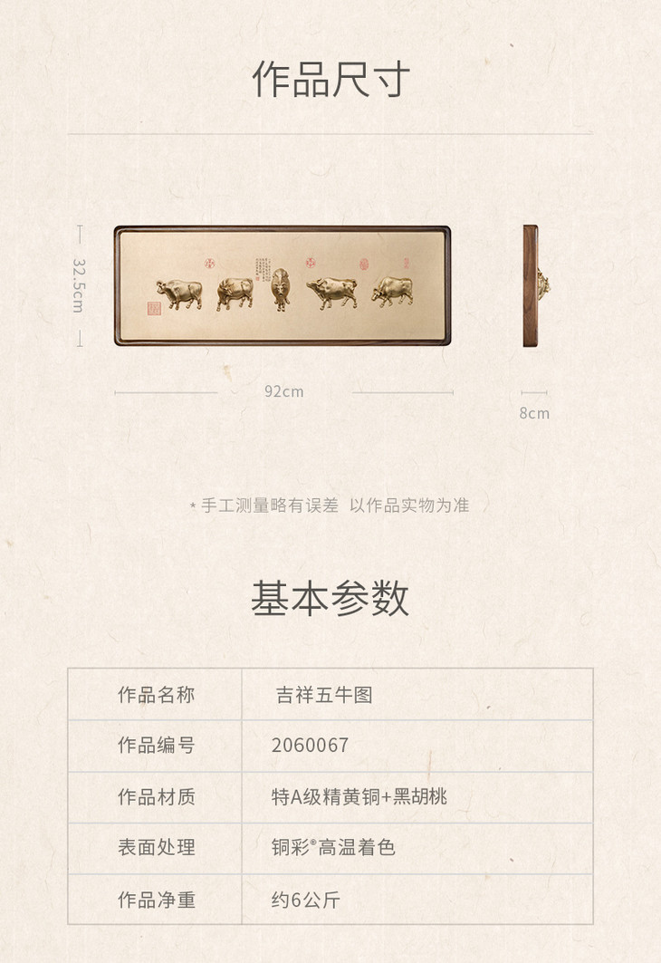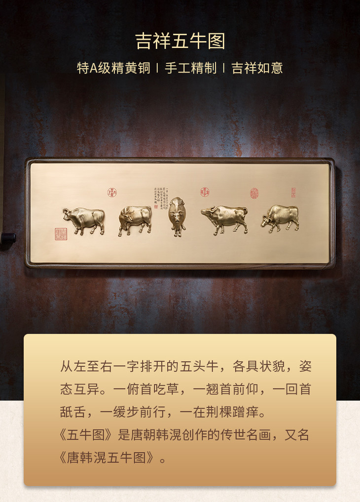 铜师傅 全铜摆件 《吉祥五牛图》