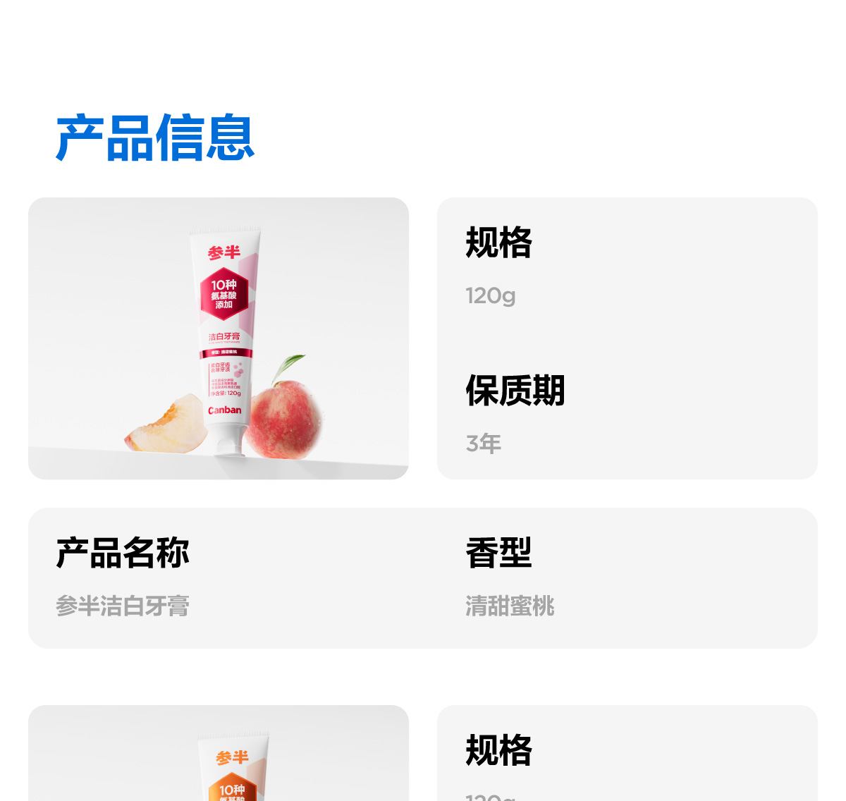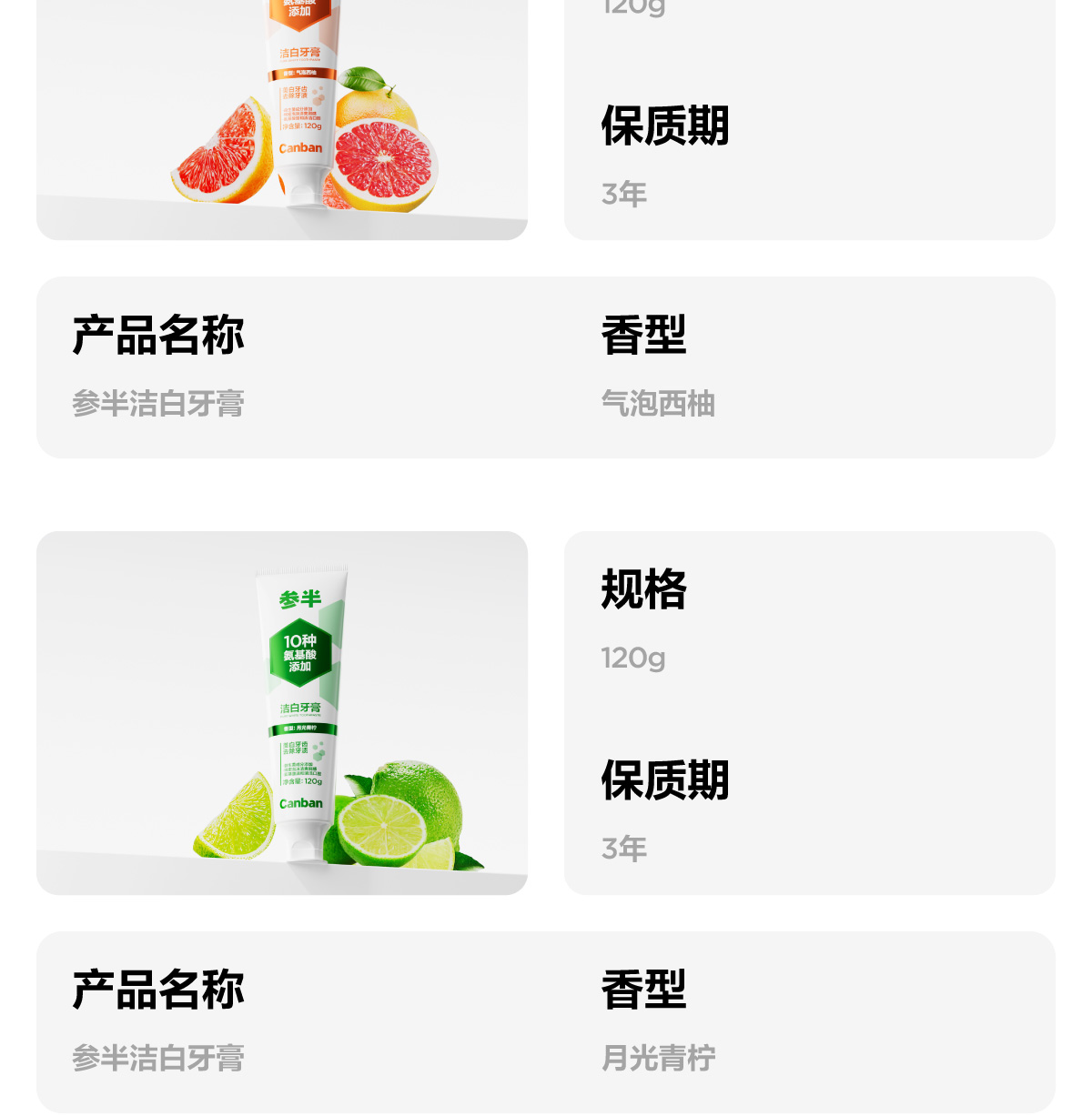 【新品上新】参半洁白牙膏青柠味/西柚味/蜜桃味(120g)