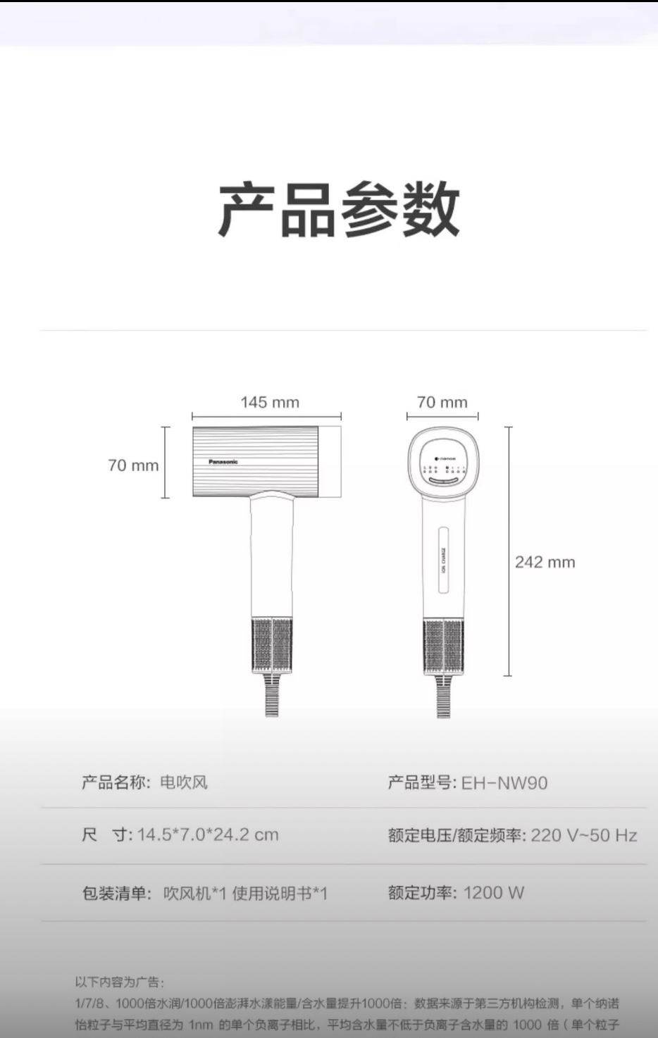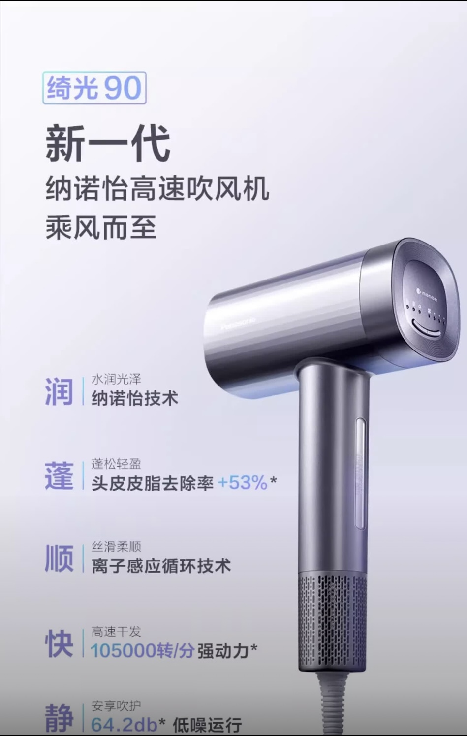 【春上新】10楼 松下(Panasonic)纳诺怡高速马达大概率速干护发机 EH-NW90 吊牌价999元 活动价659元