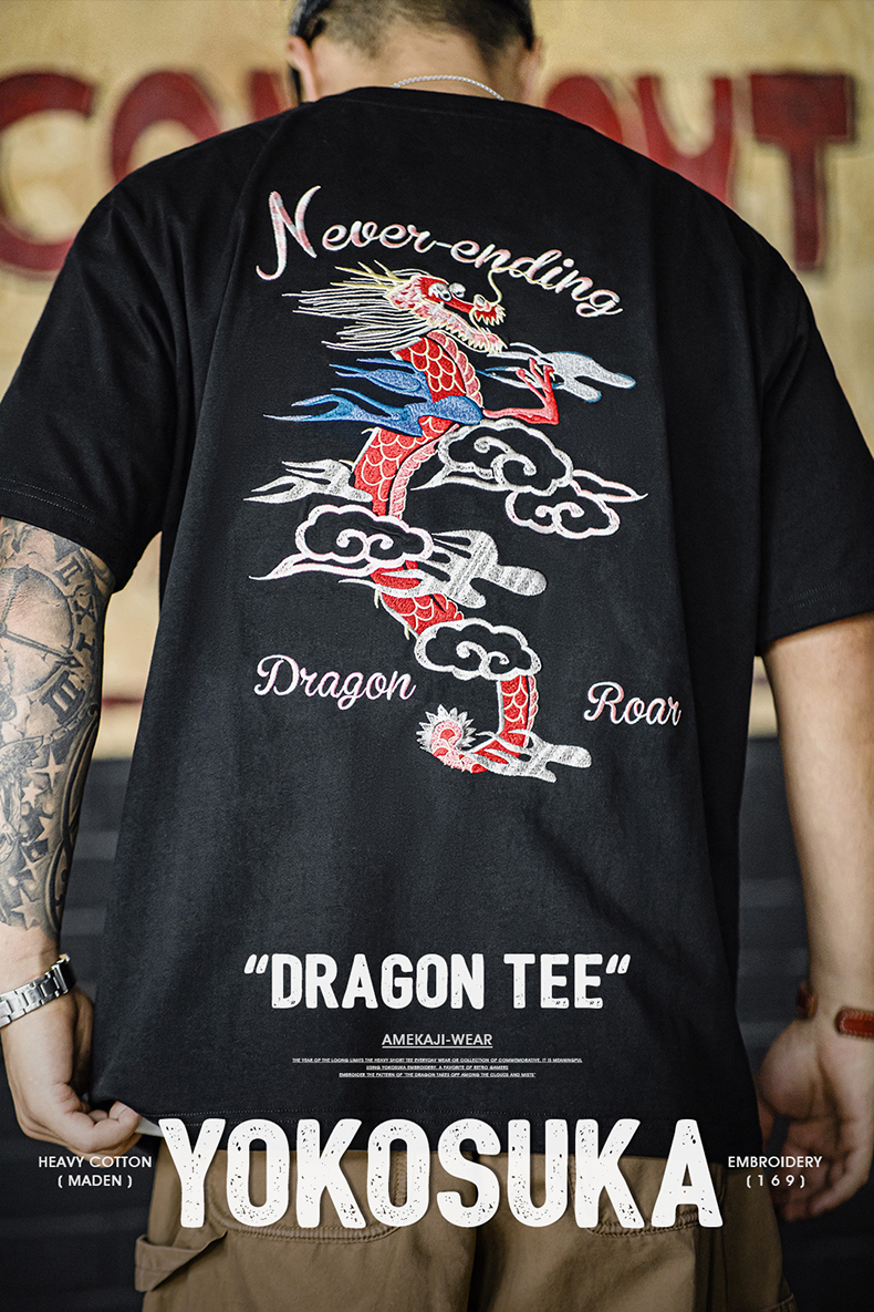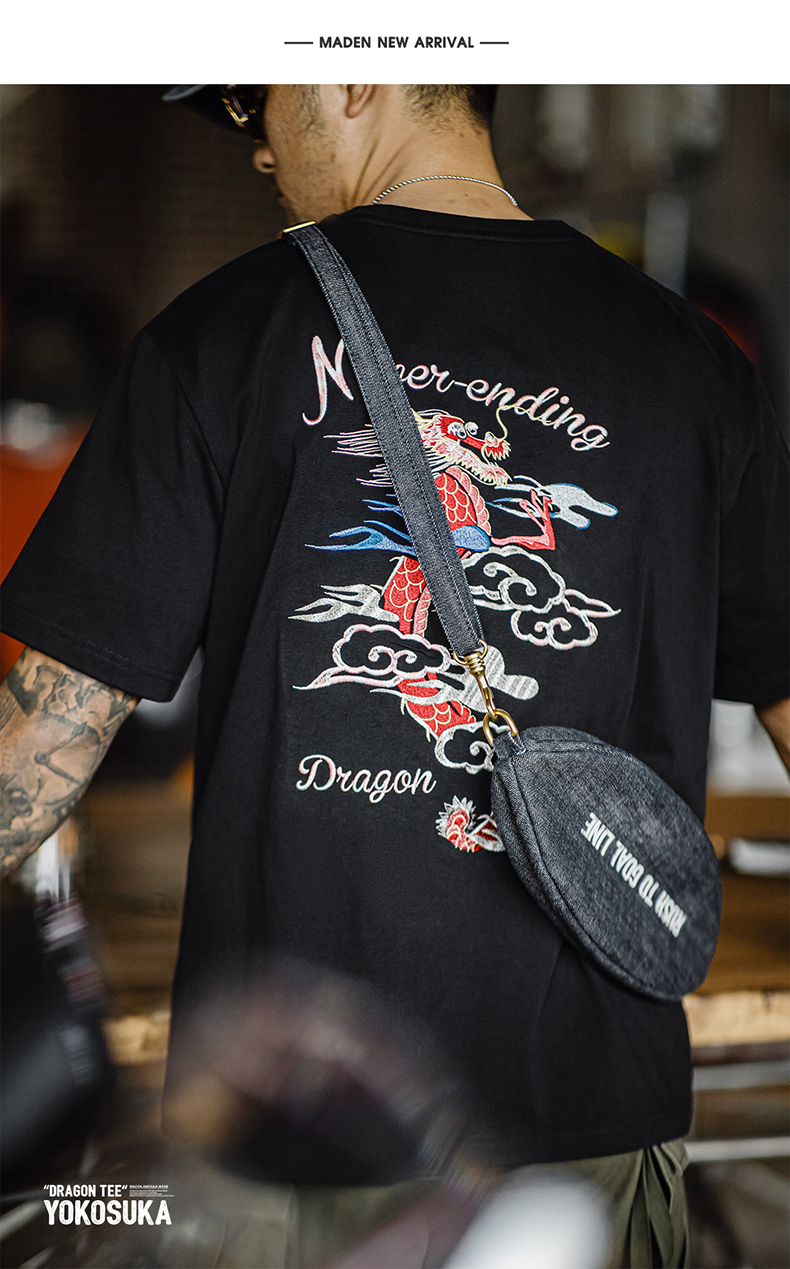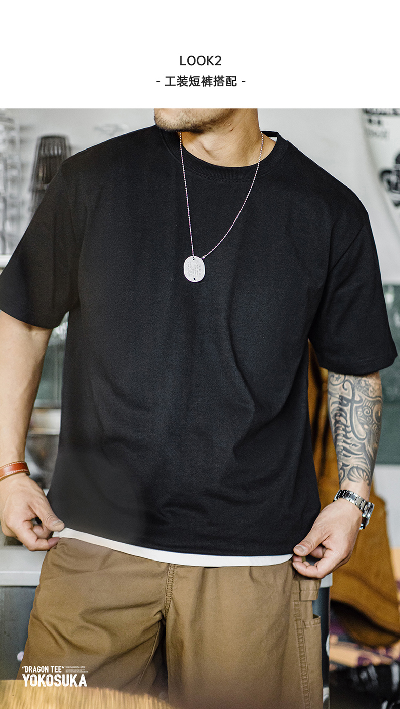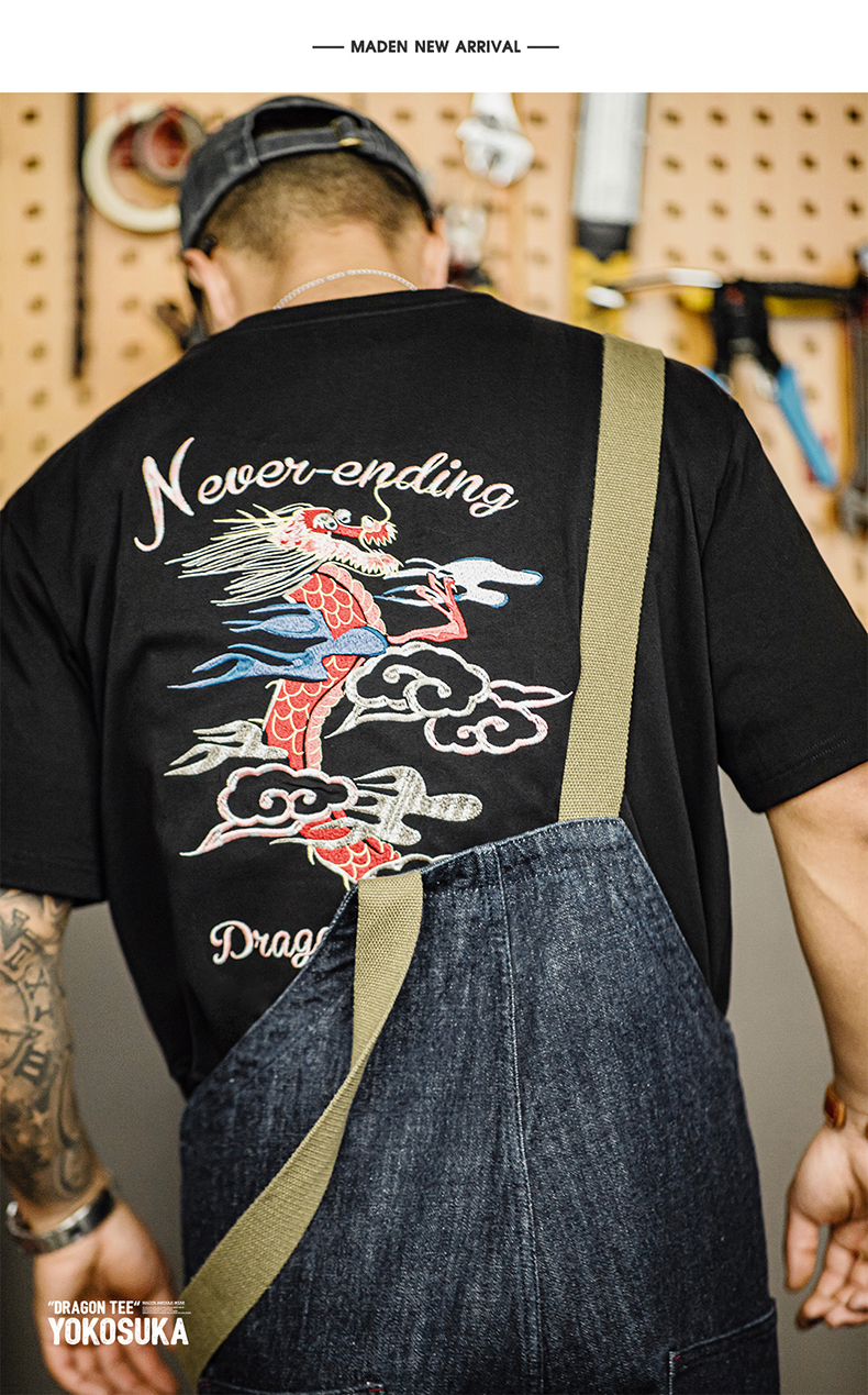 马登工装美式复古有龙则灵重工刺绣T恤横须贺重磅纯棉短袖Tee男夏