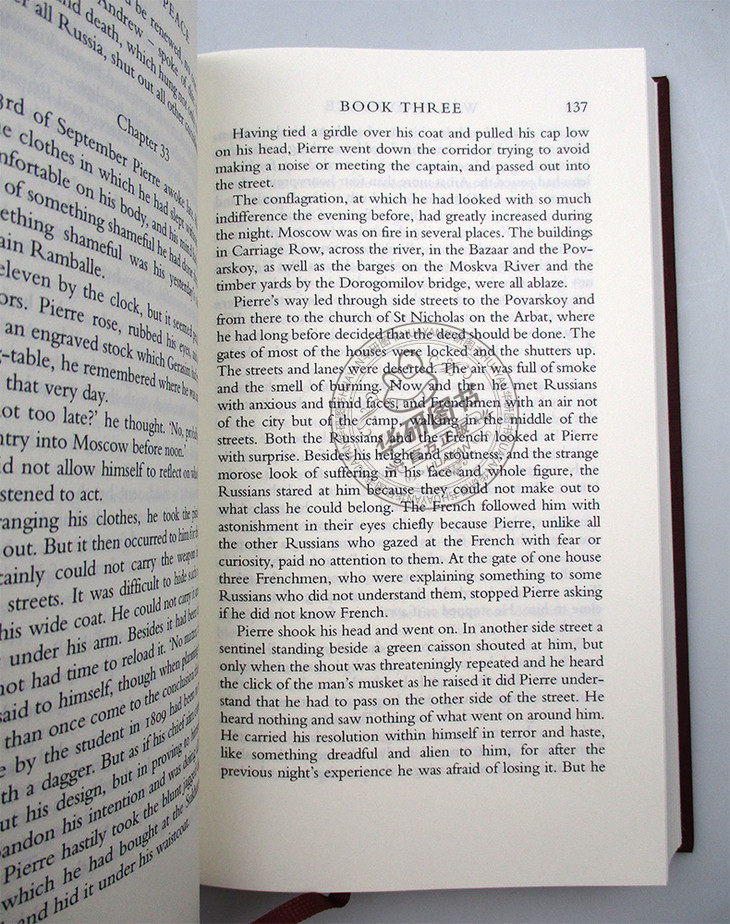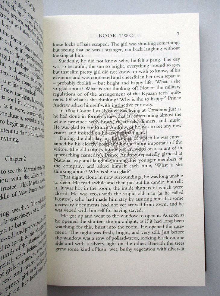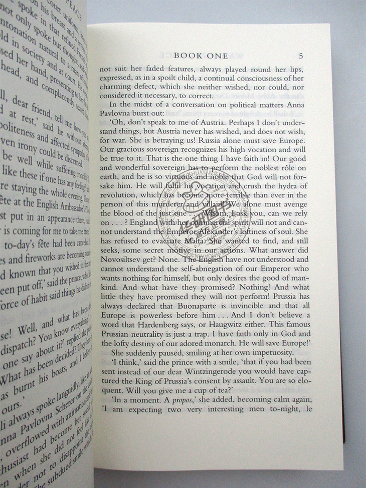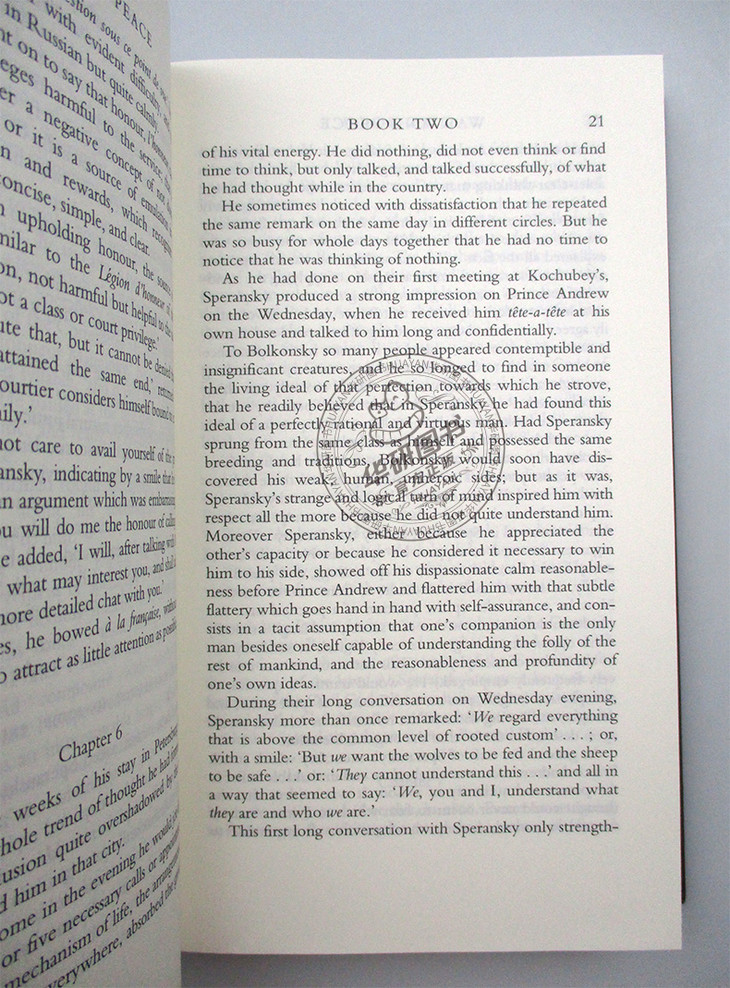 War and Peace《战争与和平》是一部宏伟巨著,它以战争问题为中心,以库拉金、包尔康斯基、劳斯托夫、别竺豪夫四家贵族的生活为线索,展示了19世纪初15年的俄国历史,描绘了各个阶级的生活,是一部再现当时社会风貌的恢弘史诗。作品中的各色人物刻画精准细腻,景物如临眼前,虽是19世纪的小说作品,但流传至今,却没有任何隔阂感,其中流露出来对人性的悲悯情怀,穿越时空背景,仍旧撼动人心。《战争与和平》恢弘的构思和艺术描写震惊世界文坛,成为举世公认的世界文学名著和人类宝贵的精神财富。英国作家毛姆及诺贝尔文学奖得主罗曼·罗兰称赞它是“有史以来伟大的小说”,“是我们时代伟大的史诗,是近代的伊利亚特”。