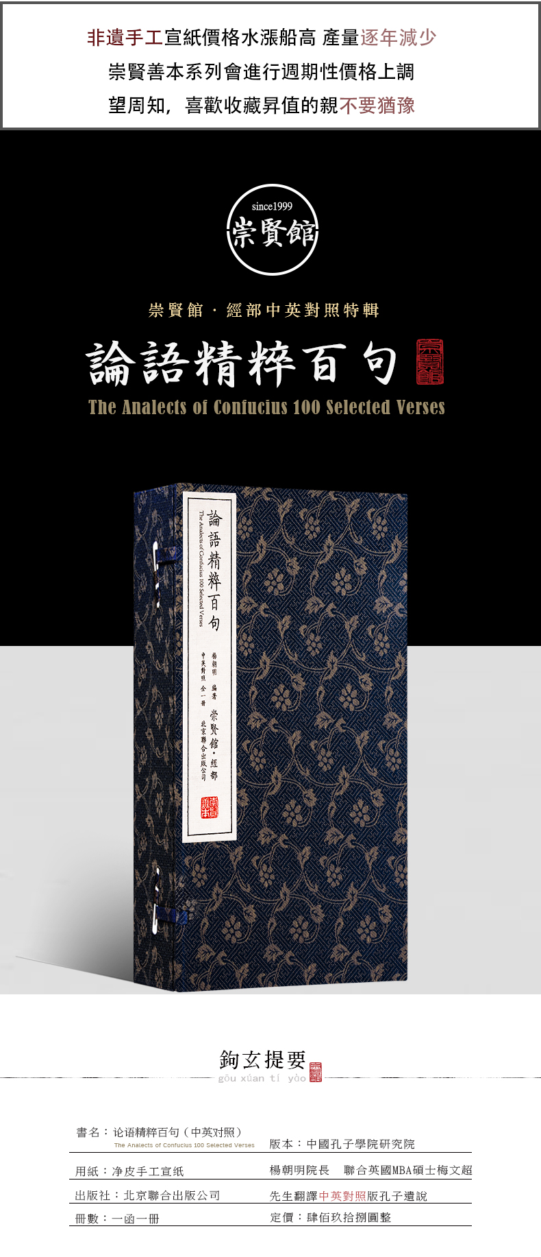 古体本《论语精粹百句》 手工宣纸线装繁体竖排(一函一册)