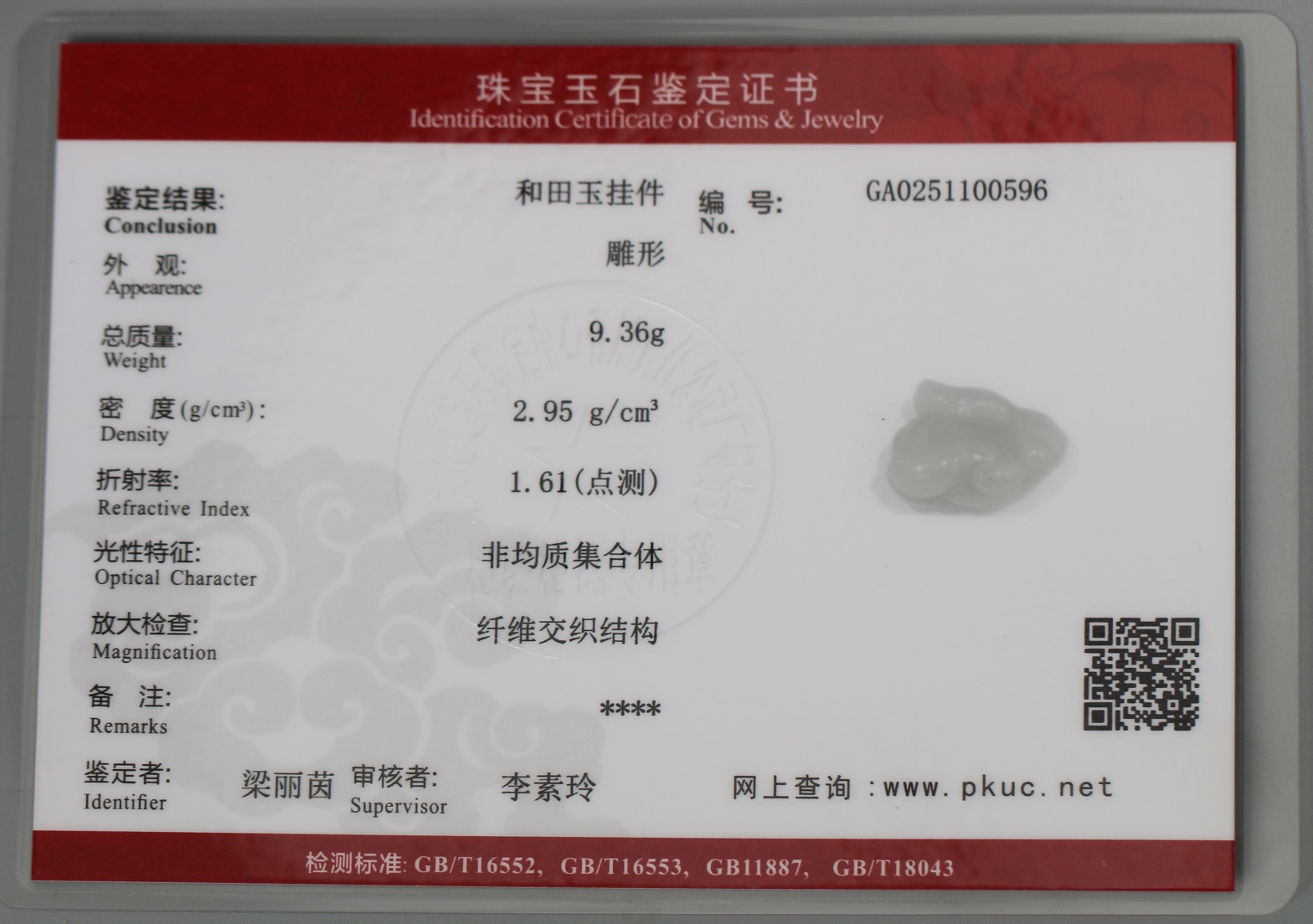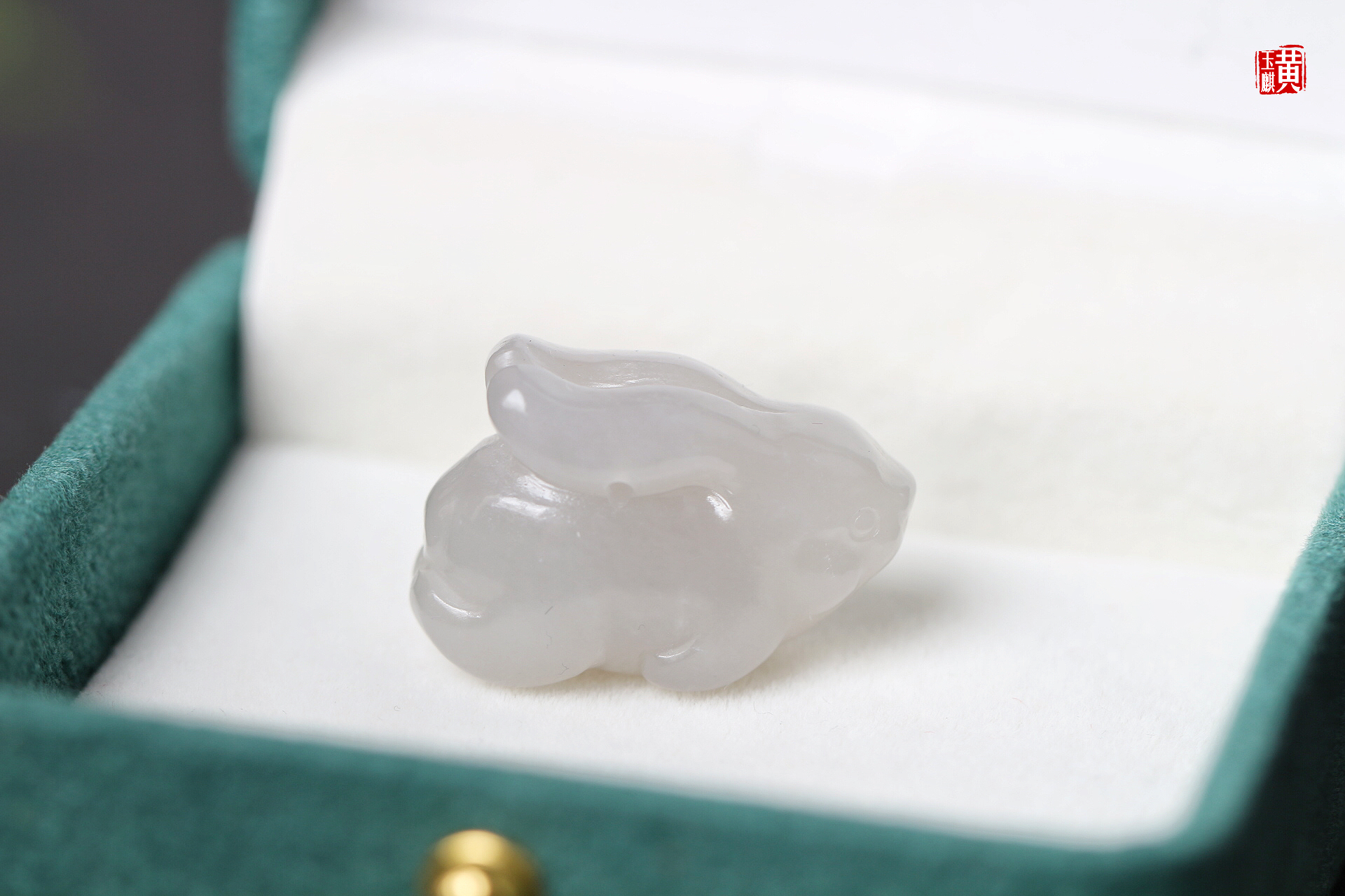 和田烟青玉【玉兔】吊坠 配精美挂绳