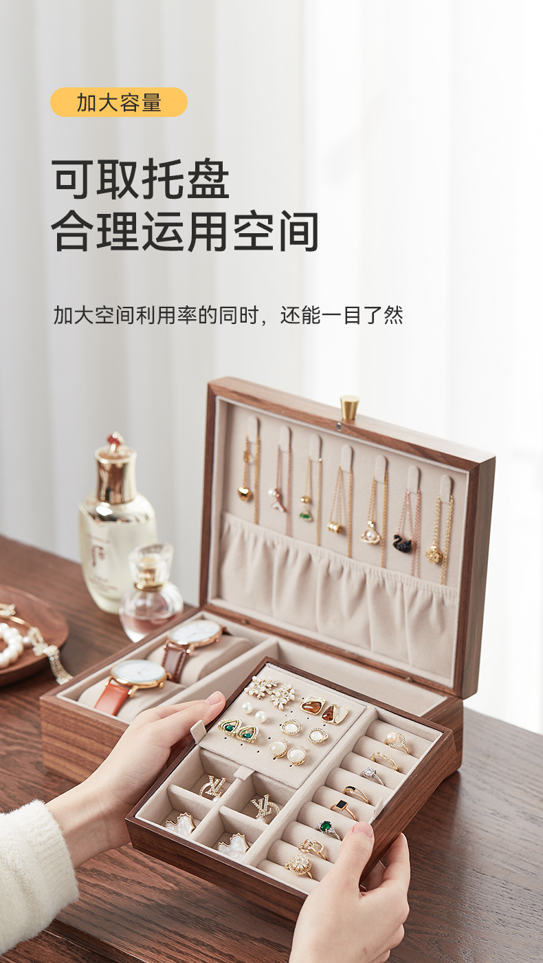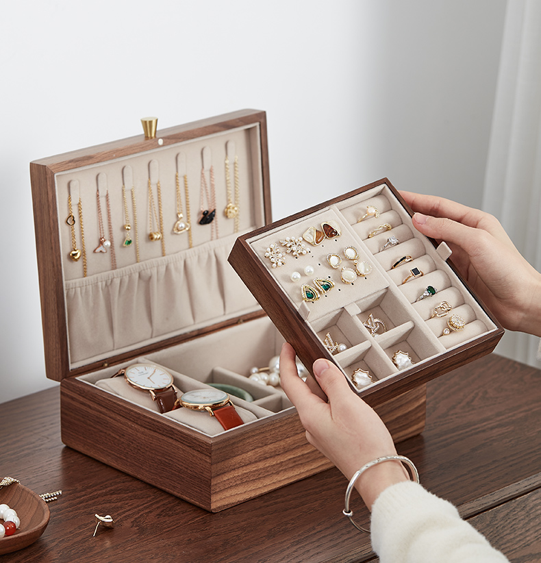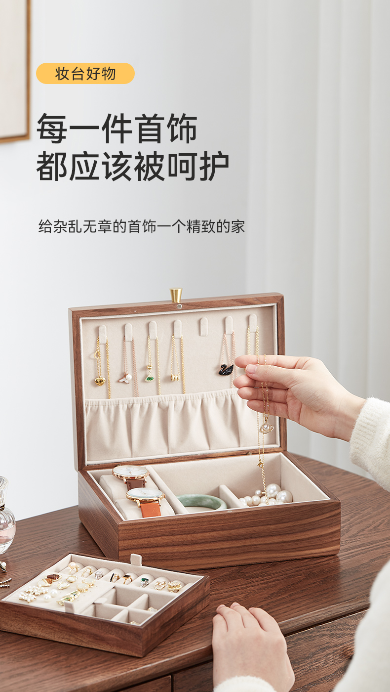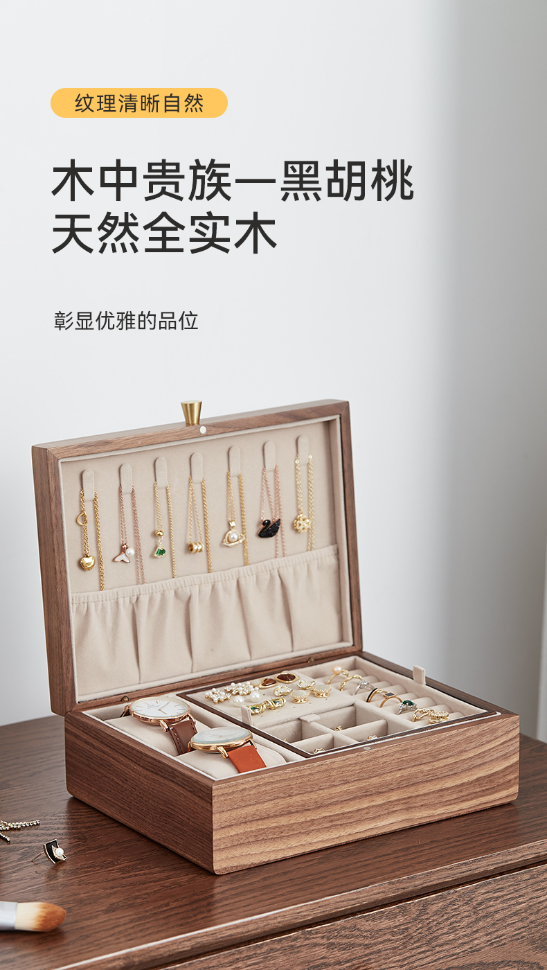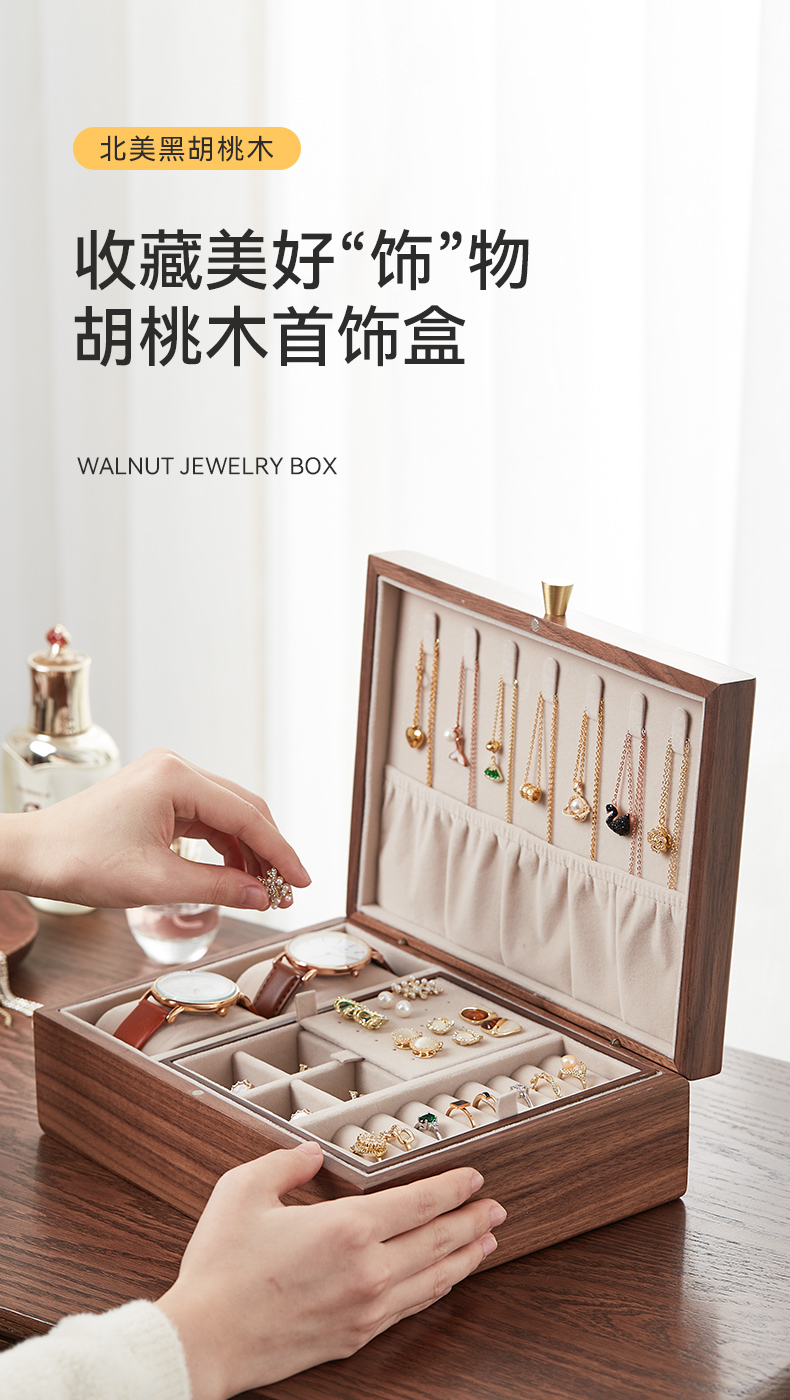 初心| 带托盘实木首饰盒北美黑胡桃木