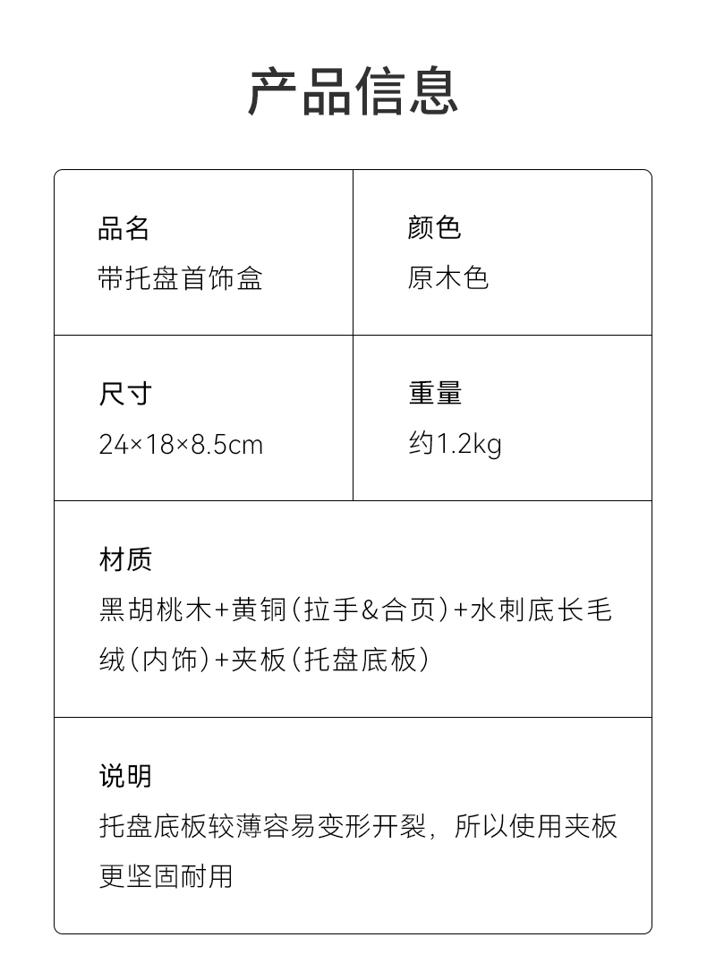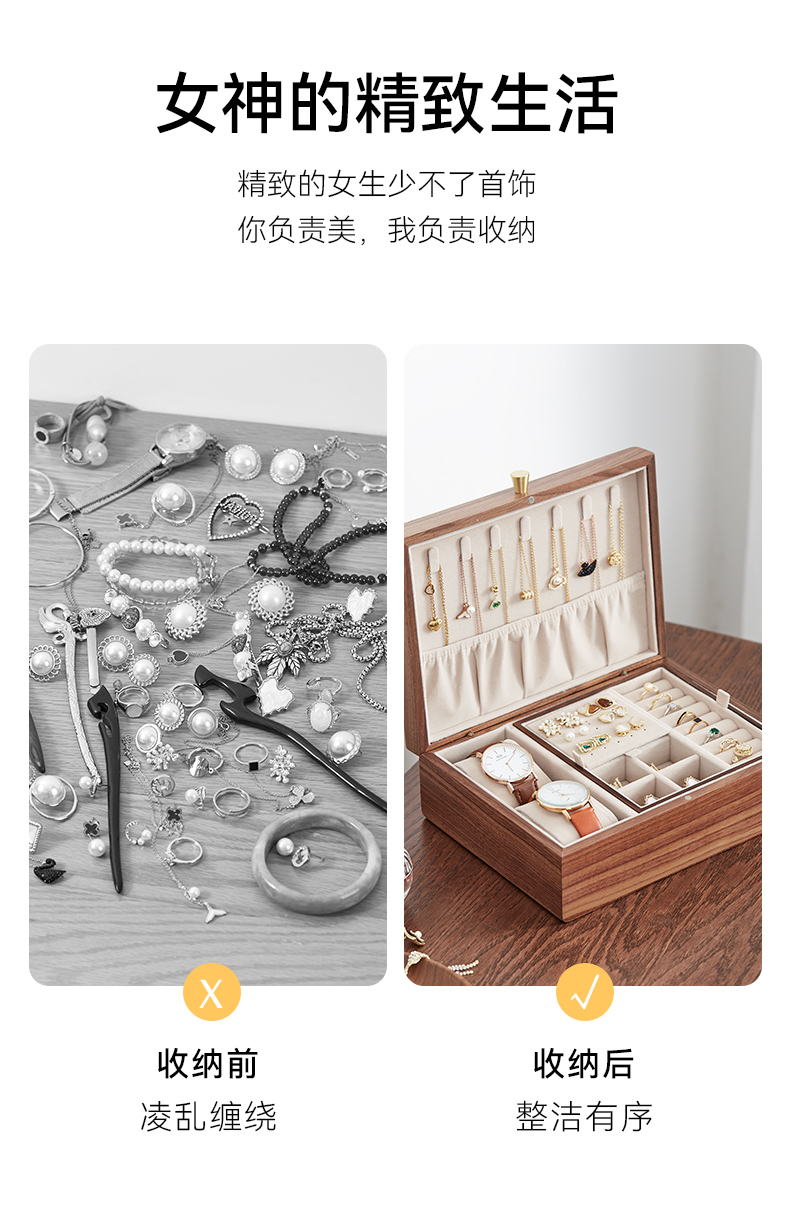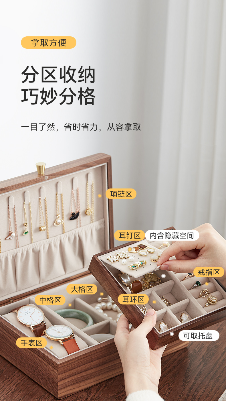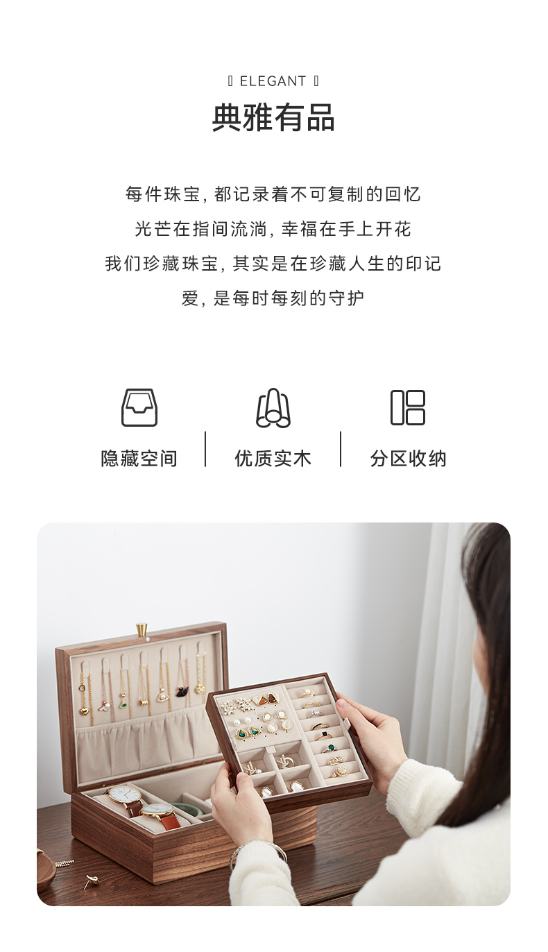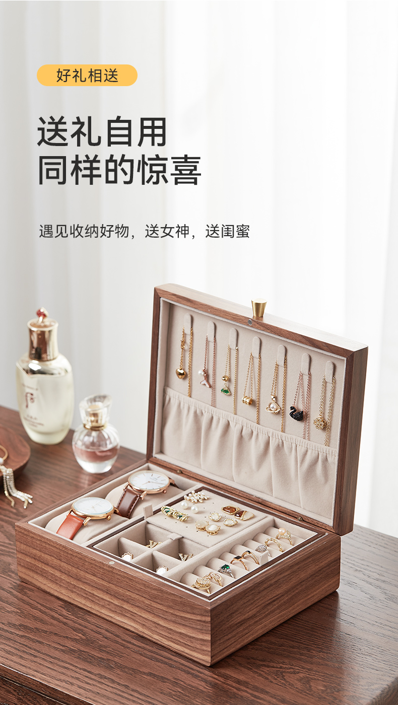 初心| 带托盘实木首饰盒北美黑胡桃木