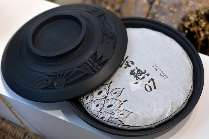 景素·景熟07,是由2007年的古熟乔木原料中度渥堆发酵后,经过了9年的干仓存储,于2016年紧压成饼的。