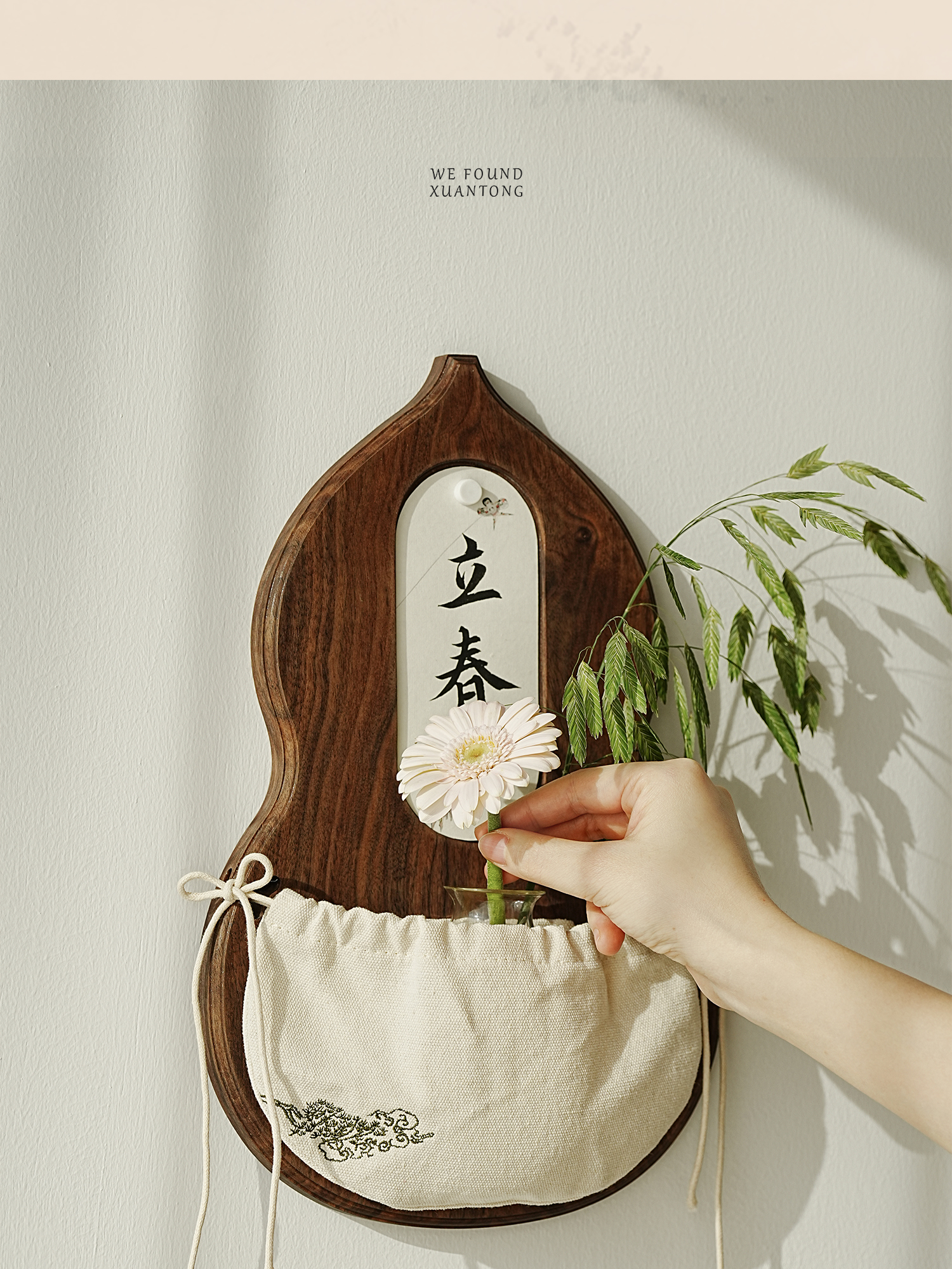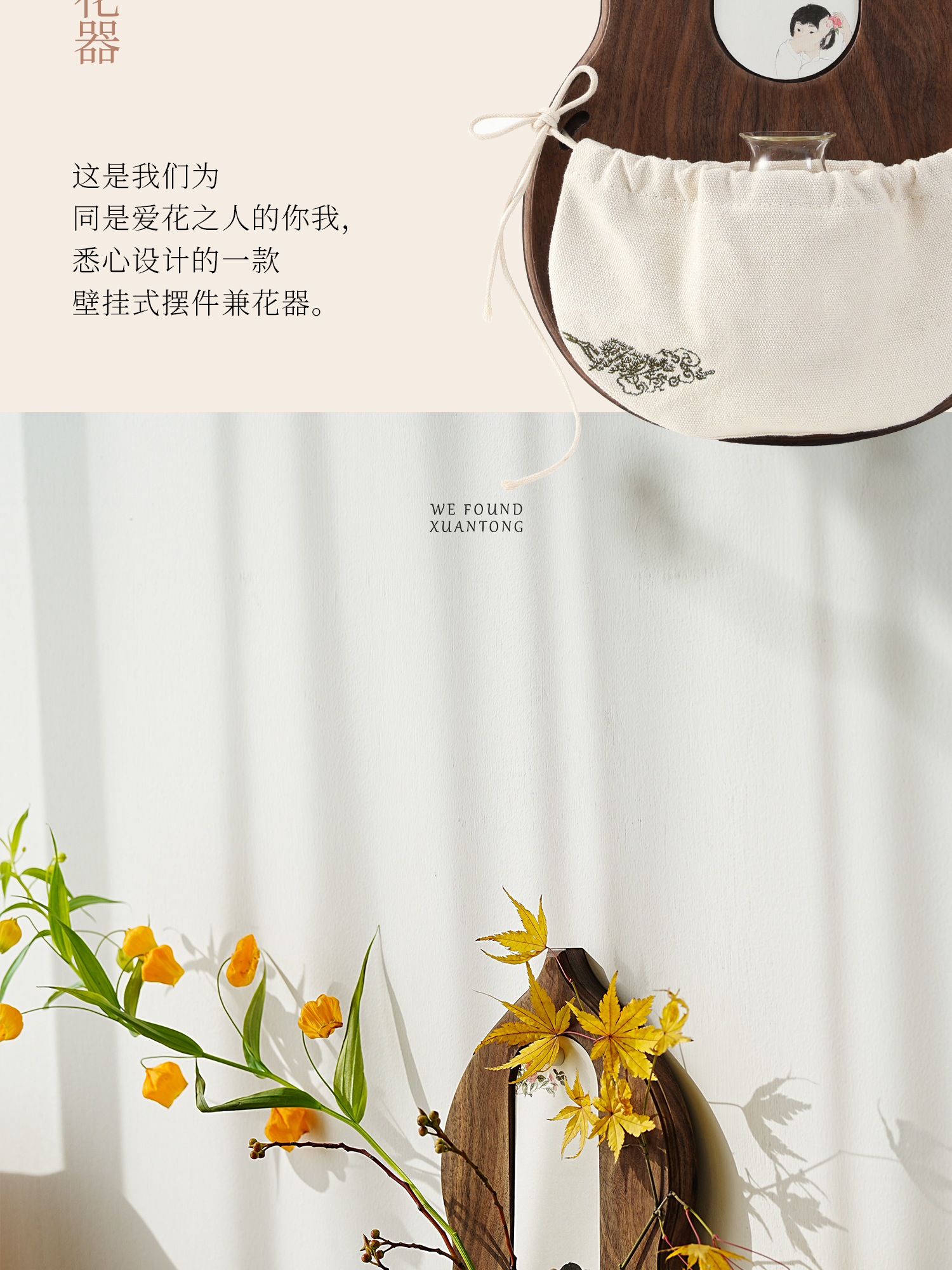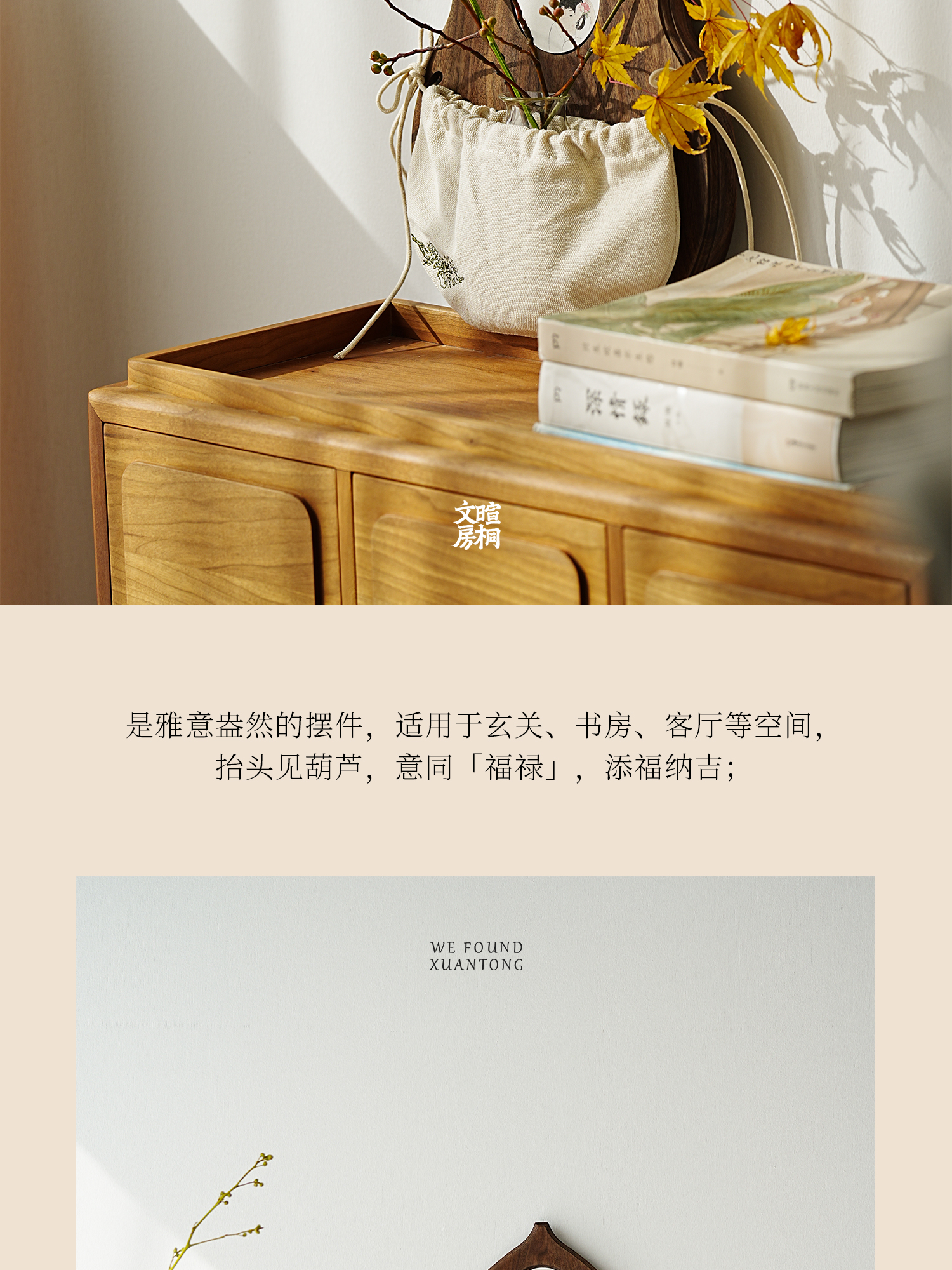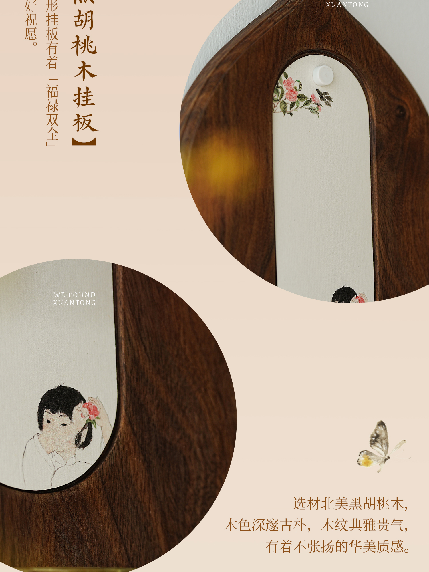 暄桐文房 福禄儿 壁挂 摆件 赏花器 北美黑胡桃木