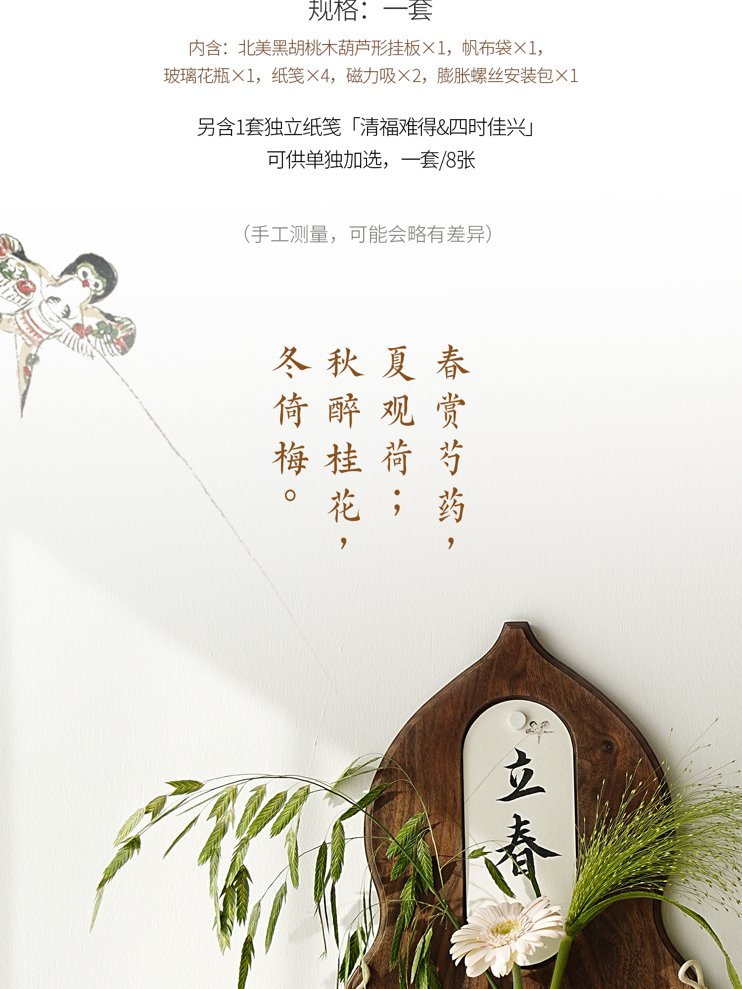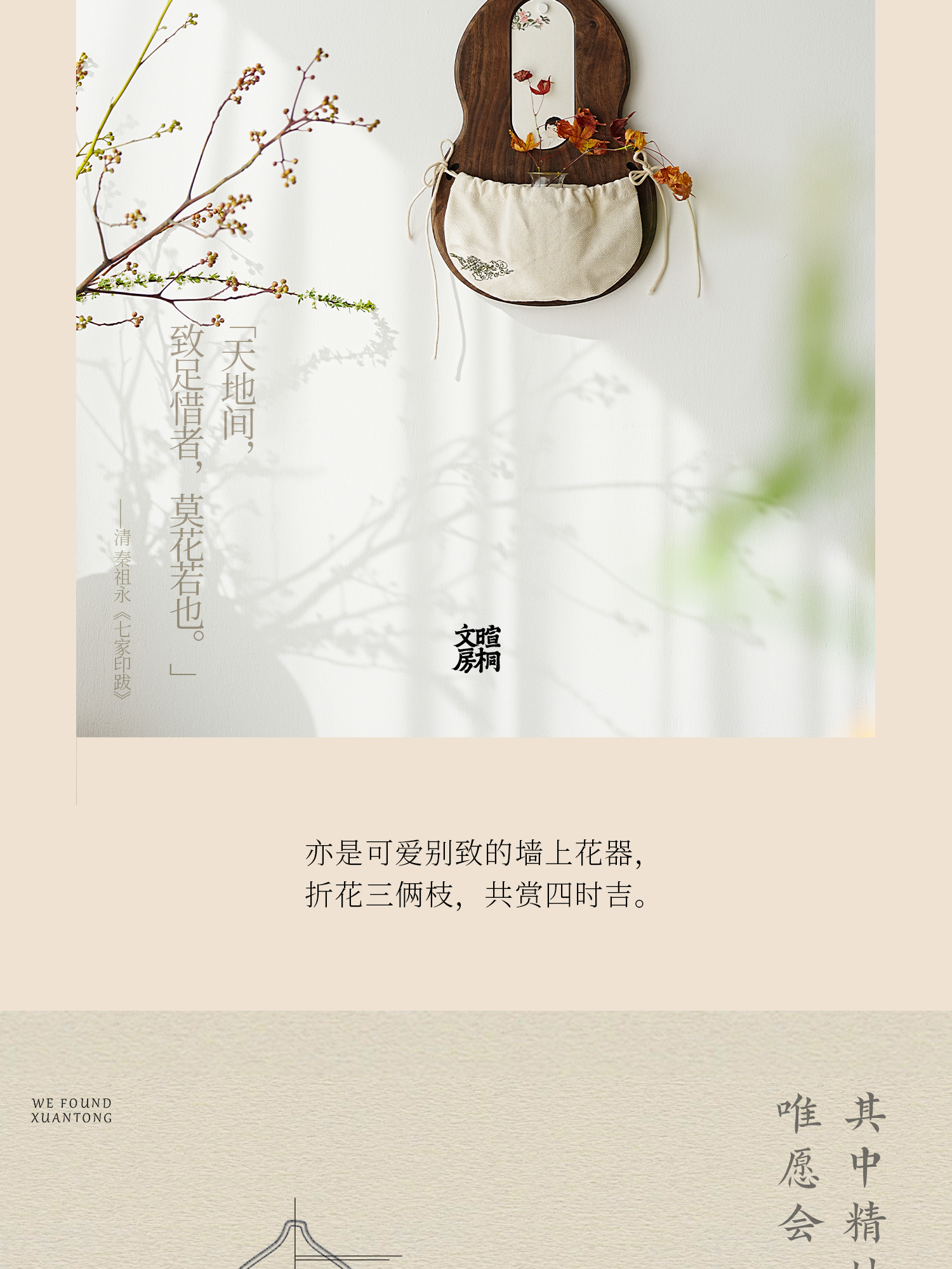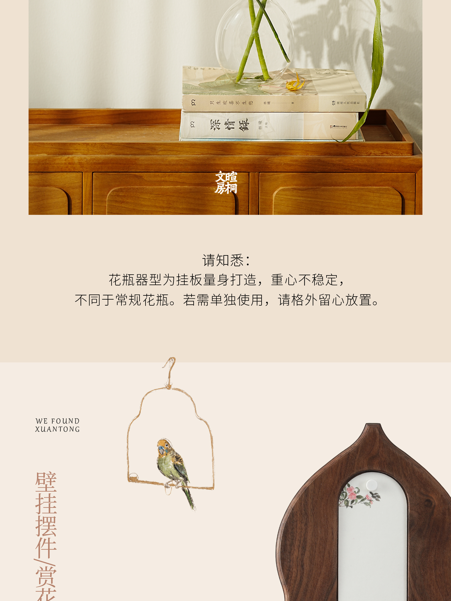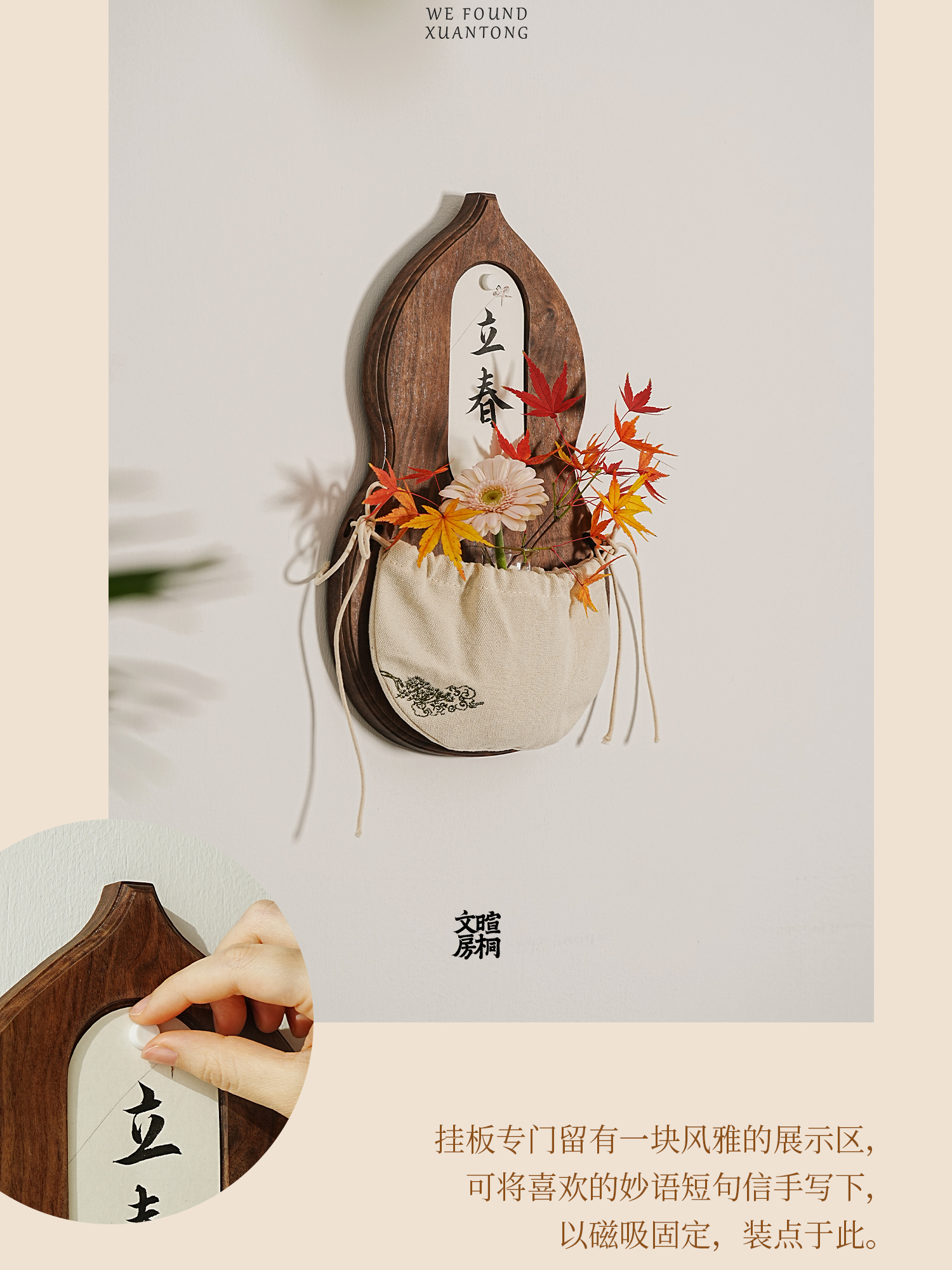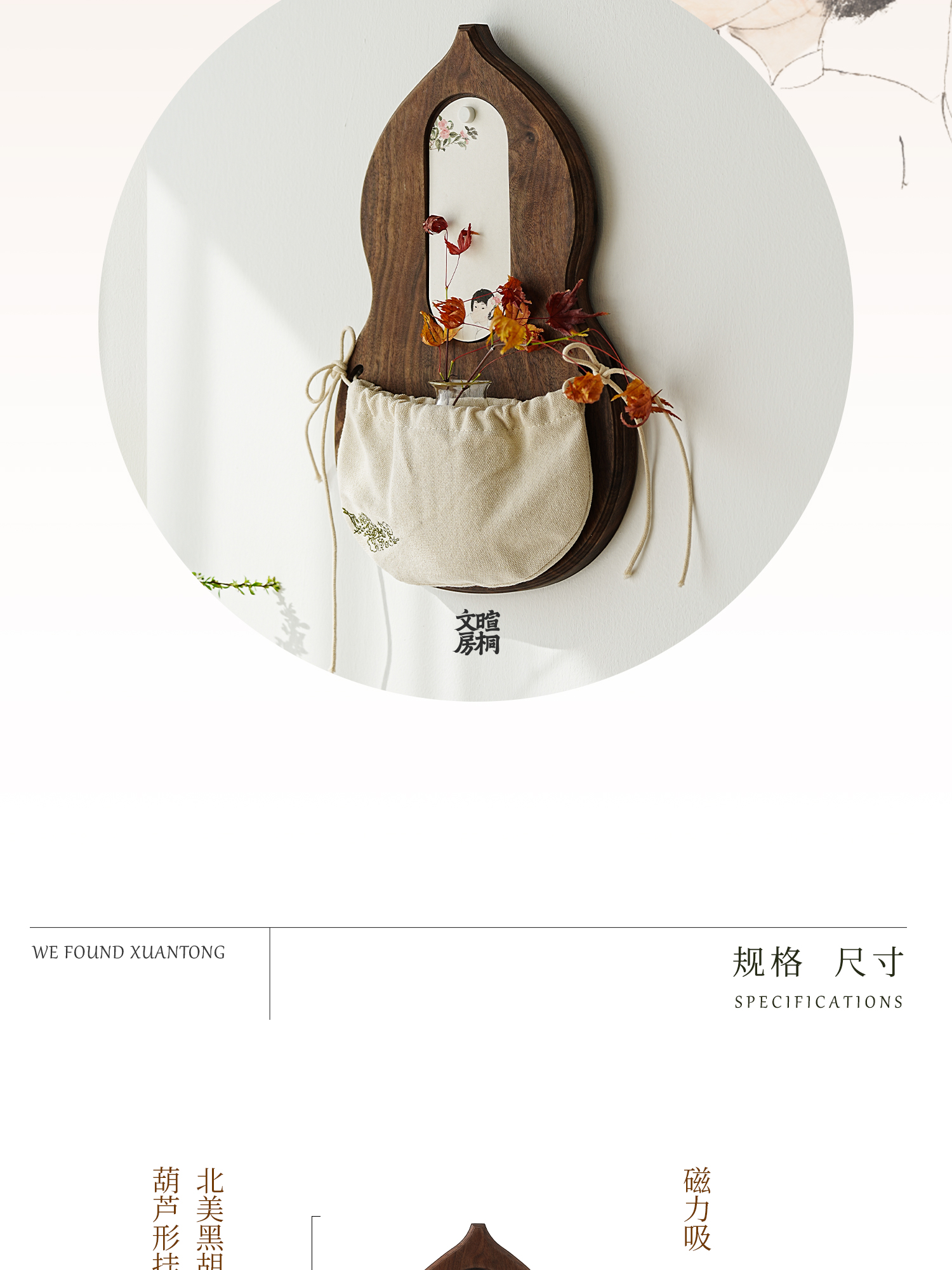 暄桐文房 福禄儿 壁挂 摆件 赏花器 北美黑胡桃木