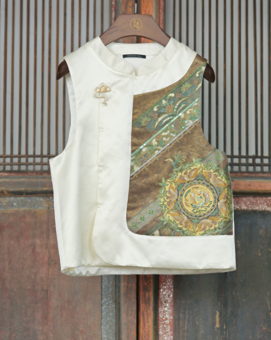 盛唐牡丹盛奢系列|丝毛拼西阵织偏襟马甲