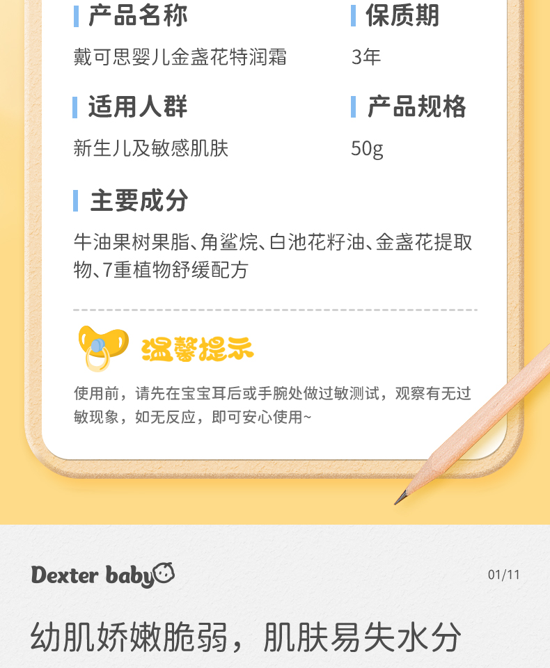 【母婴用品】戴可思婴儿金盏花新生儿宝宝特润霜滋润补水