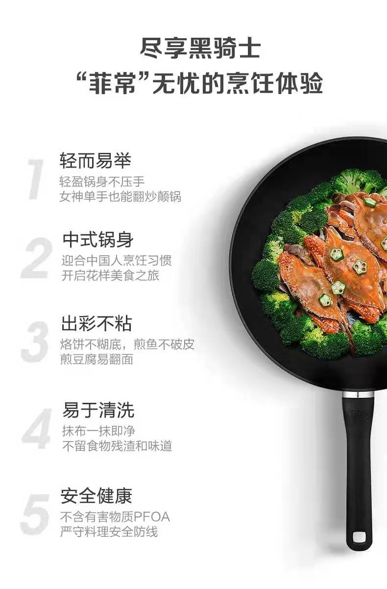 10楼菲仕乐 原装进口黑骑士不粘煎炒锅30CM 原价799元 活动价499元