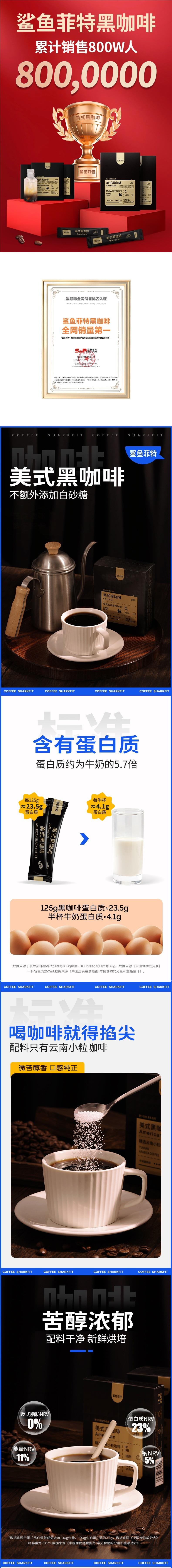 鲨鱼菲特黑咖啡 0脂0蔗糖速溶冷热双泡美式咖啡云南小粒