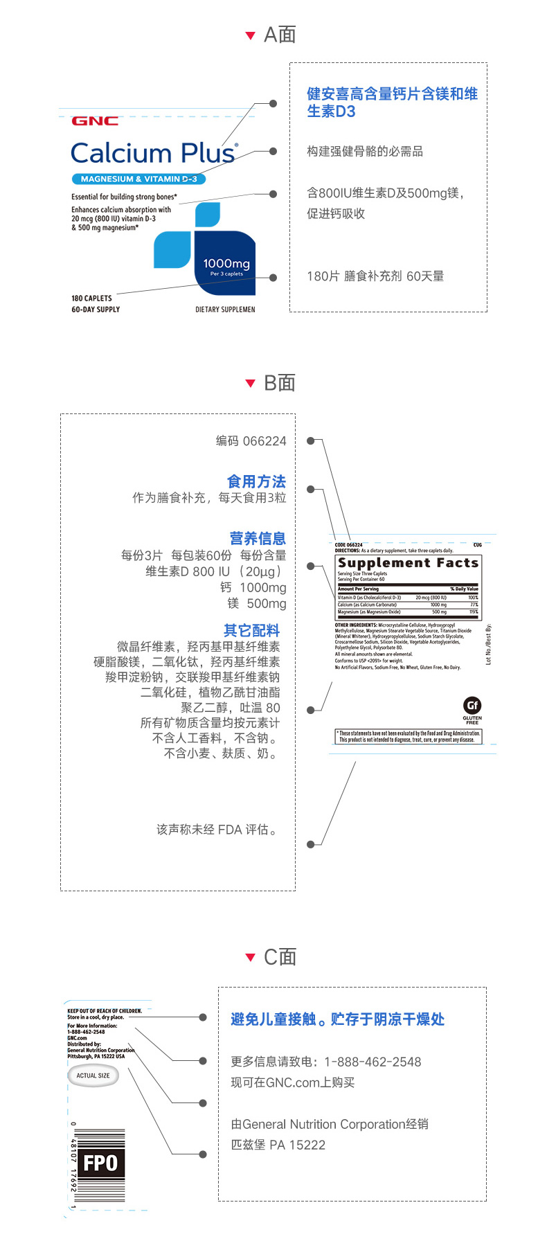 GNC高含量VD钙镁片 钙片