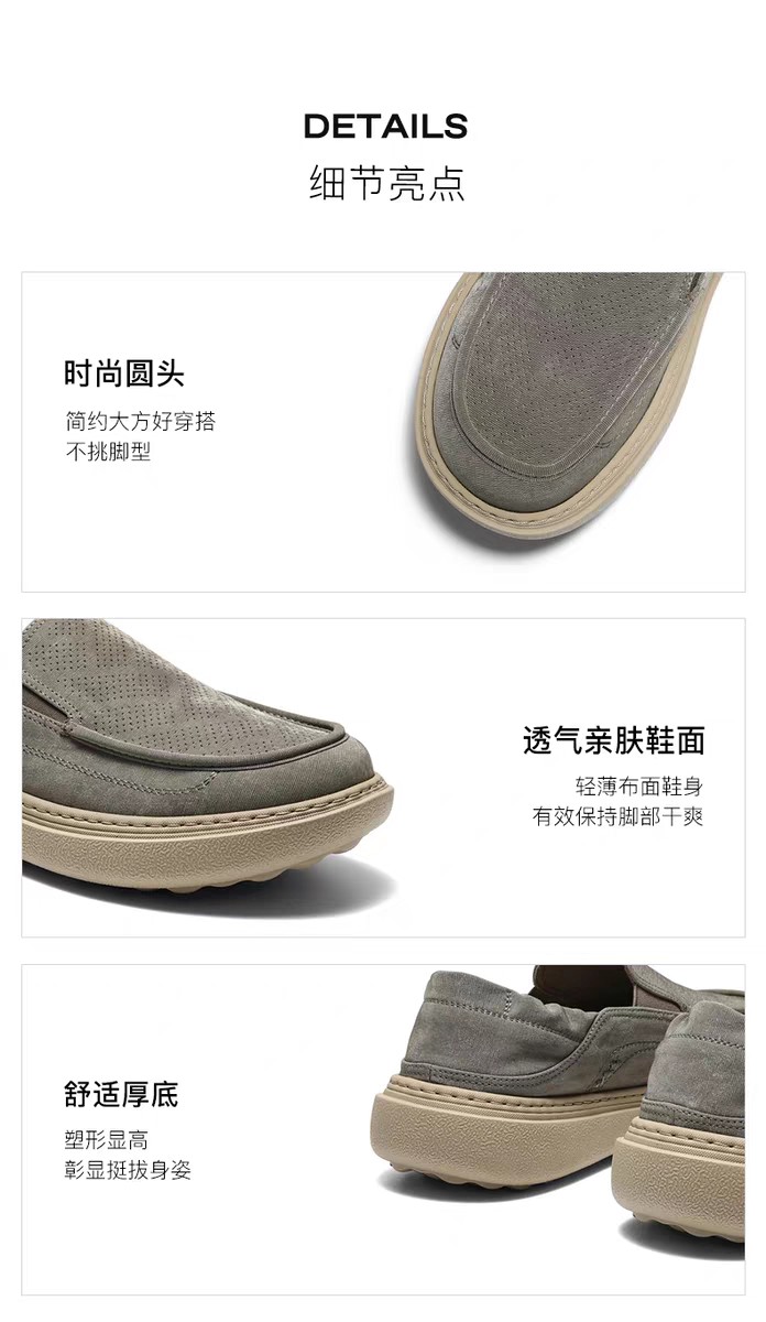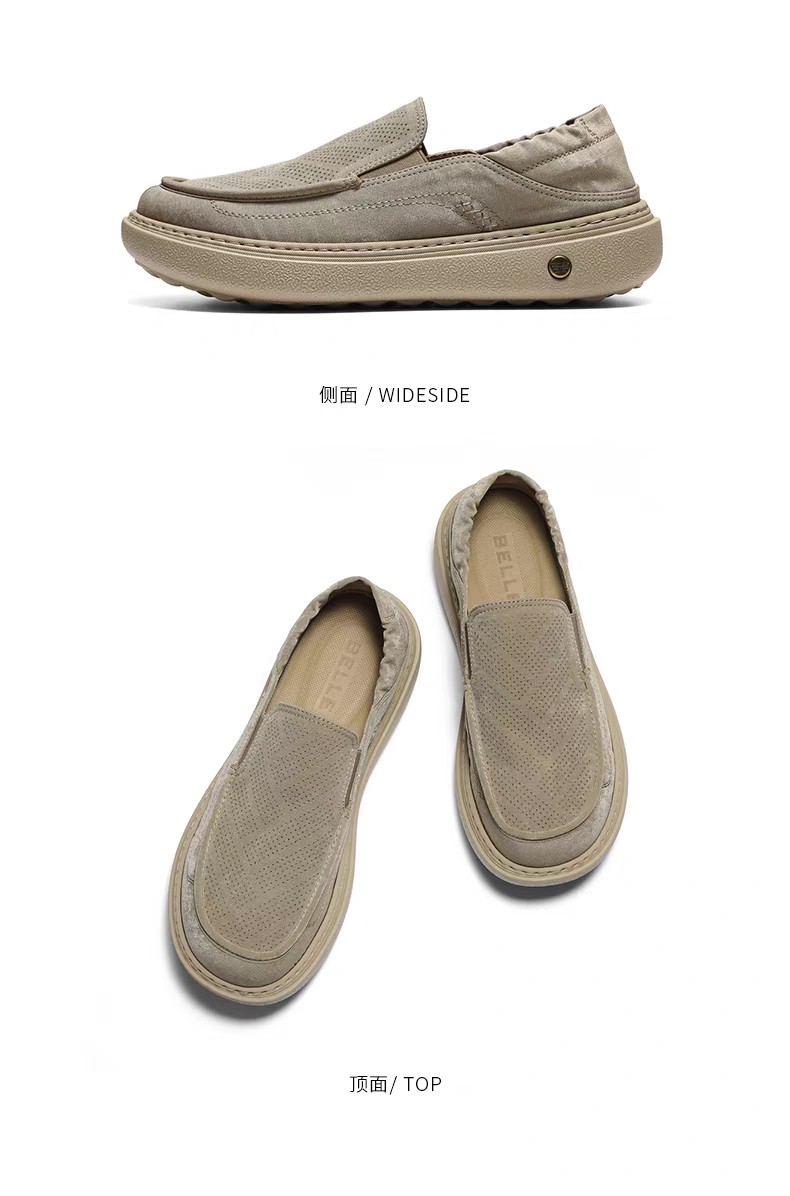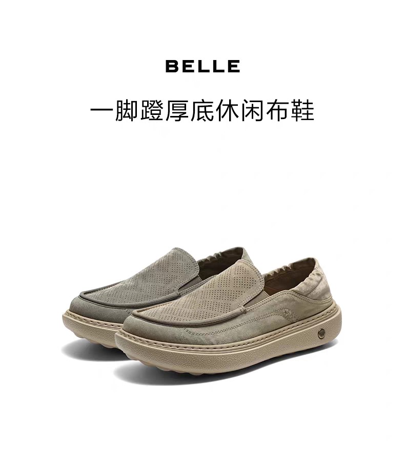 BF楼百丽男鞋一脚蹬厚底增高休闲布鞋男士26夏新款透气爸爸鞋8WK03BM6