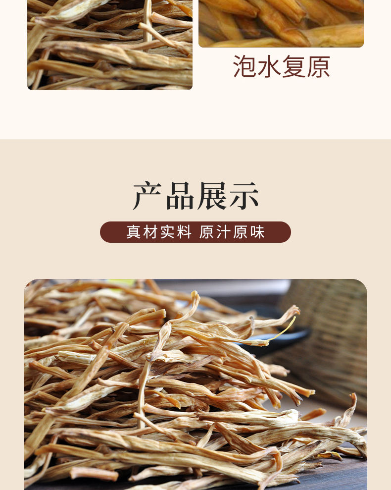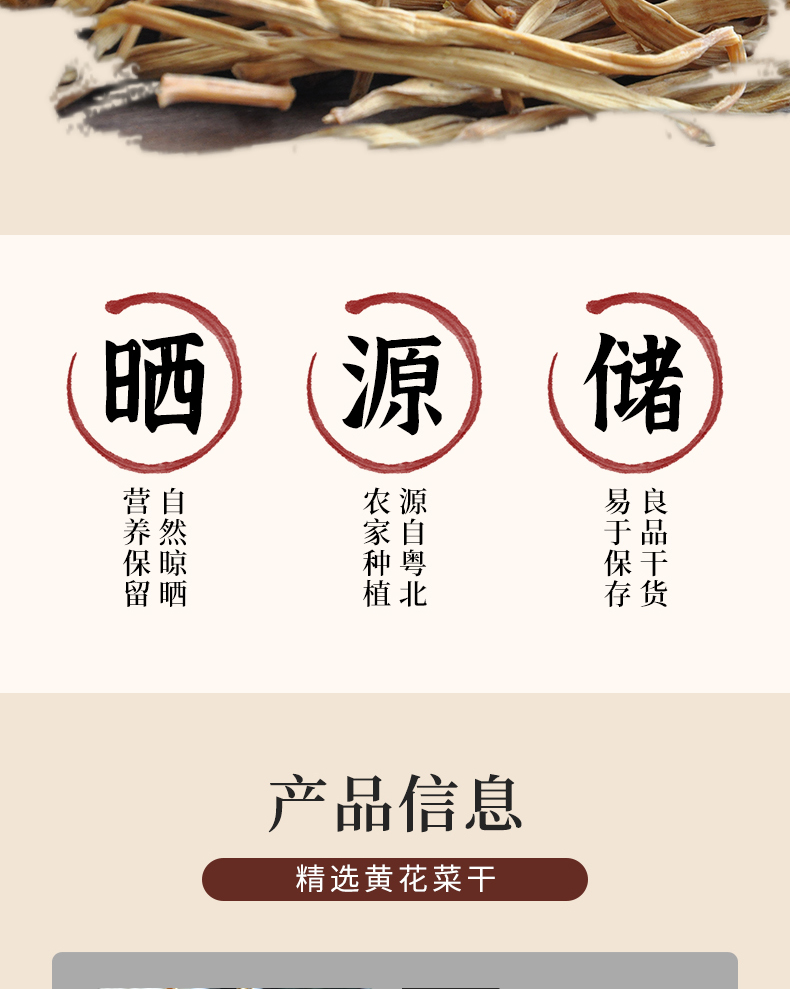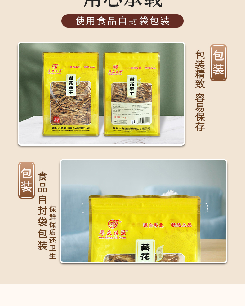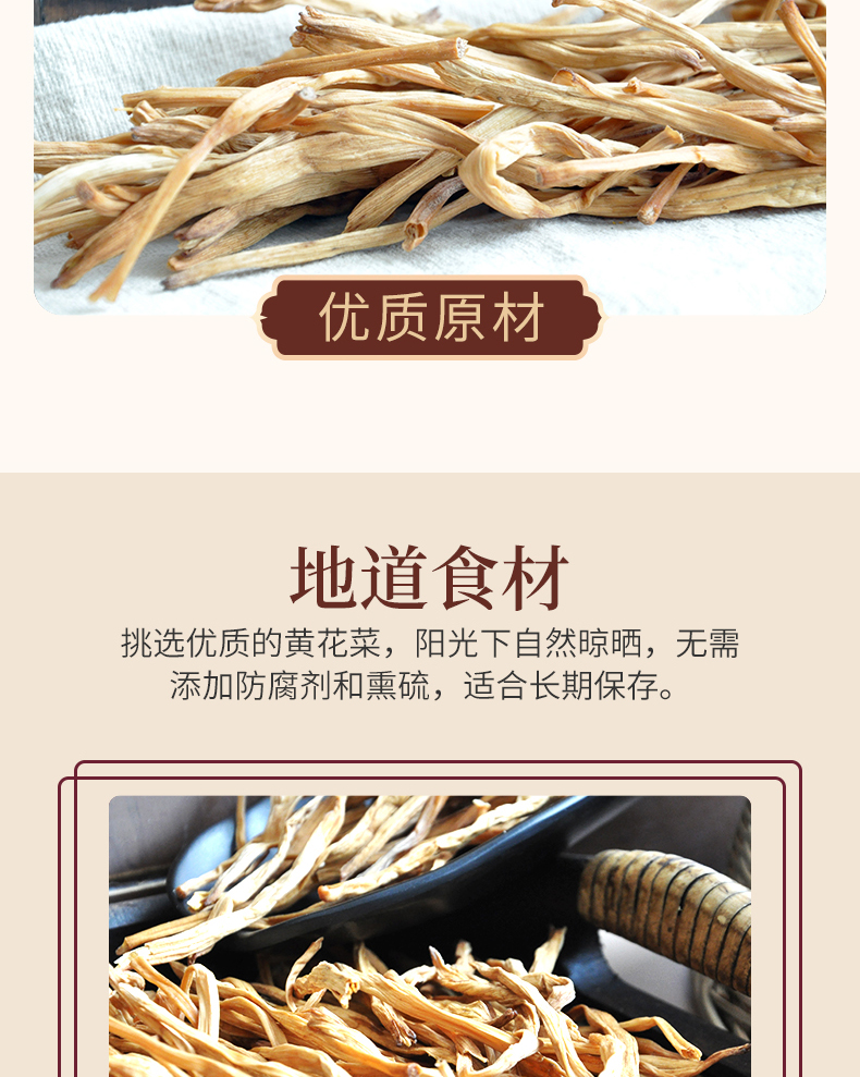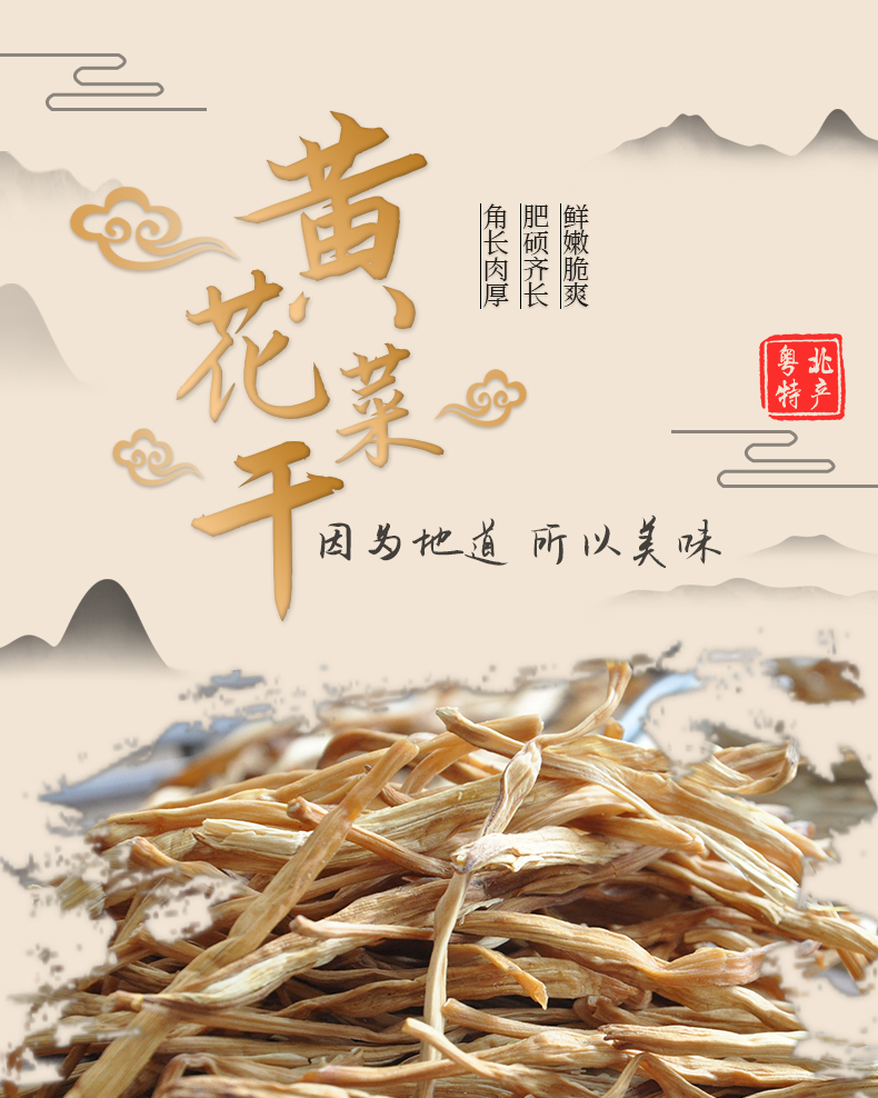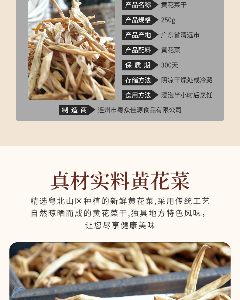 连州粤众佳源黄花菜干八边封自立袋250克蔬菜干制品