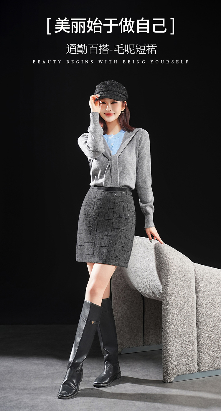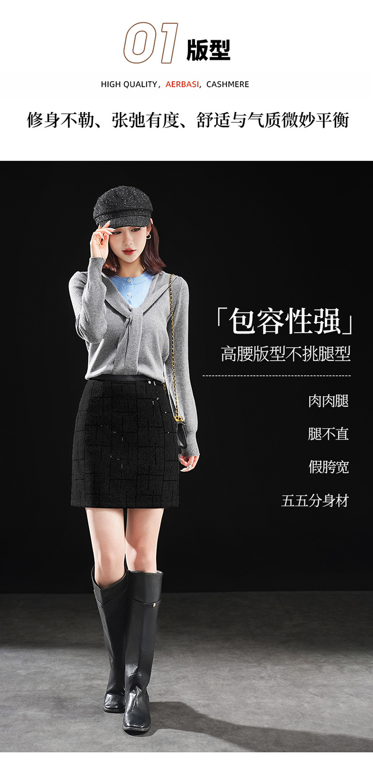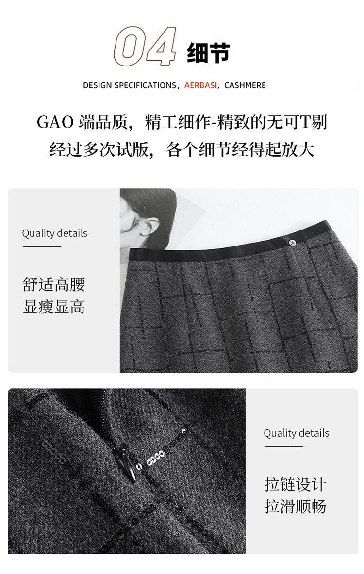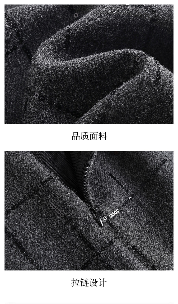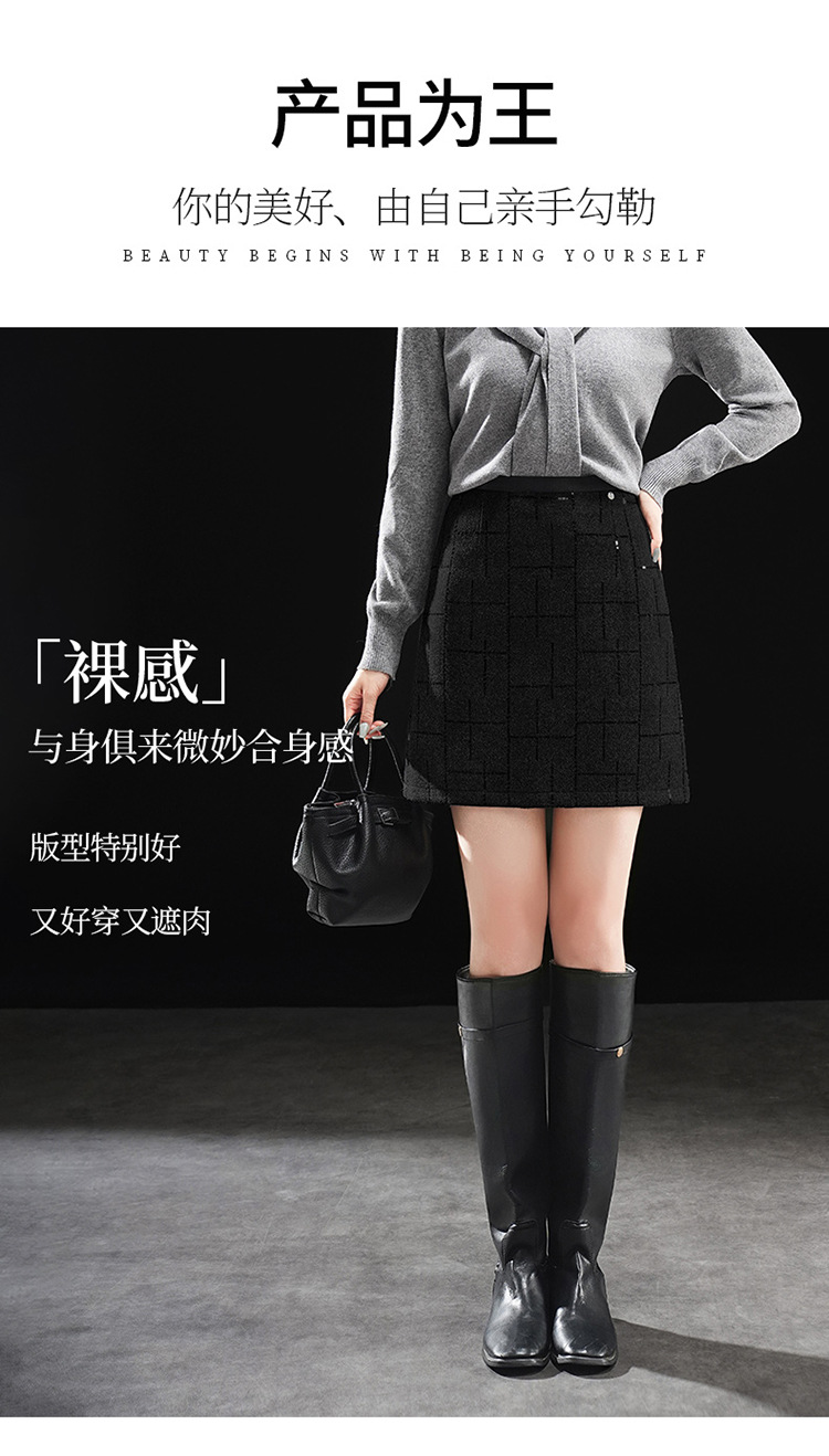 「自」全新升级【铂金会员128/天猫169/差价41】(04514)洛诗琳重工亮片格纹羊毛混纺半裙2025秋冬厚实挺阔保暖A字裙