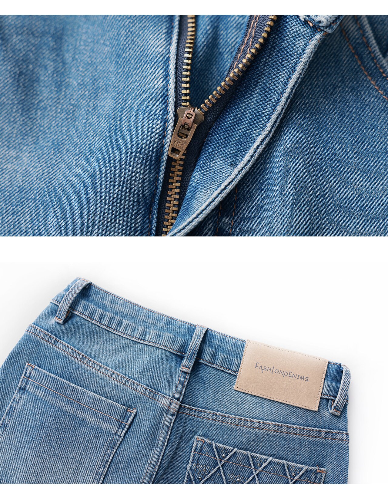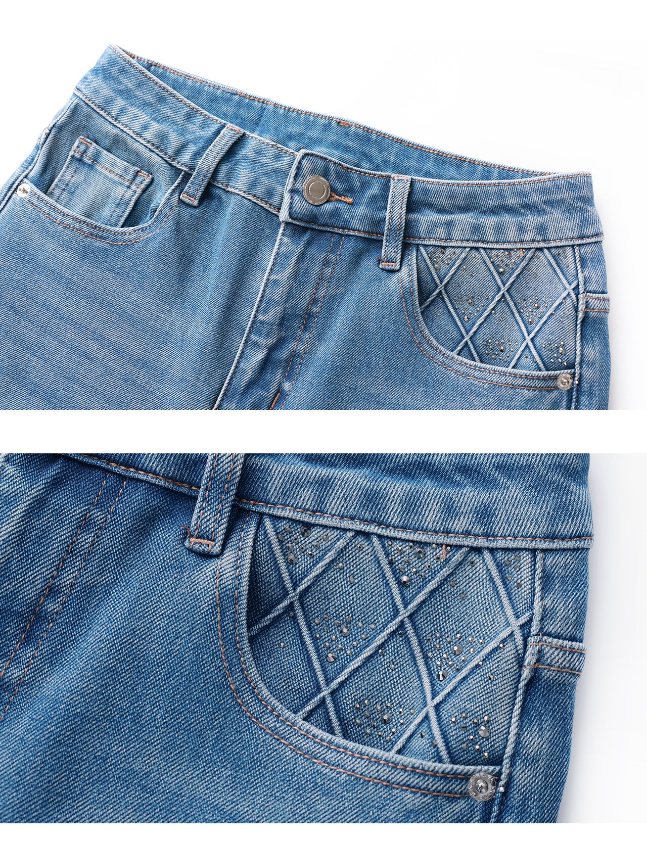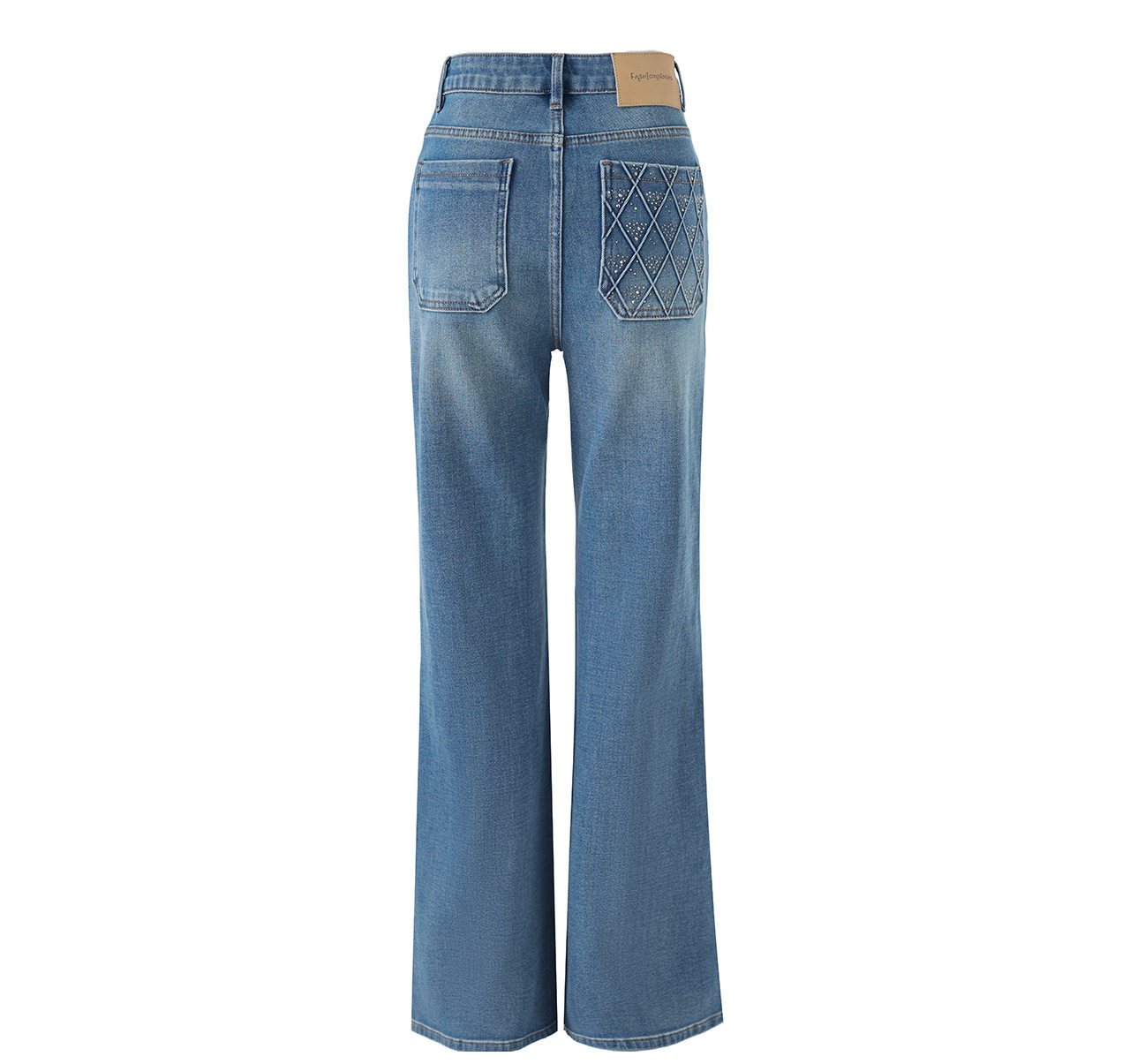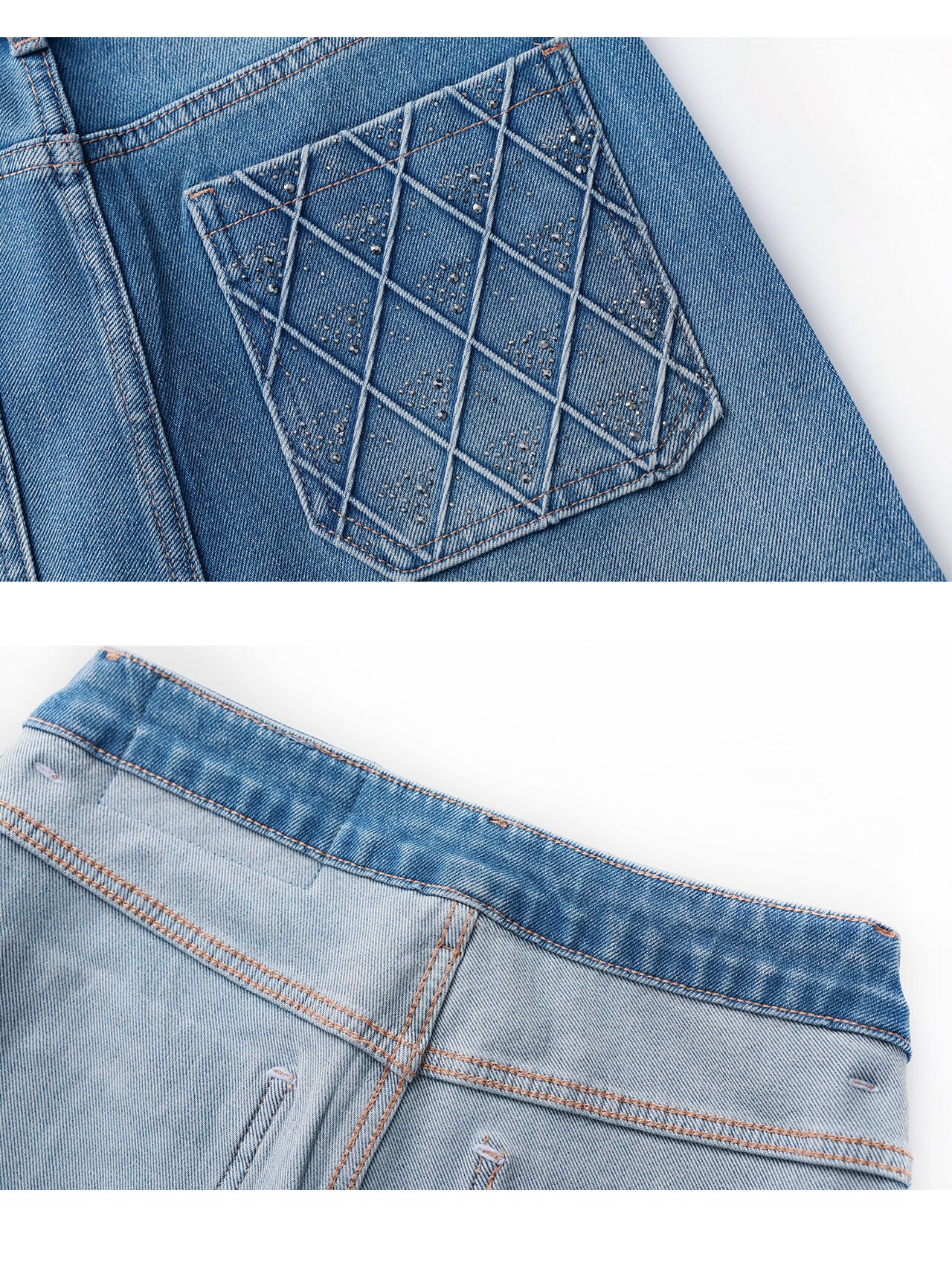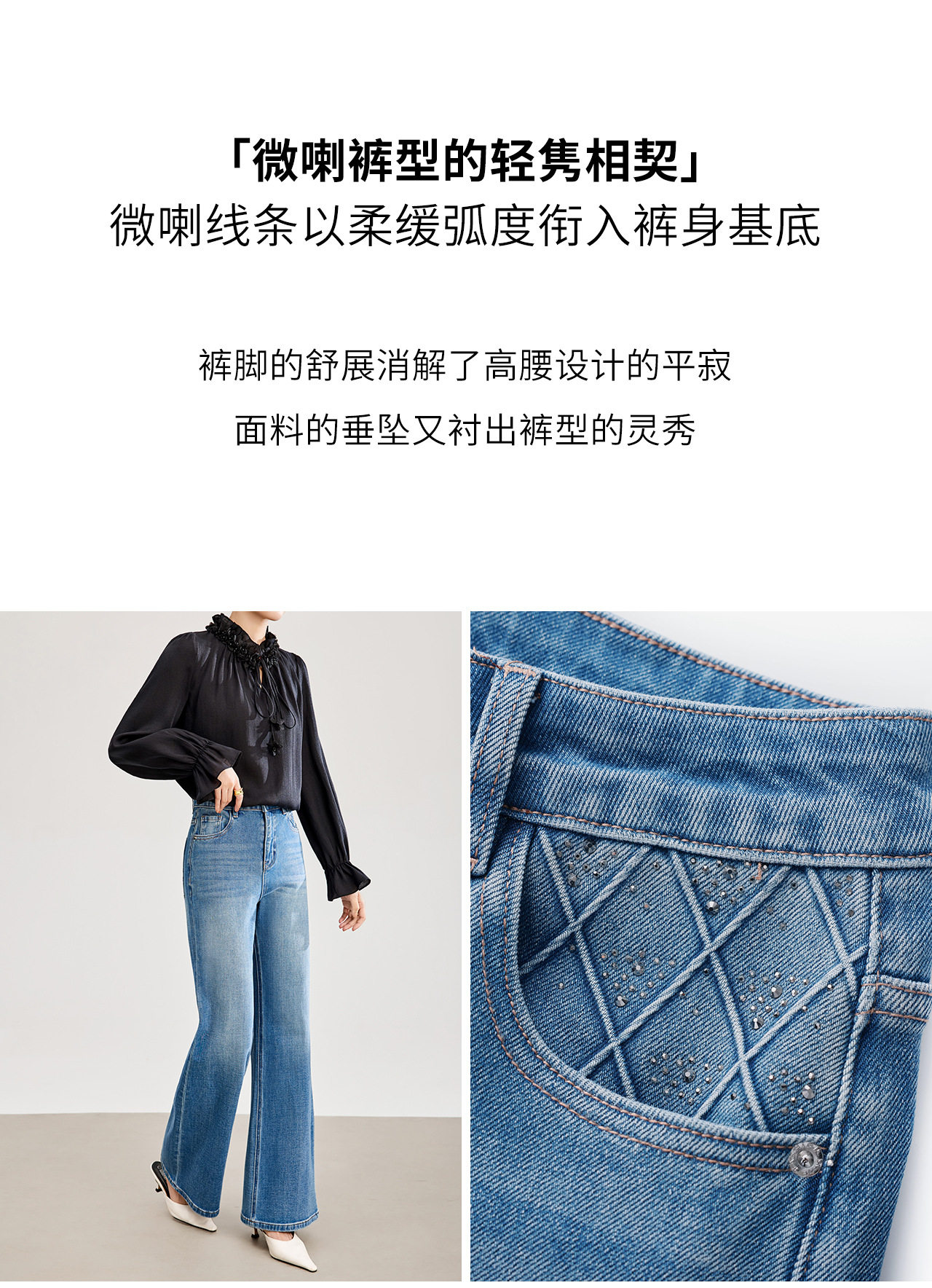 「高货wl」全新升级【铂金会员266/天猫359/差价93】(24751)洛诗琳气质四面弹牛仔裤2026春季新款烫钻法式高腰微喇裤