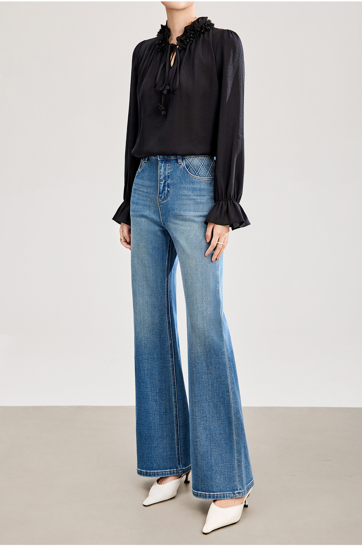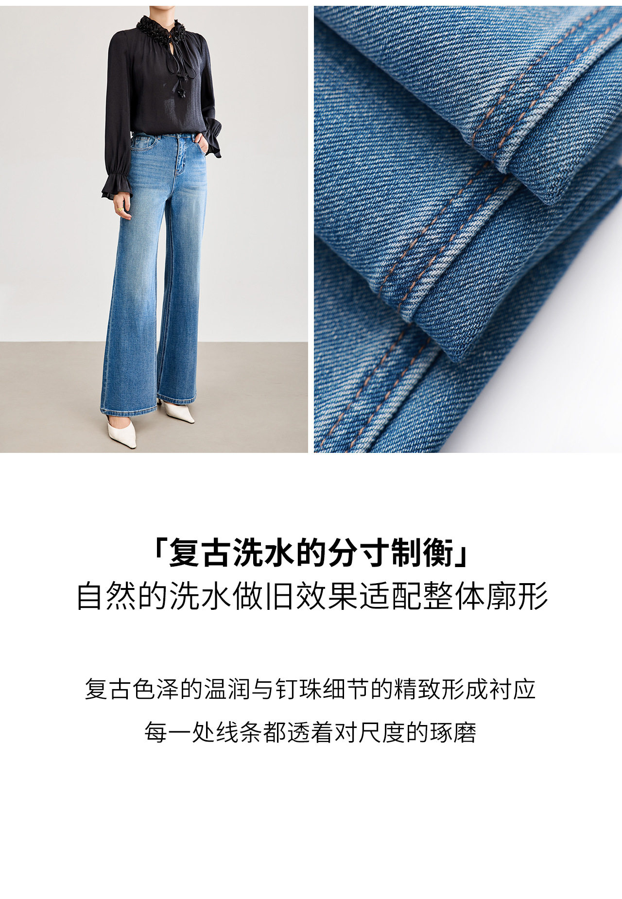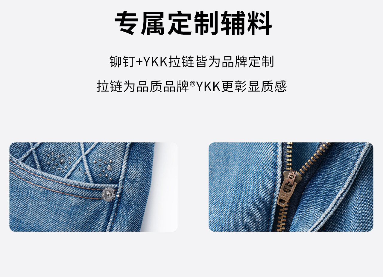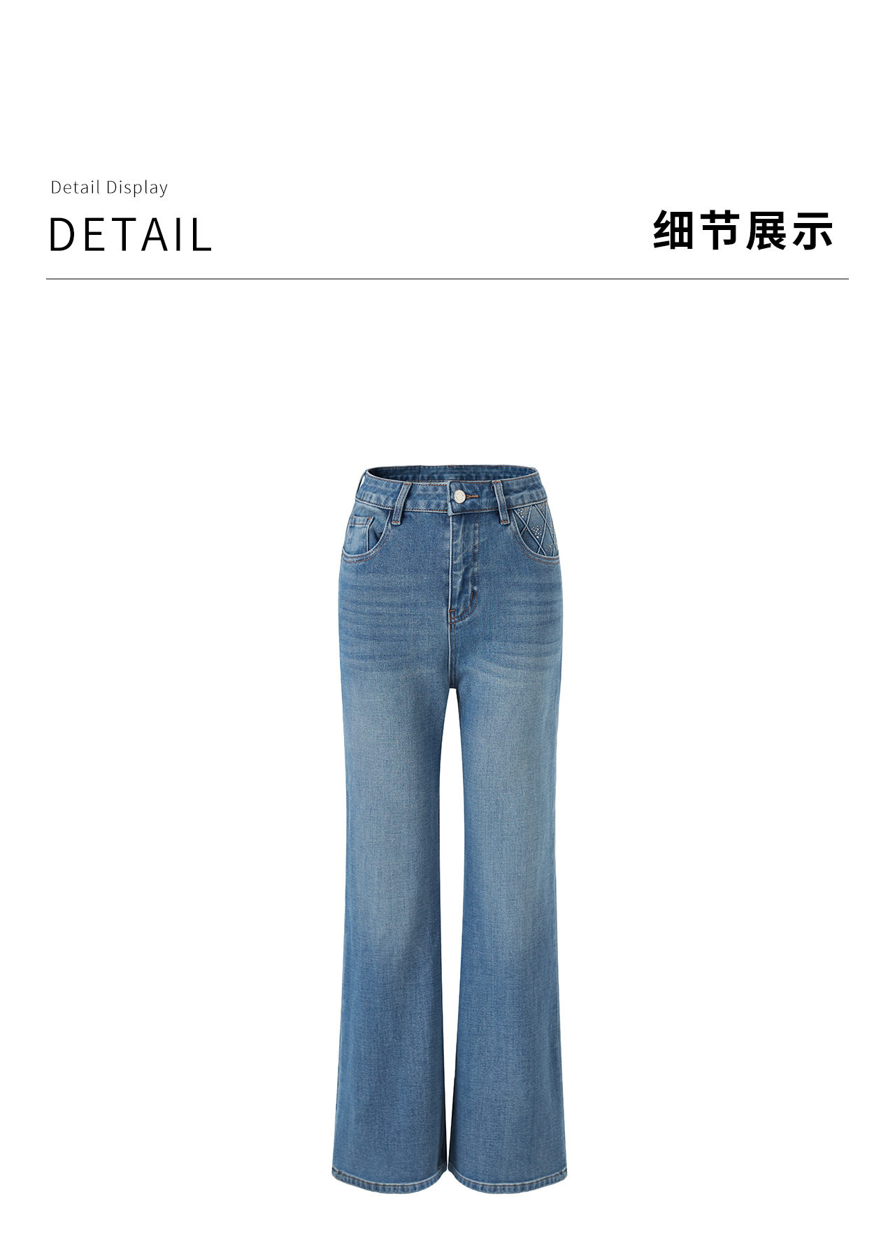 「高货wl」全新升级【铂金会员266/天猫359/差价93】(24751)洛诗琳气质四面弹牛仔裤2026春季新款烫钻法式高腰微喇裤