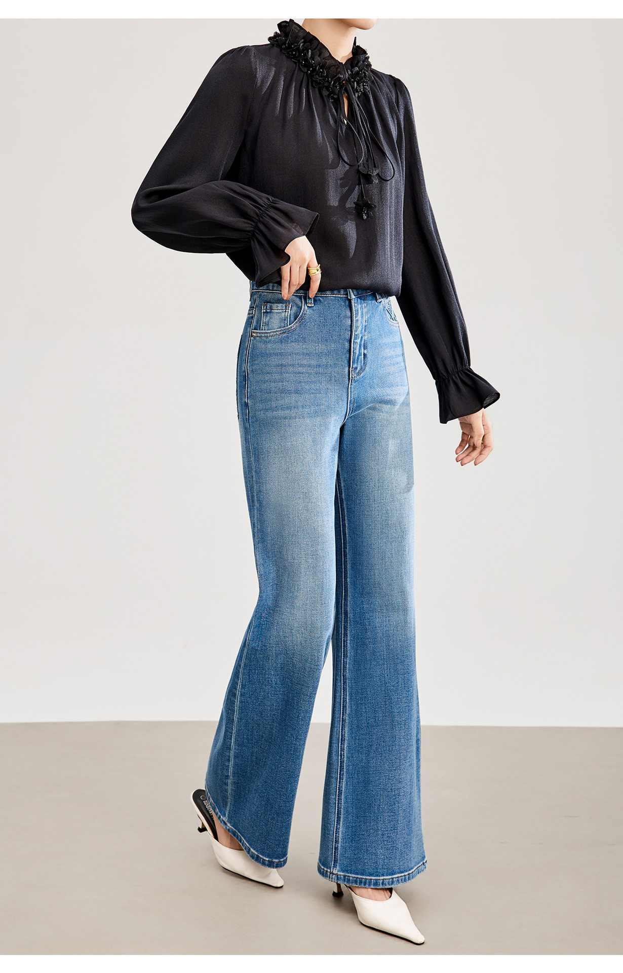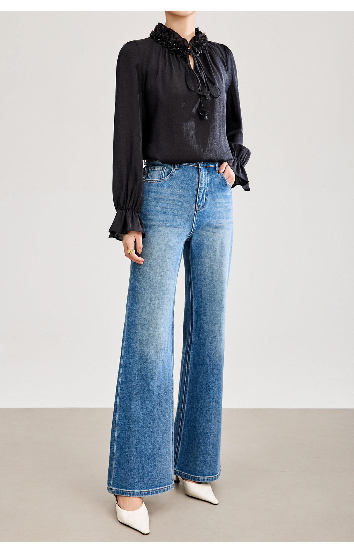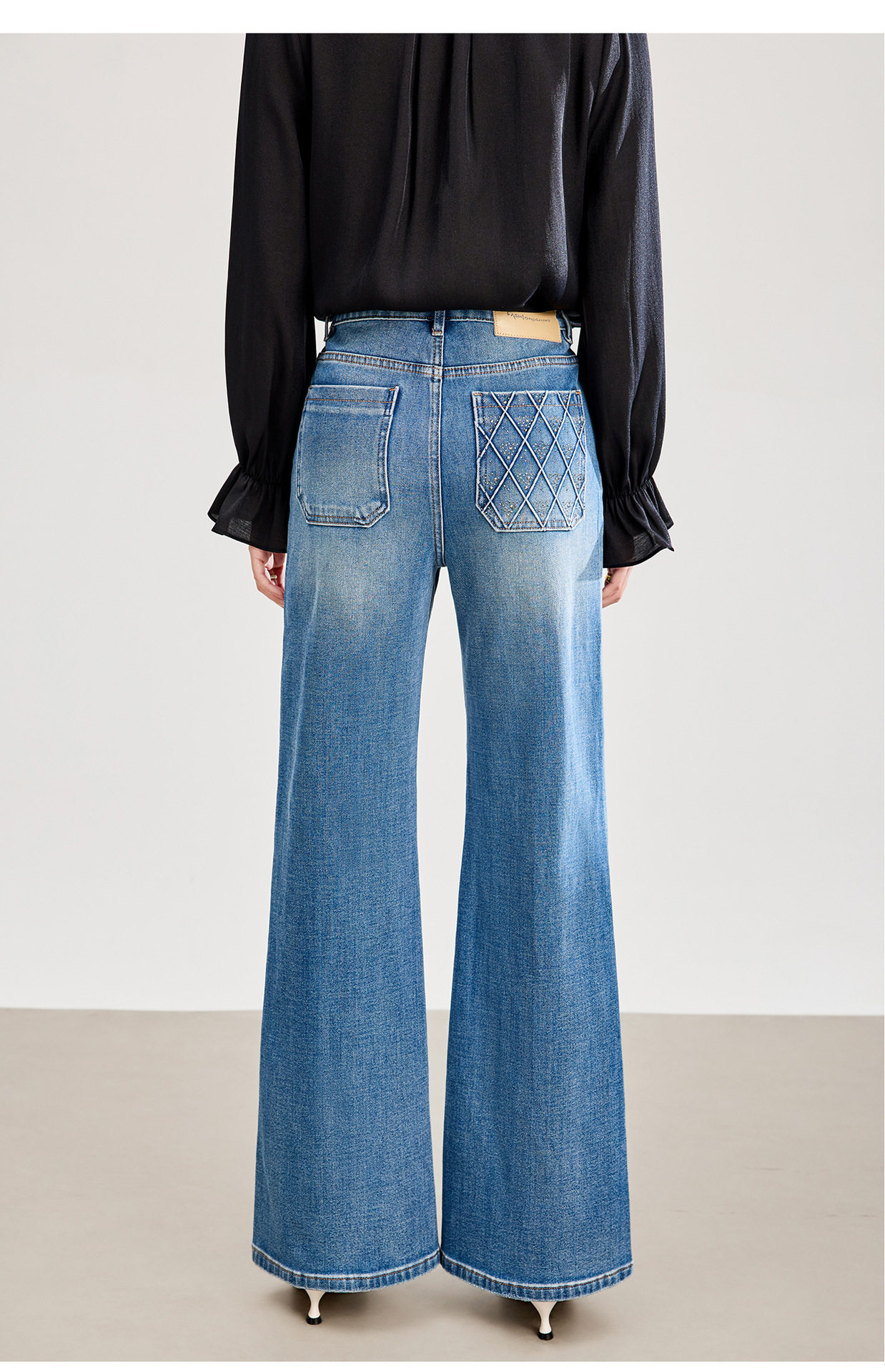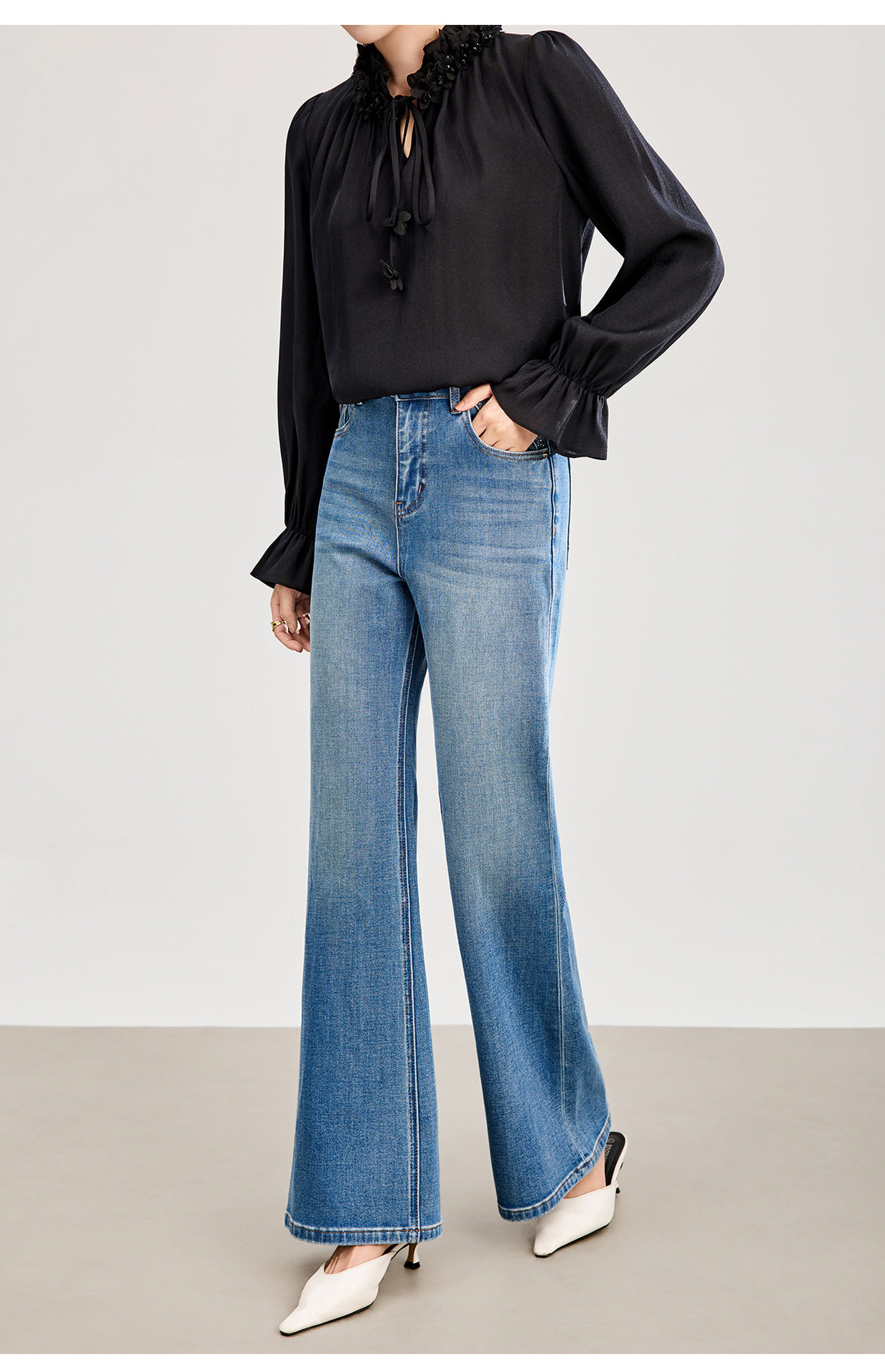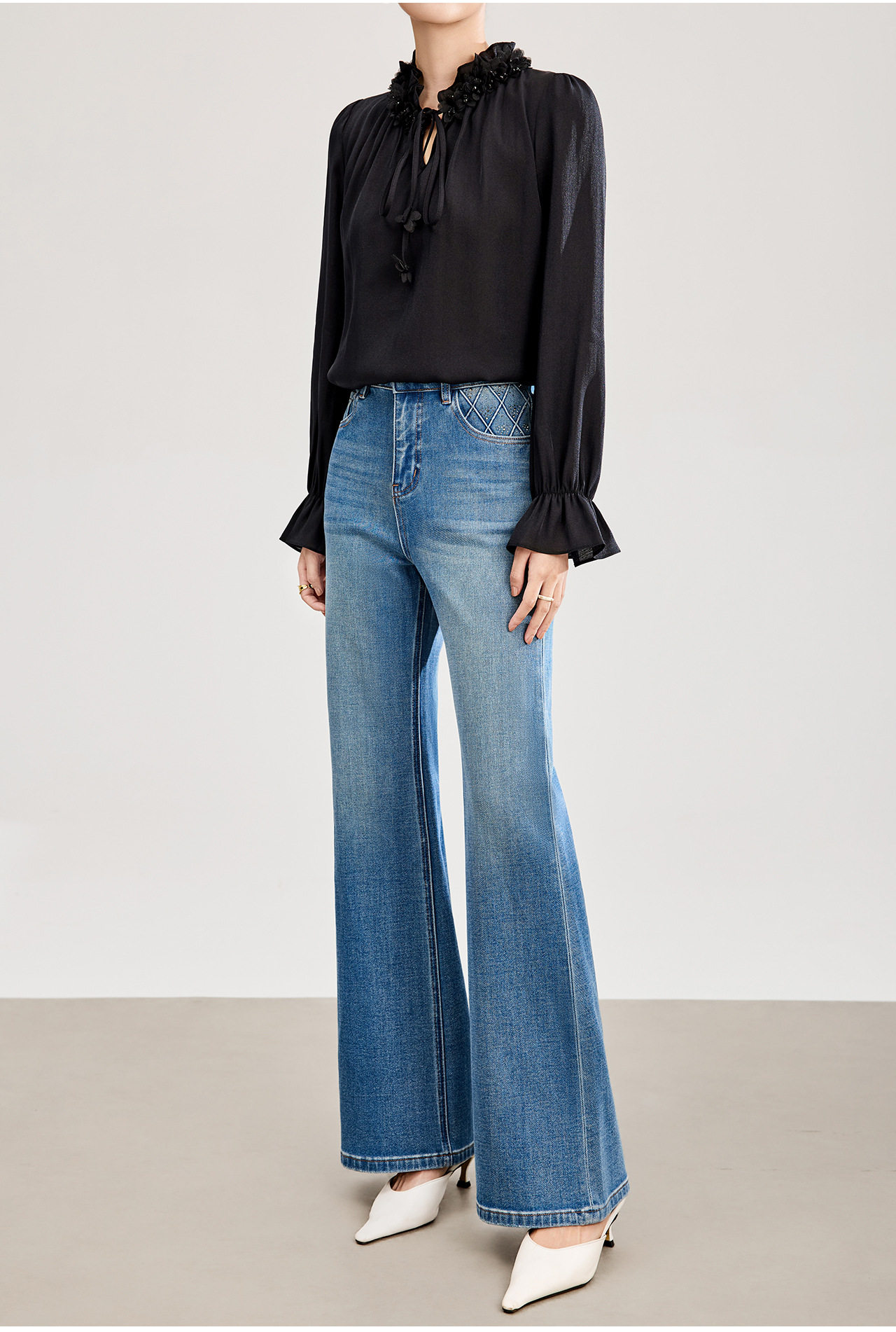 「高货wl」全新升级【铂金会员266/天猫359/差价93】(24751)洛诗琳气质四面弹牛仔裤2026春季新款烫钻法式高腰微喇裤
