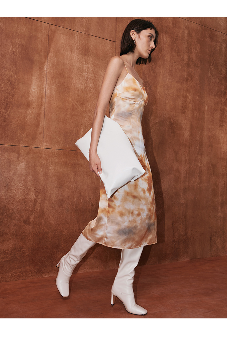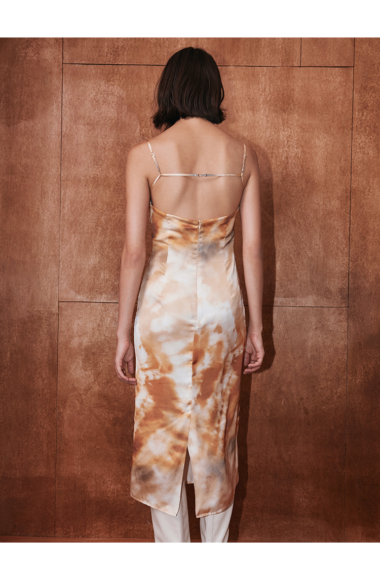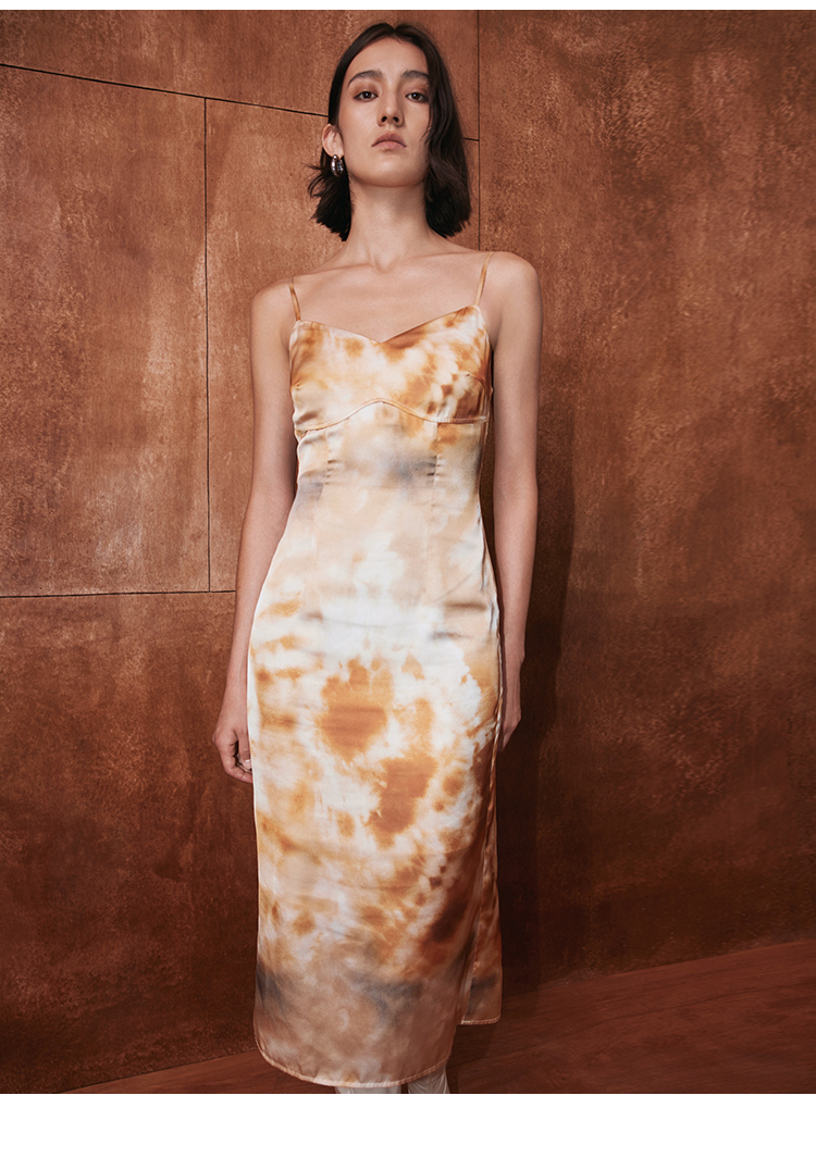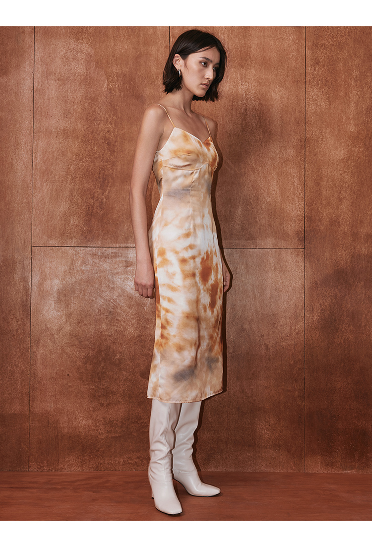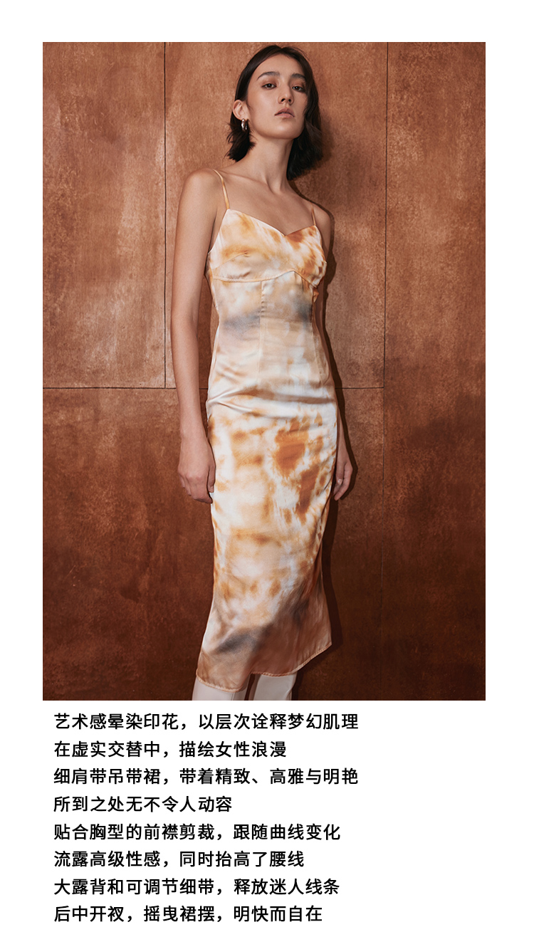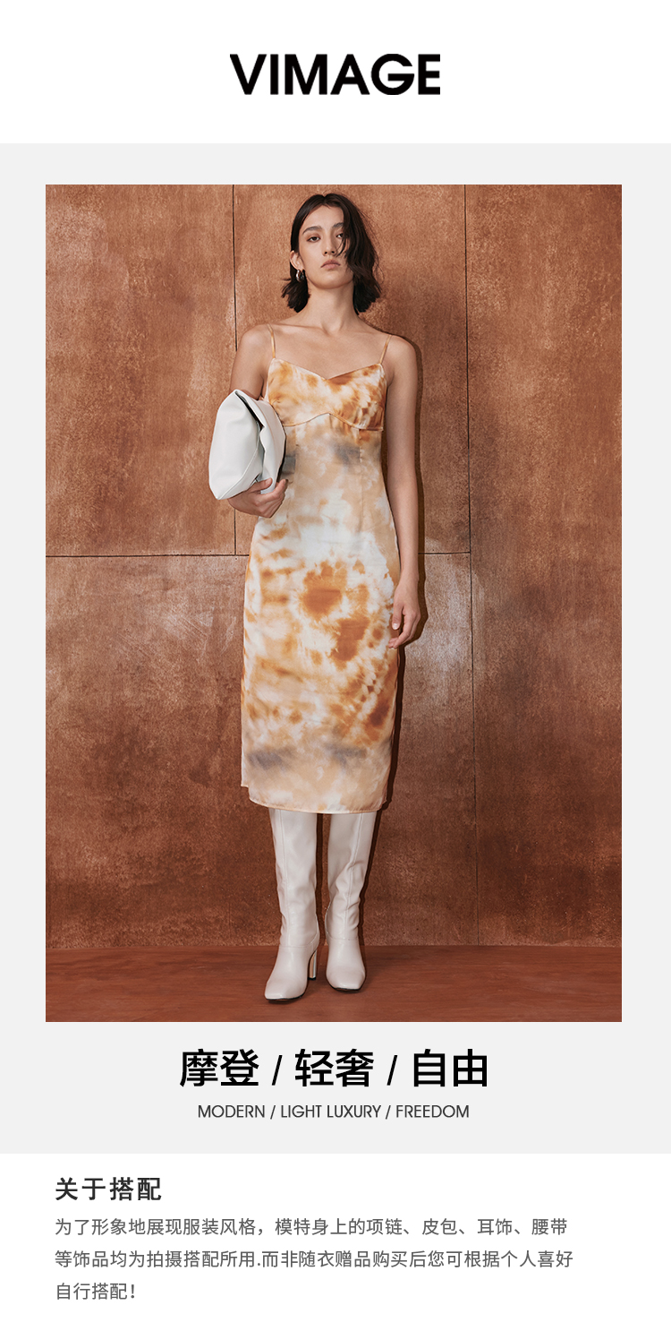 VIMAGE纬漫纪秋季新款扎染印花显瘦高腰性感连衣裙V2007605