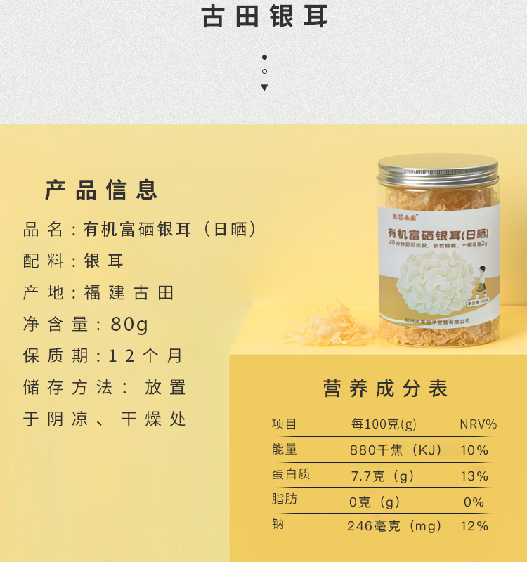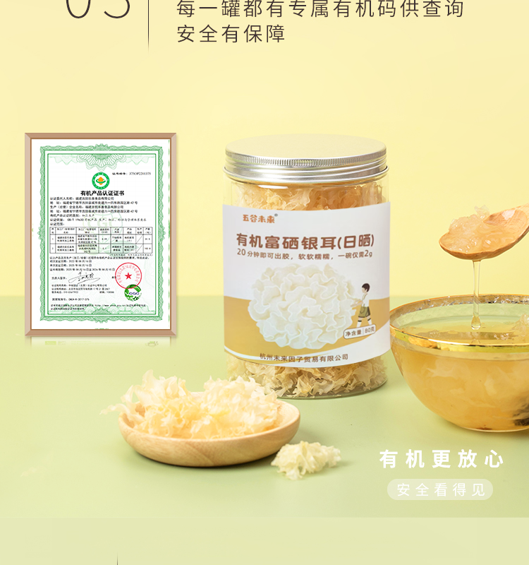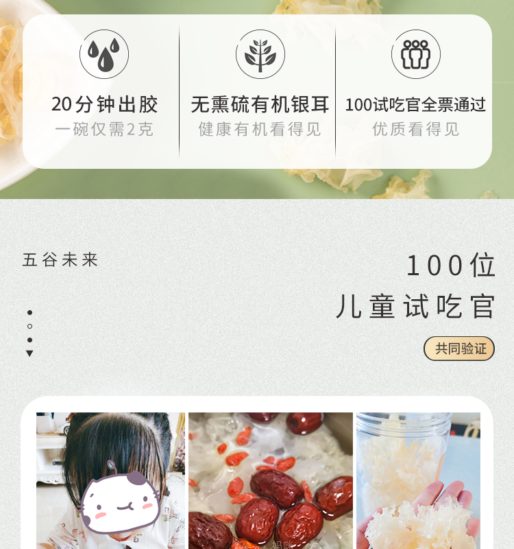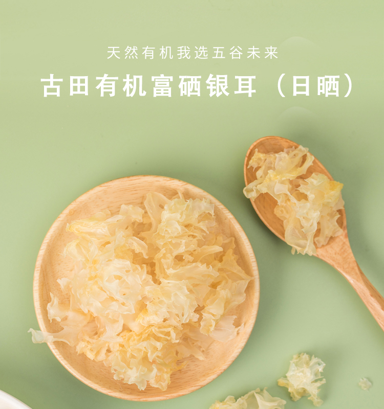 五谷未来有机富硒银耳(日晒)80g,20分钟出胶 一煮即糯 胶质浓厚