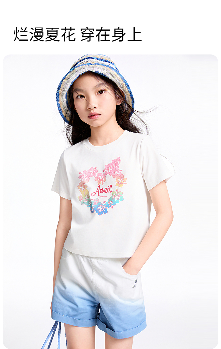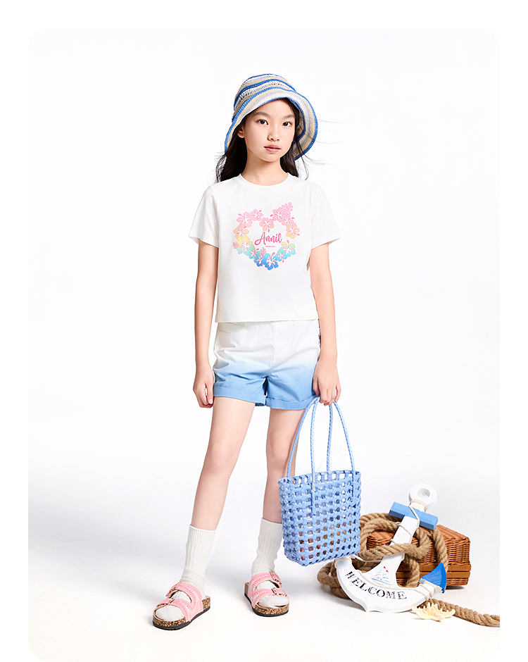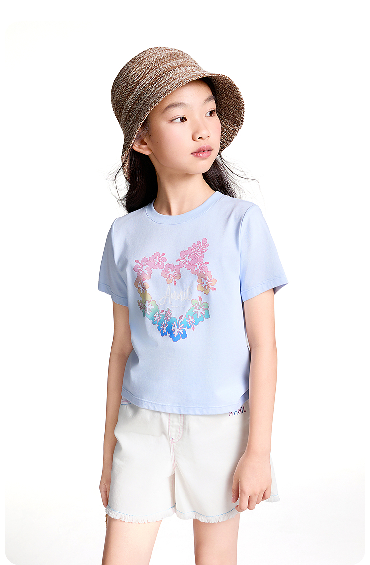 【实体店同款】女童短袖针织衫夏季新款安奈儿童装AG521671