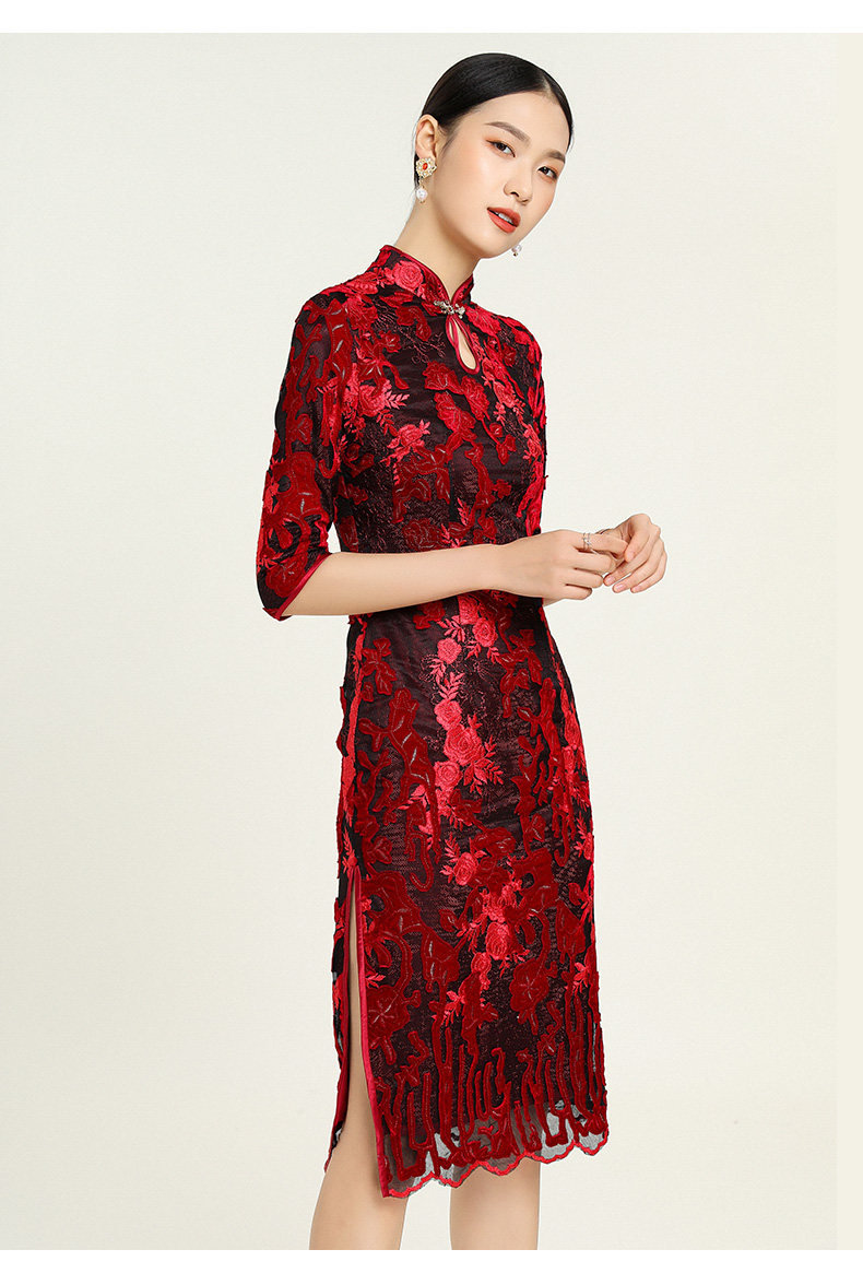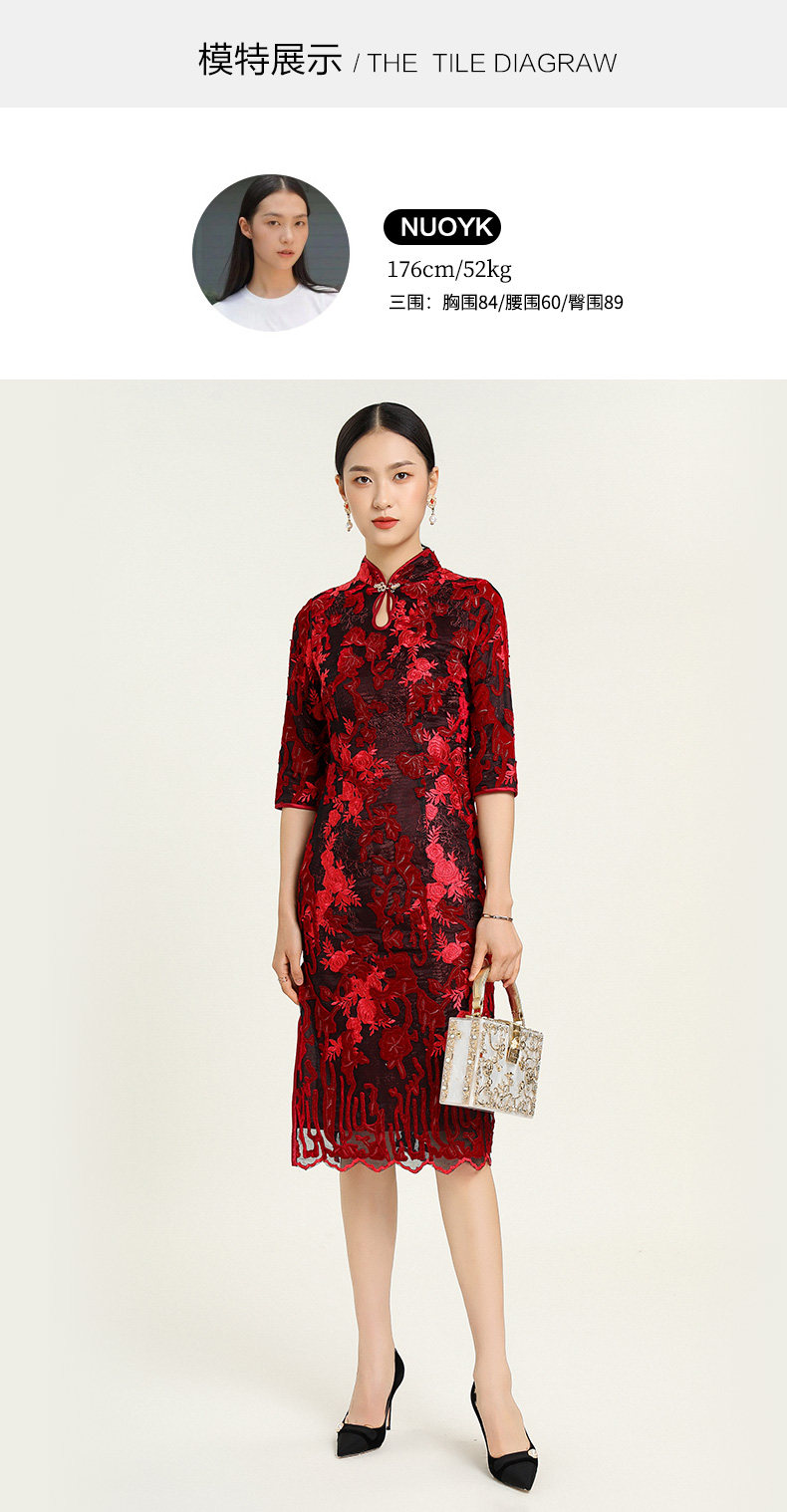乔万尼秋季连衣裙女气质修身显瘦旗袍风红装喜宴礼服裙子EB1E736