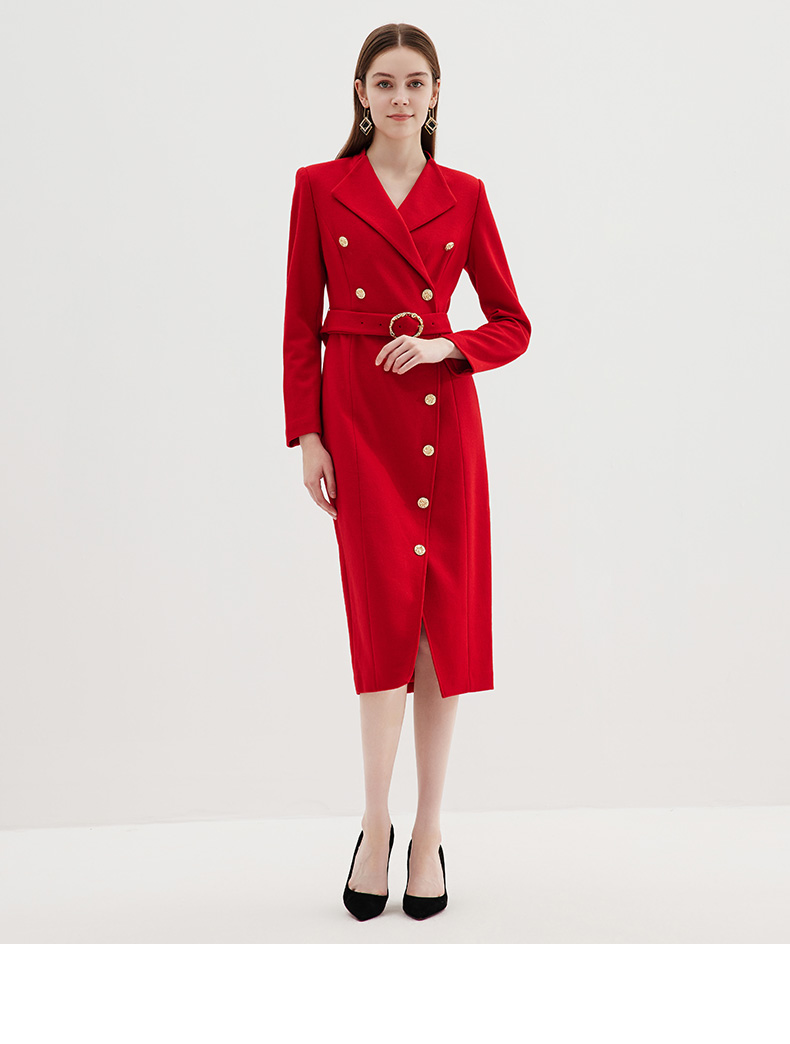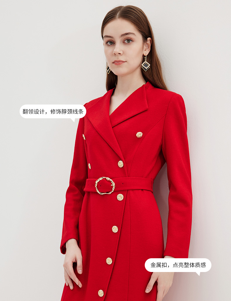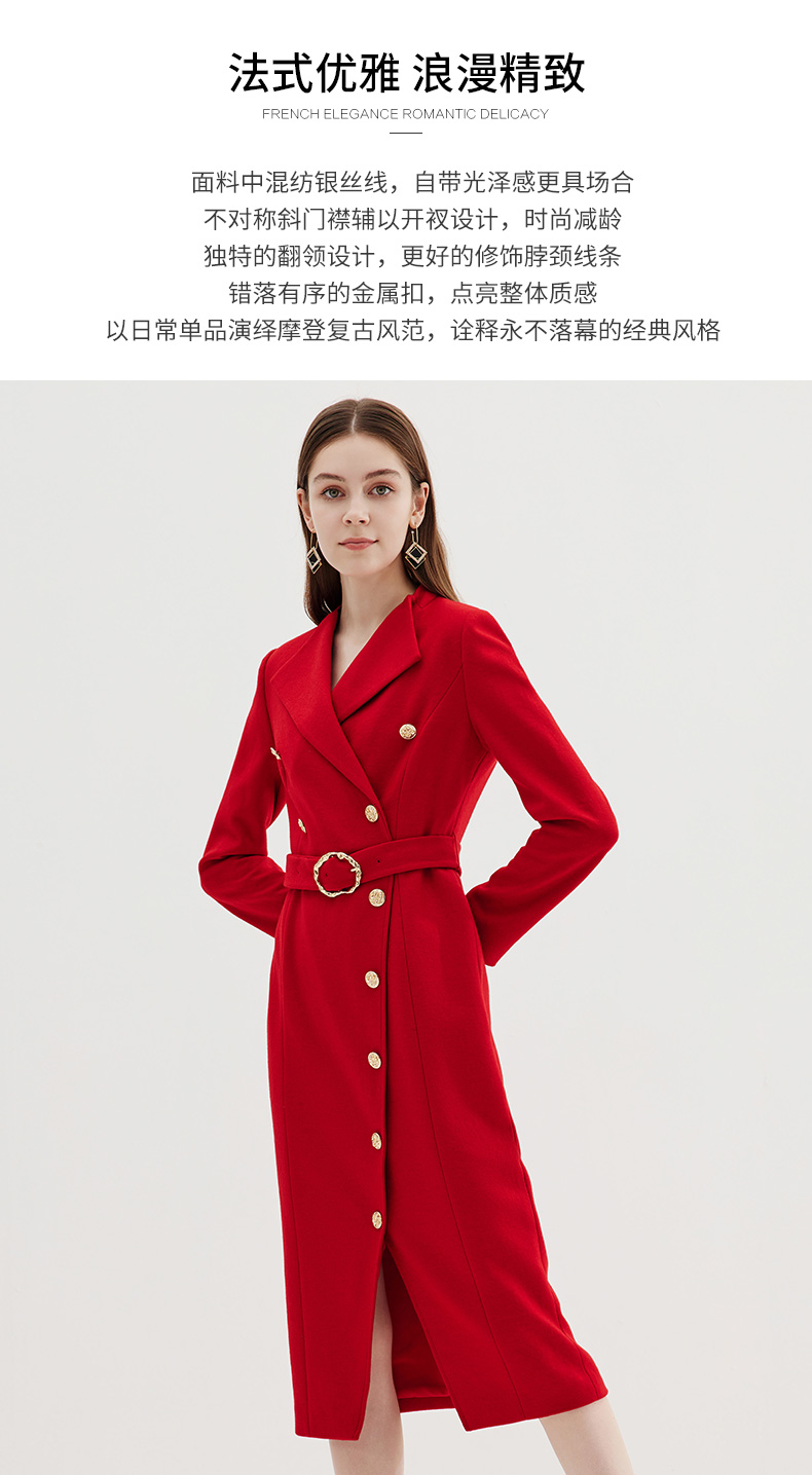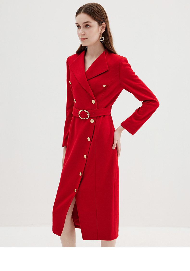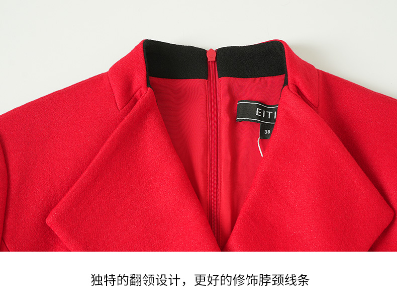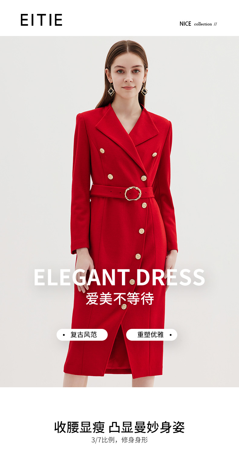 EITIE爱特爱冬季新款时尚修身经典翻领裙摆开叉显高连衣裙7207918