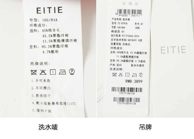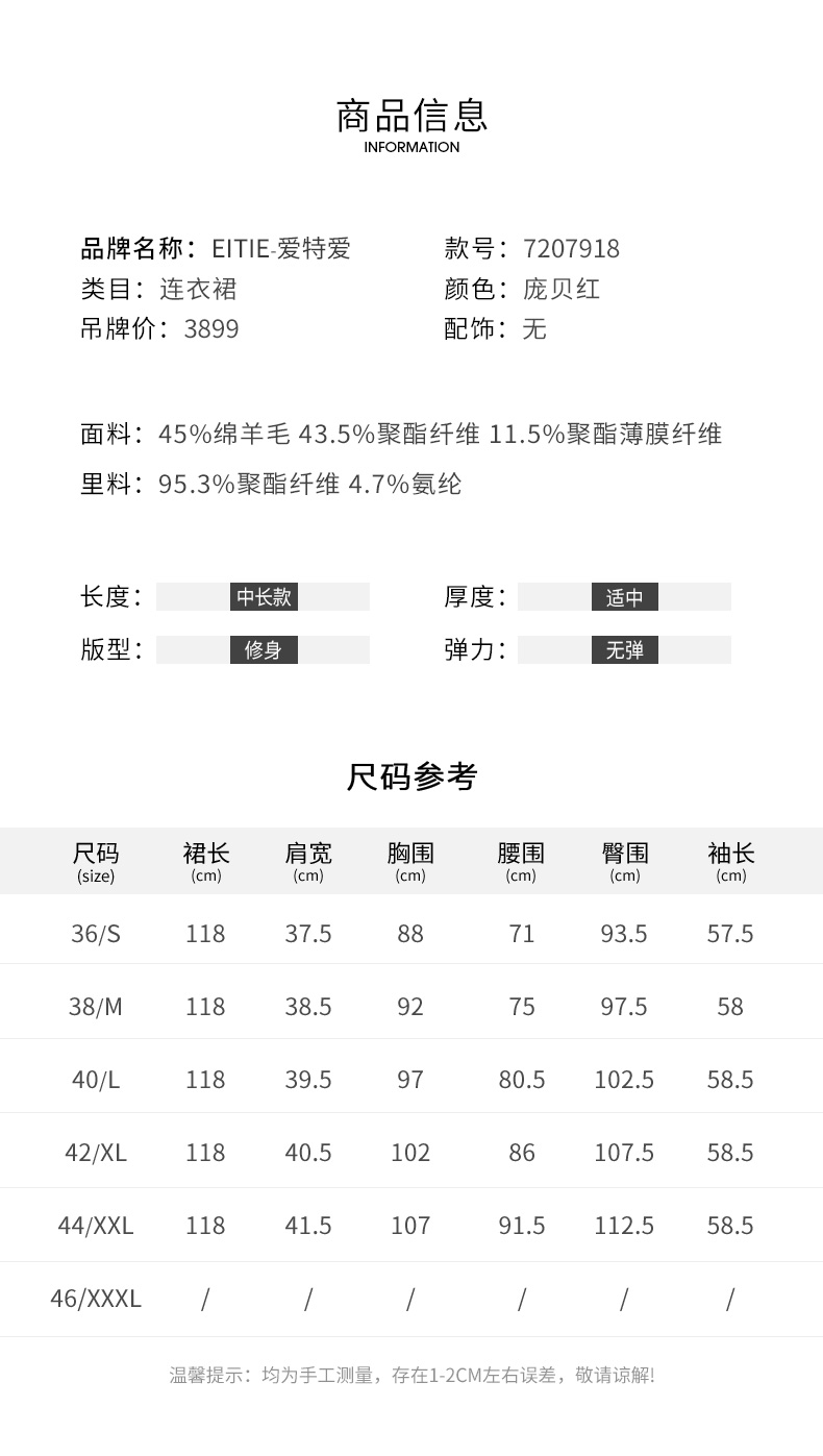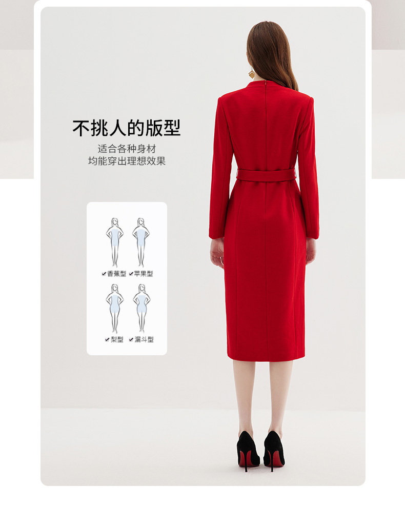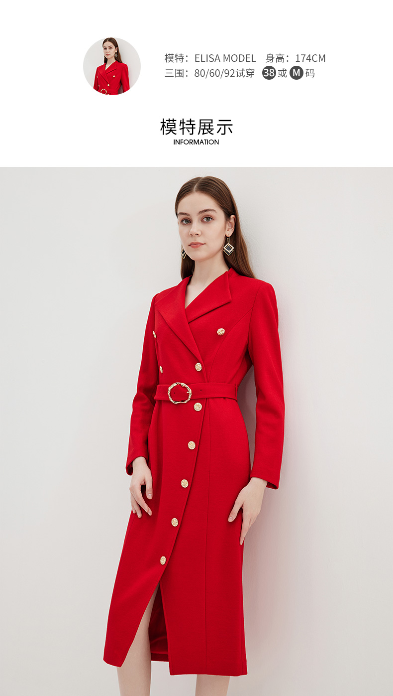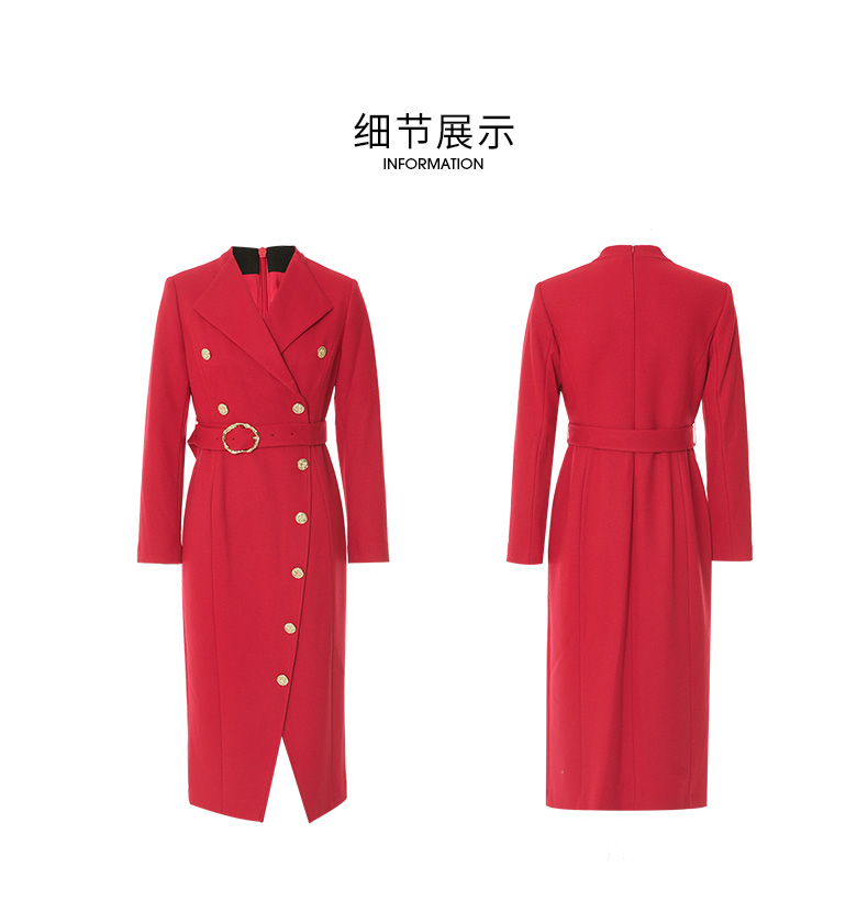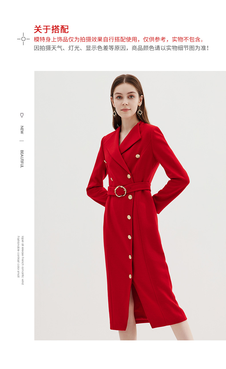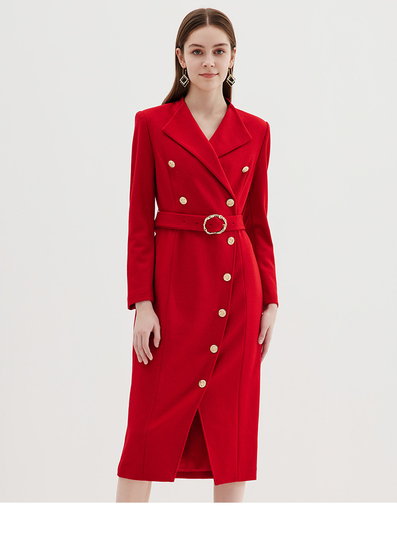 EITIE爱特爱冬季新款时尚修身经典翻领裙摆开叉显高连衣裙7207918