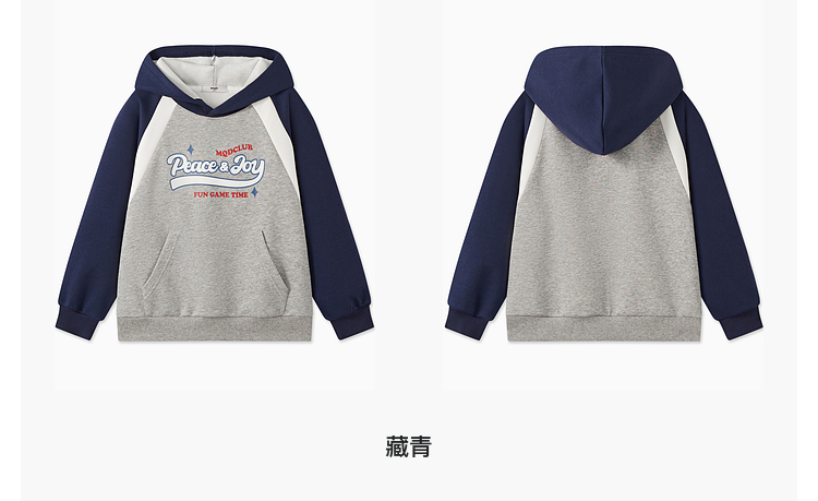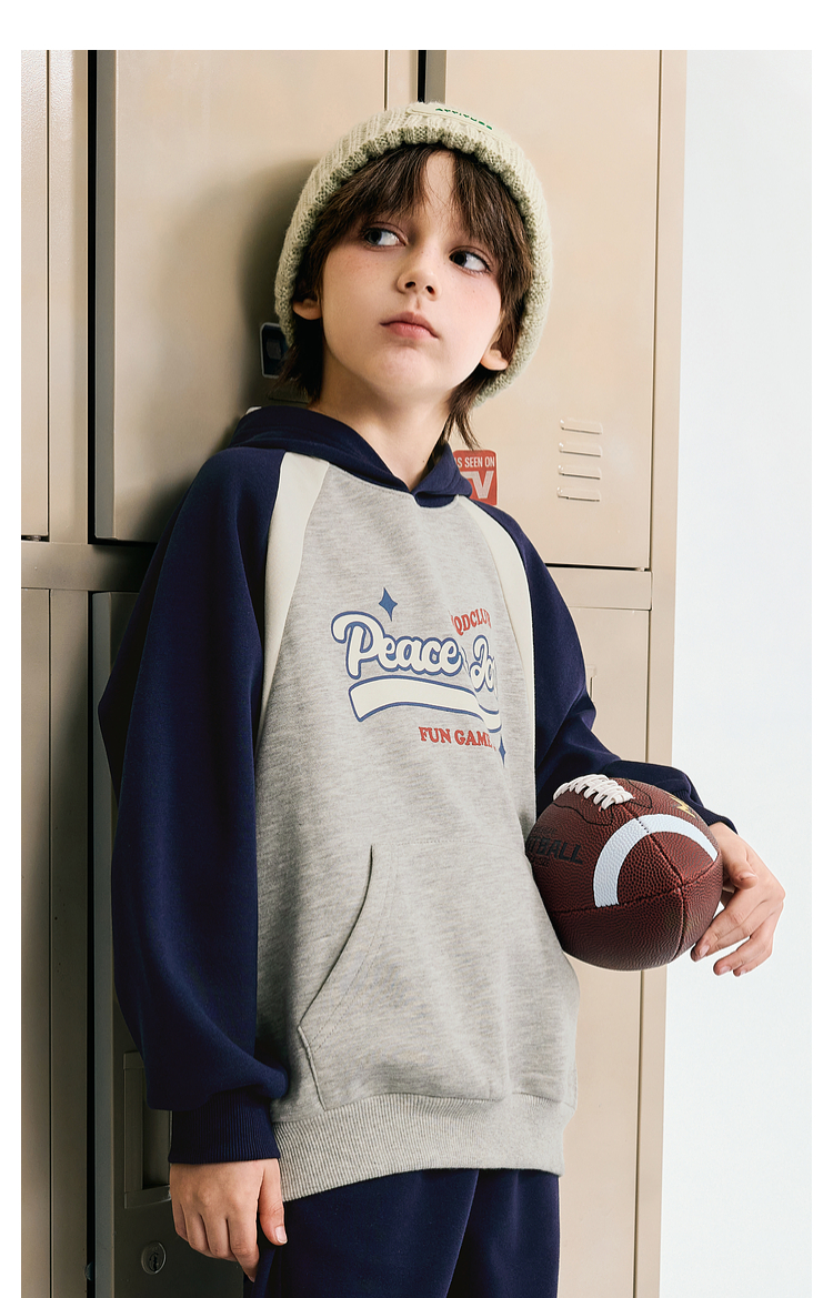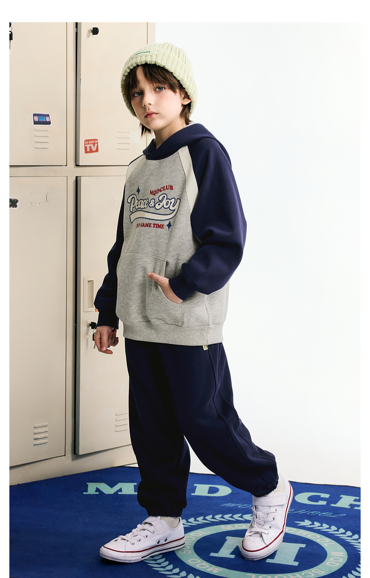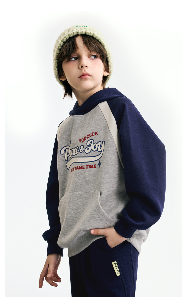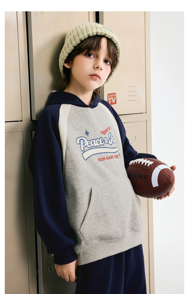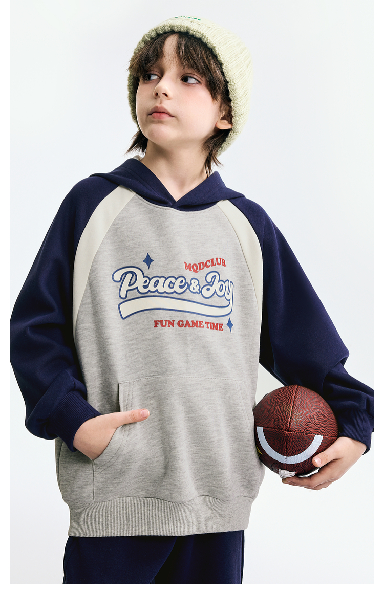 【MQD】小灯塔男大童秋季新品学院风插肩袖卡通撞色连帽卫衣