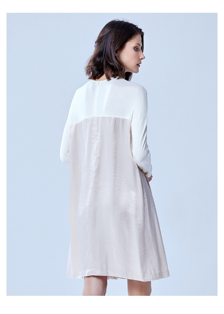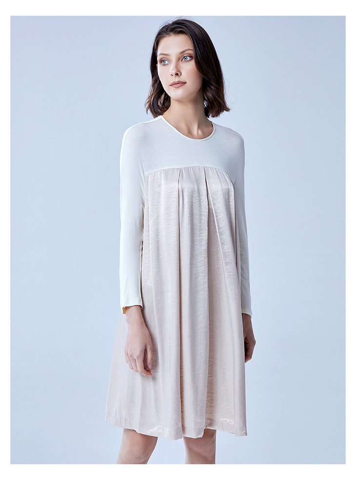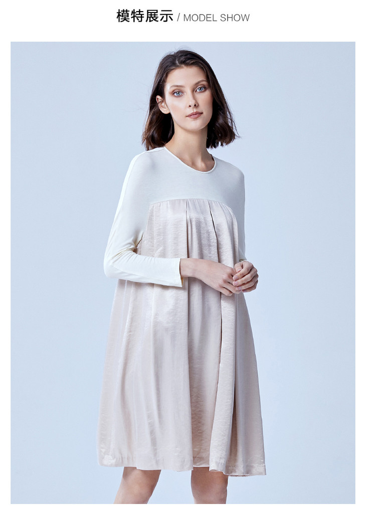 VIMAGE纬漫纪夏季女装宽松高腰A字褶皱连衣裙中长裙女裙V907579