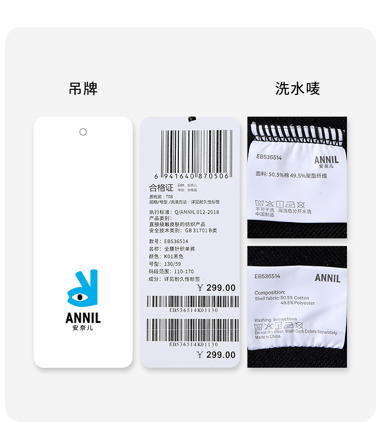 男童全腰针织单裤秋季新款安奈儿童装EB536514