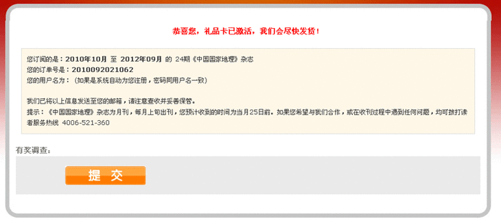 4、第四步:激活成功,请务必牢记订单号和用户名,以便查询。