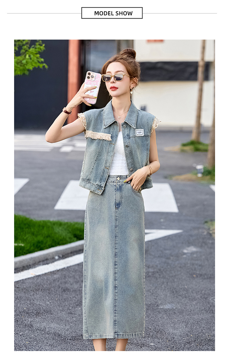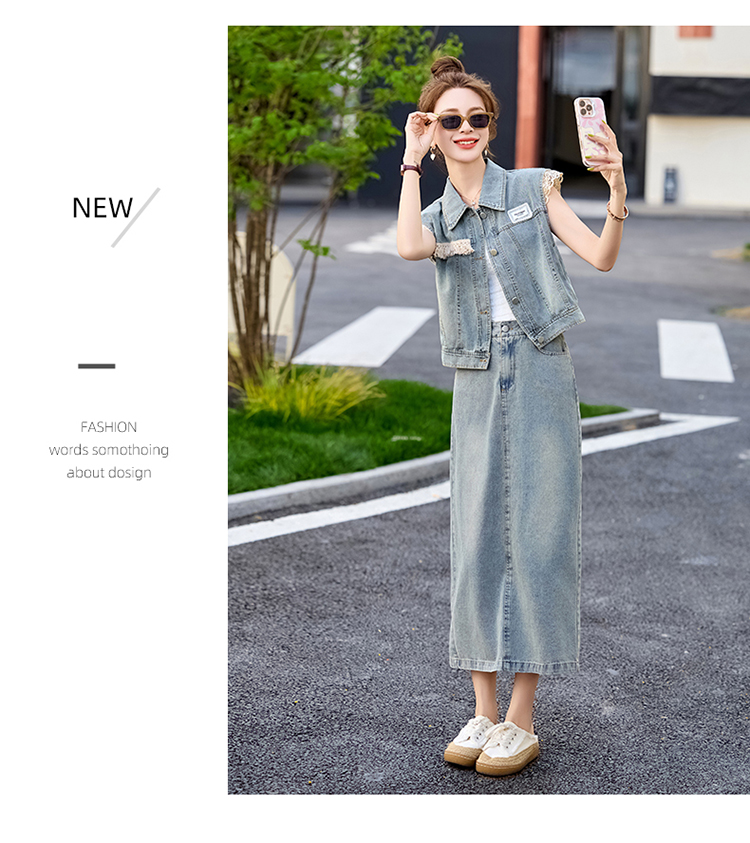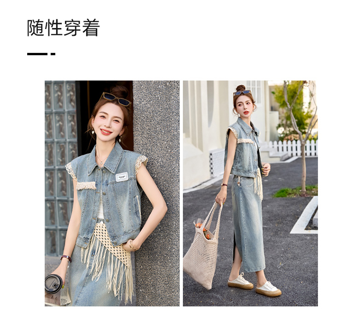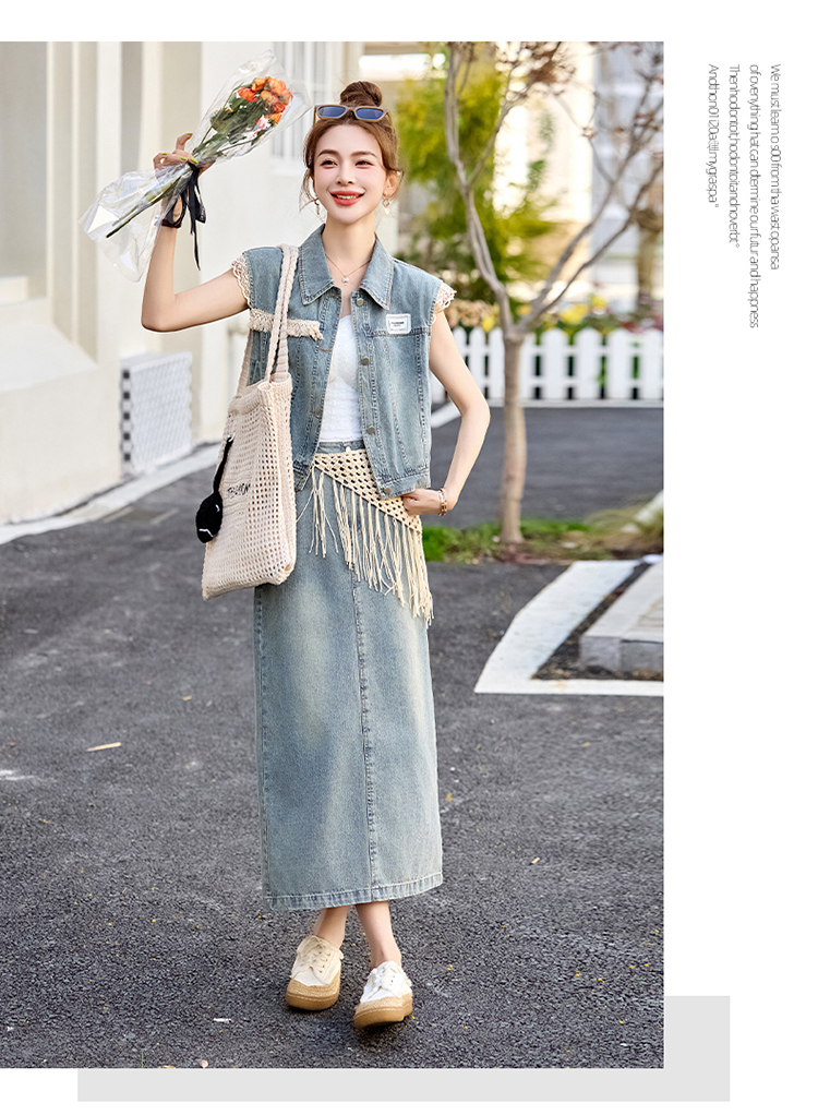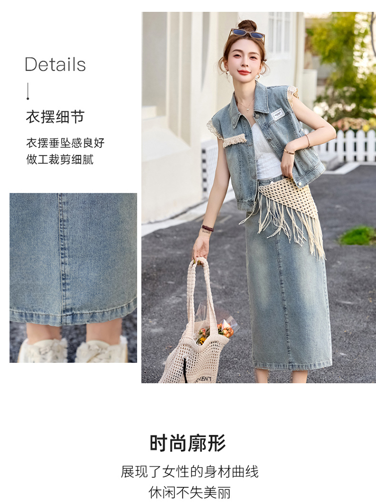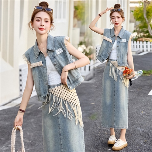 时尚牛仔,马甲裙子两件套装HR-AQHUI66632