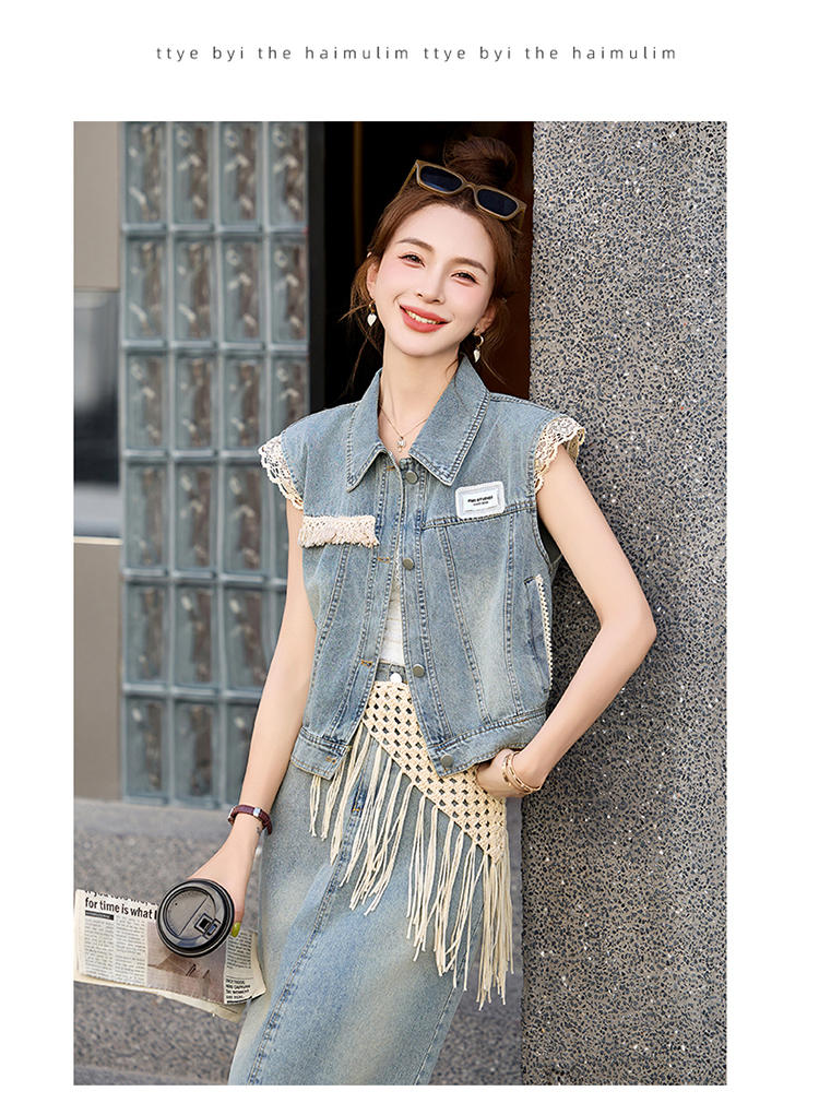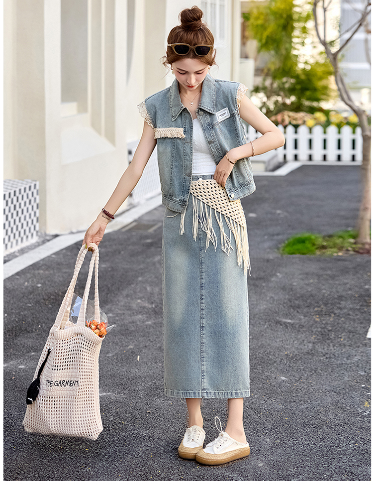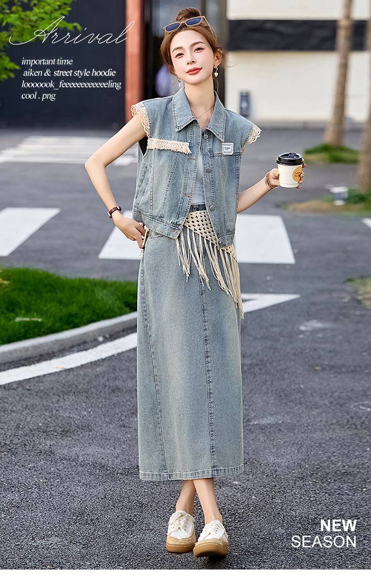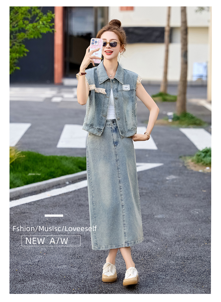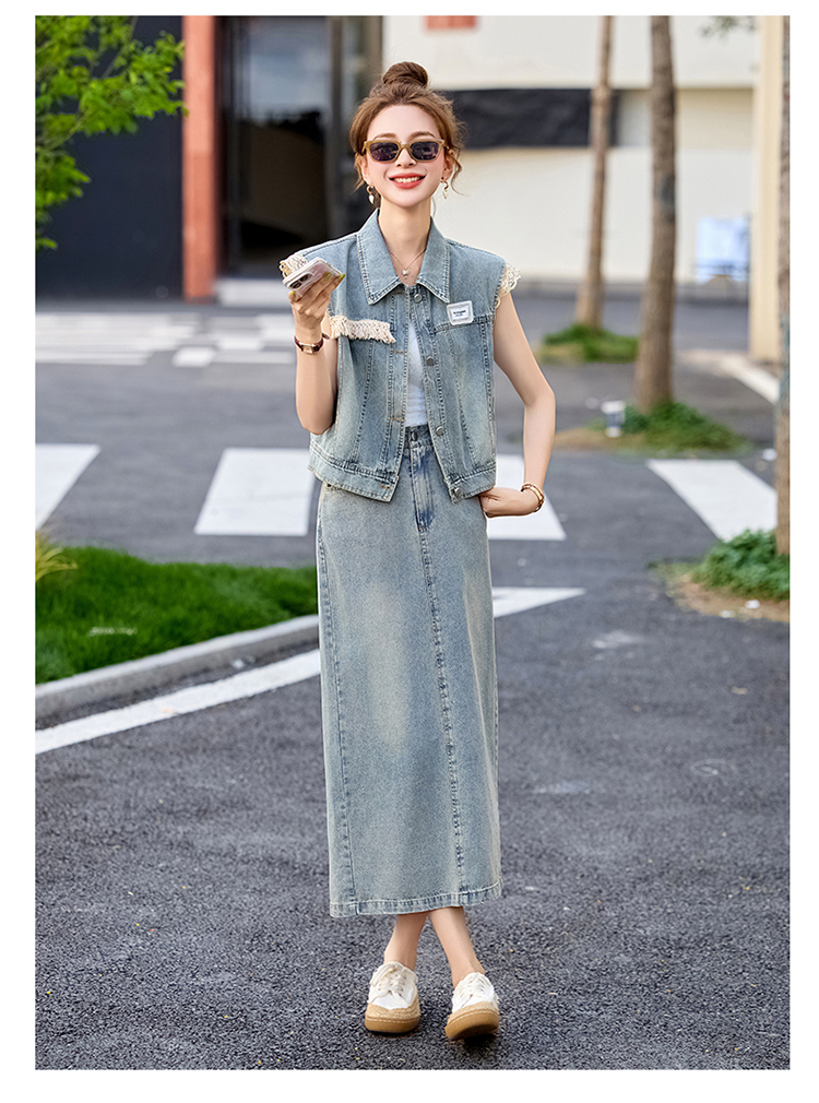 时尚牛仔,马甲裙子两件套装HR-AQHUI66632