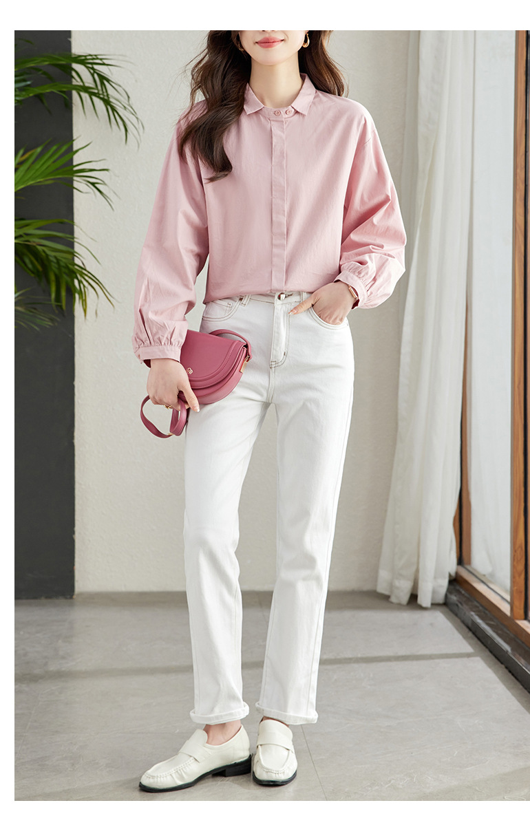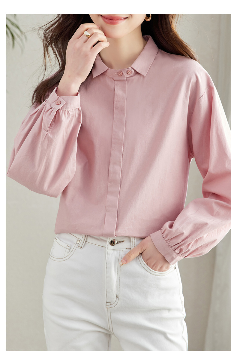 丁摩 新款春秋季纯棉长袖衬衫女门巾工艺衬衣女5ZF-41095