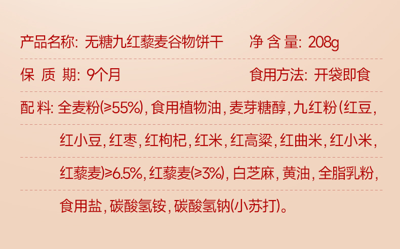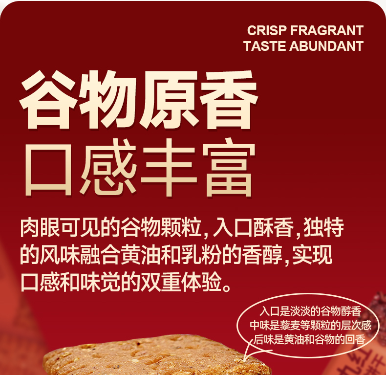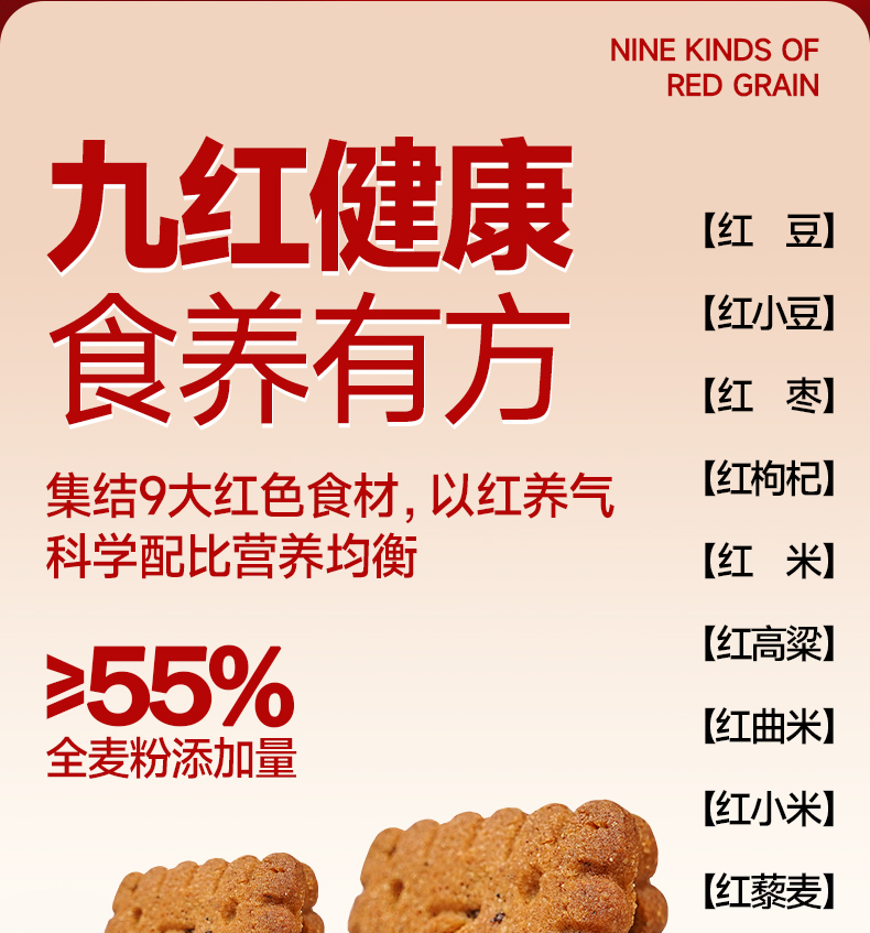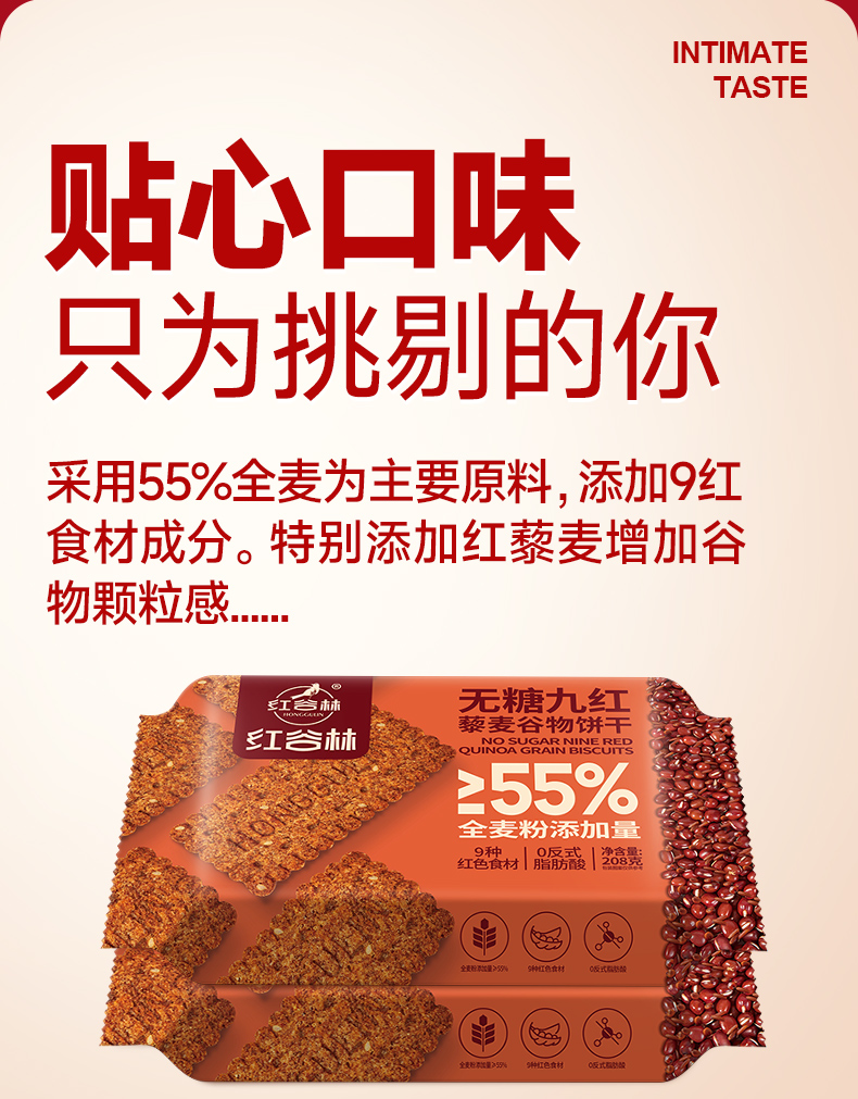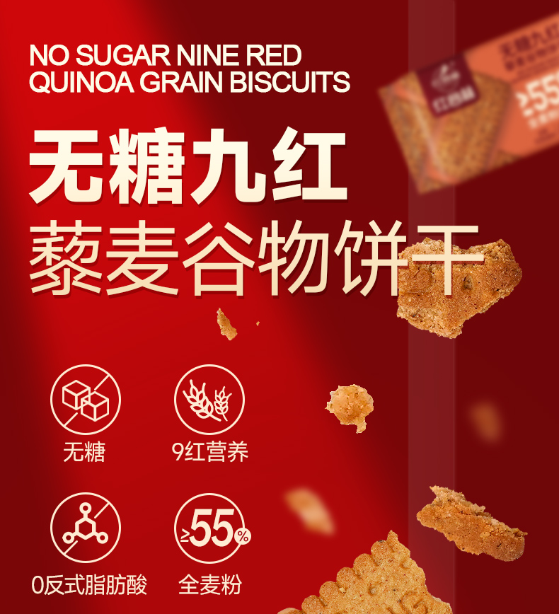红谷林低GI无糖9红藜麦谷物饼干全麦饼干黑全麦早餐粗粮解馋小零食