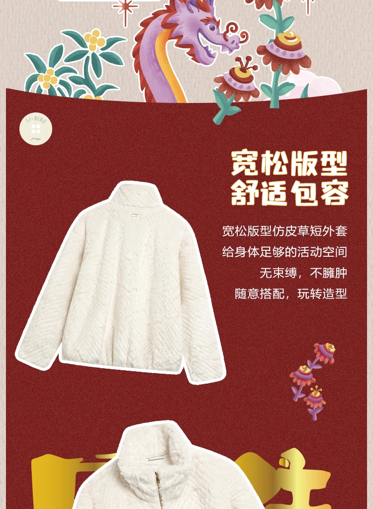 【S/M/L/XL断码】李宁日进斗金系列女子宽松仿皮草短外套AJDU002【库存有限,如无货将做退款,介意慎拍!】