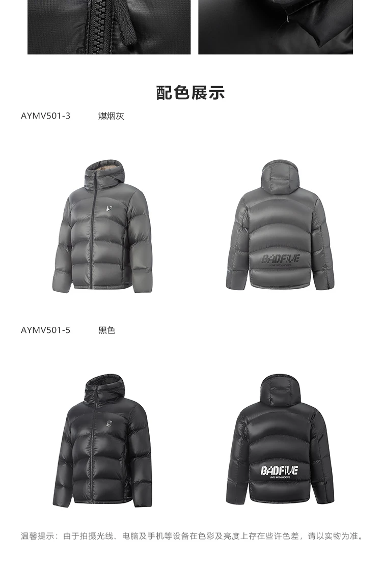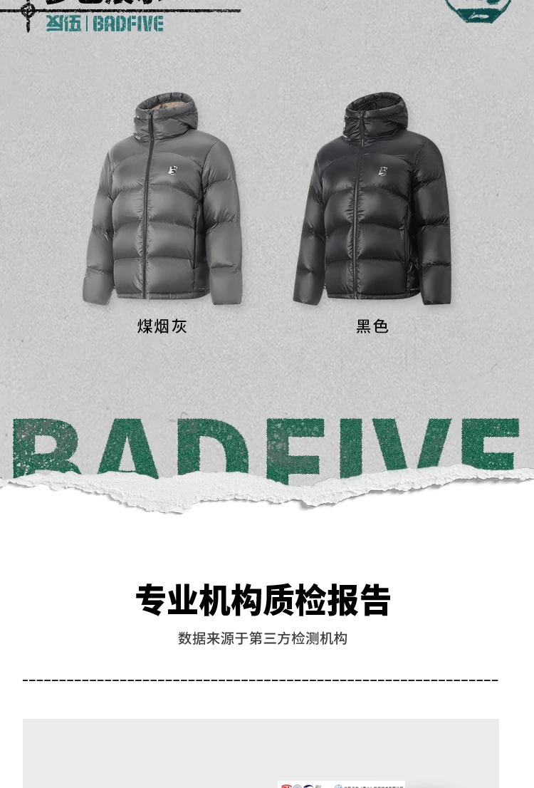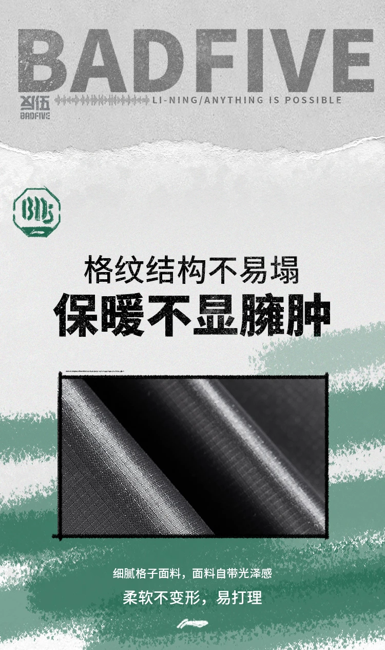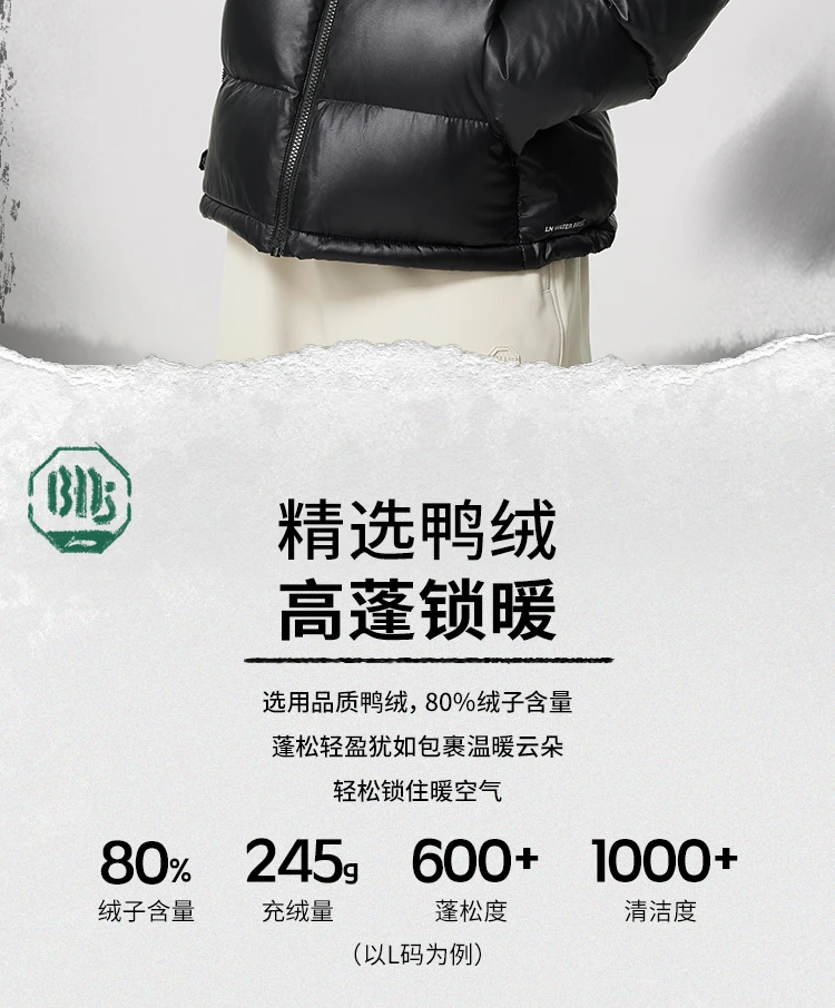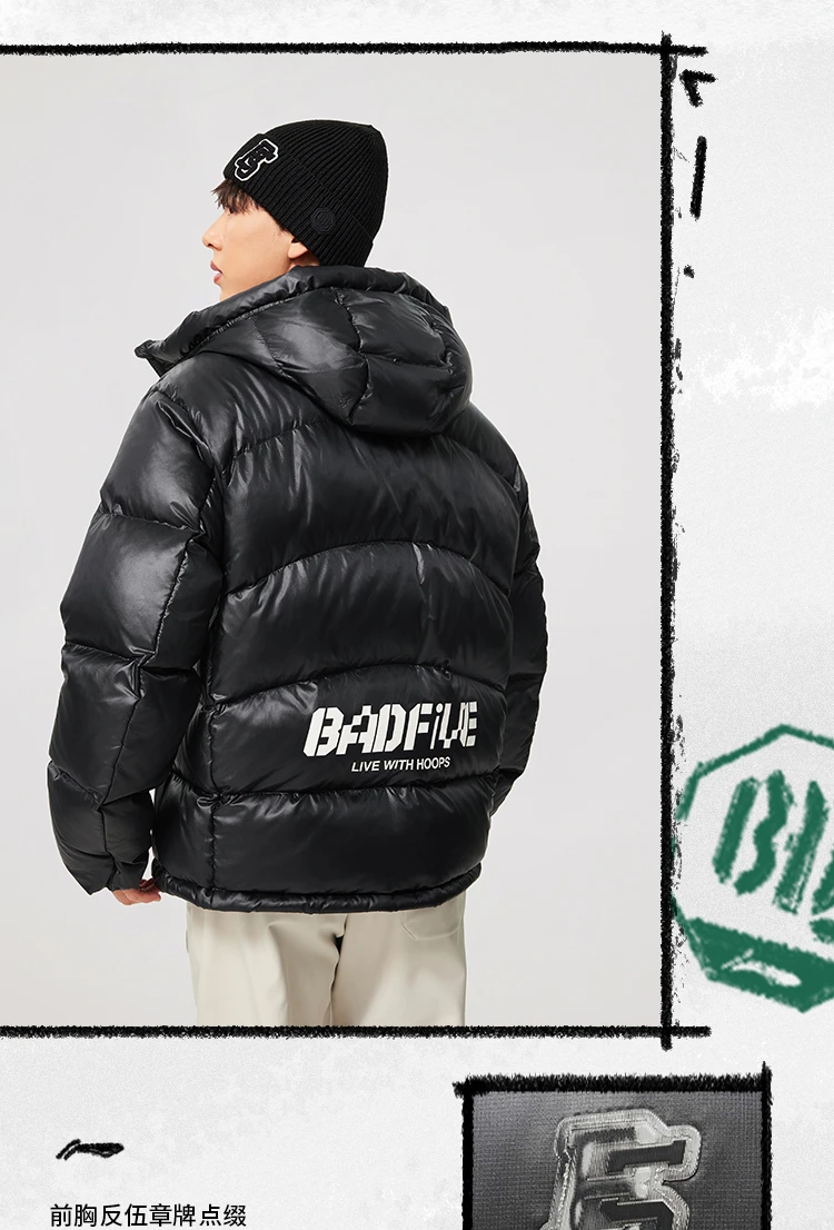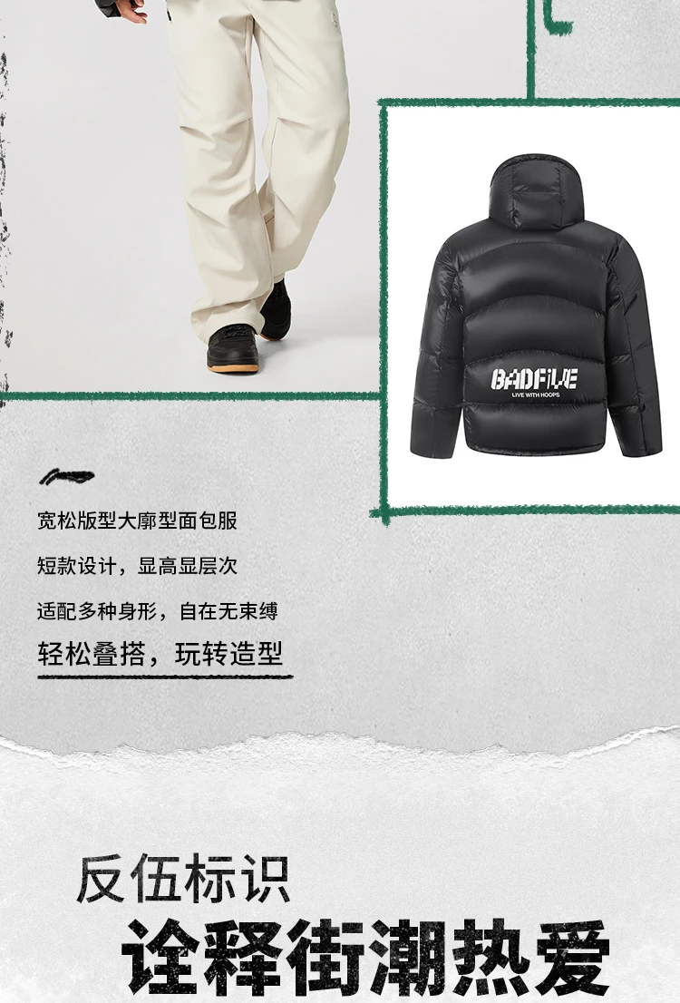 李宁反伍BADFIVE男子防泼水宽松短羽绒服AYMV501