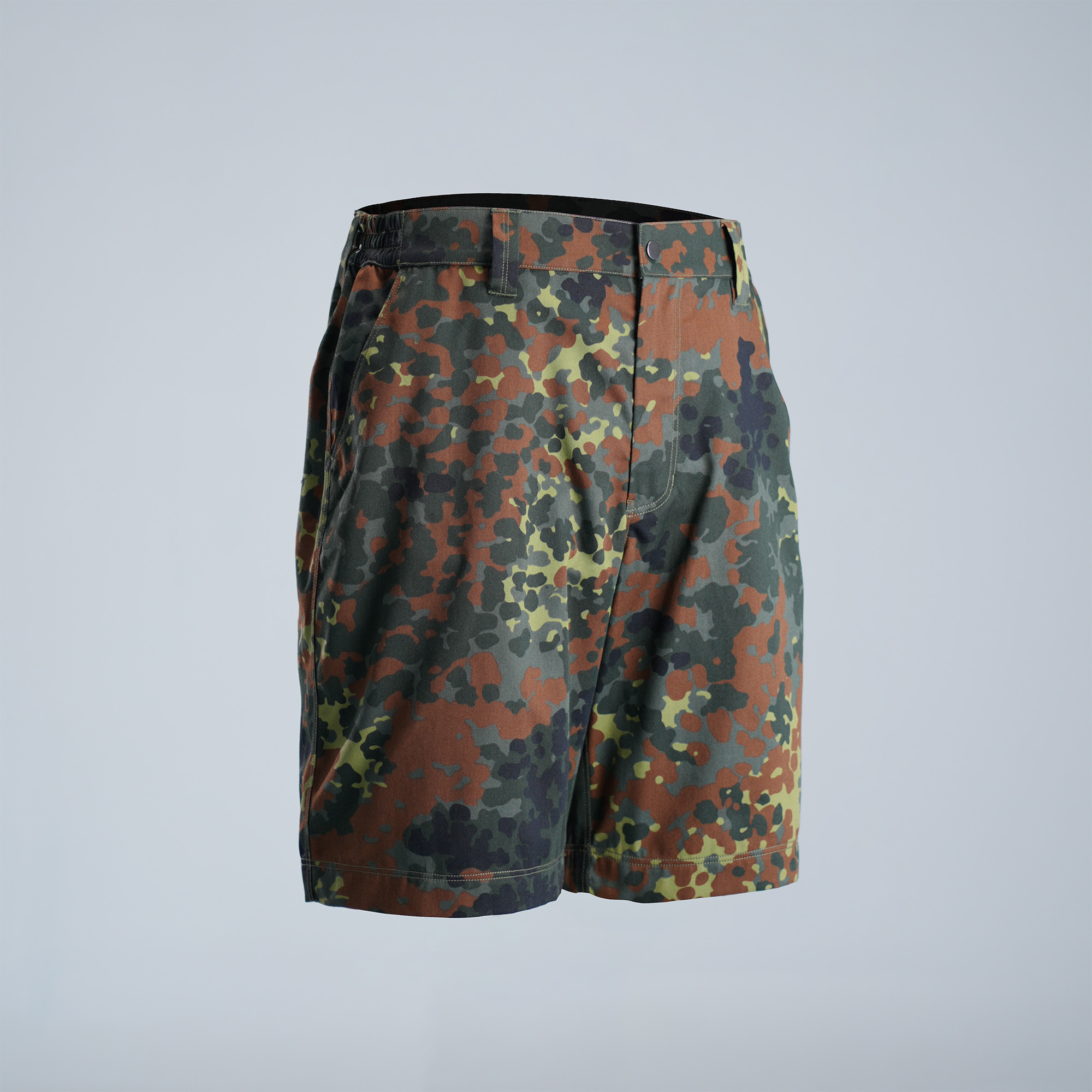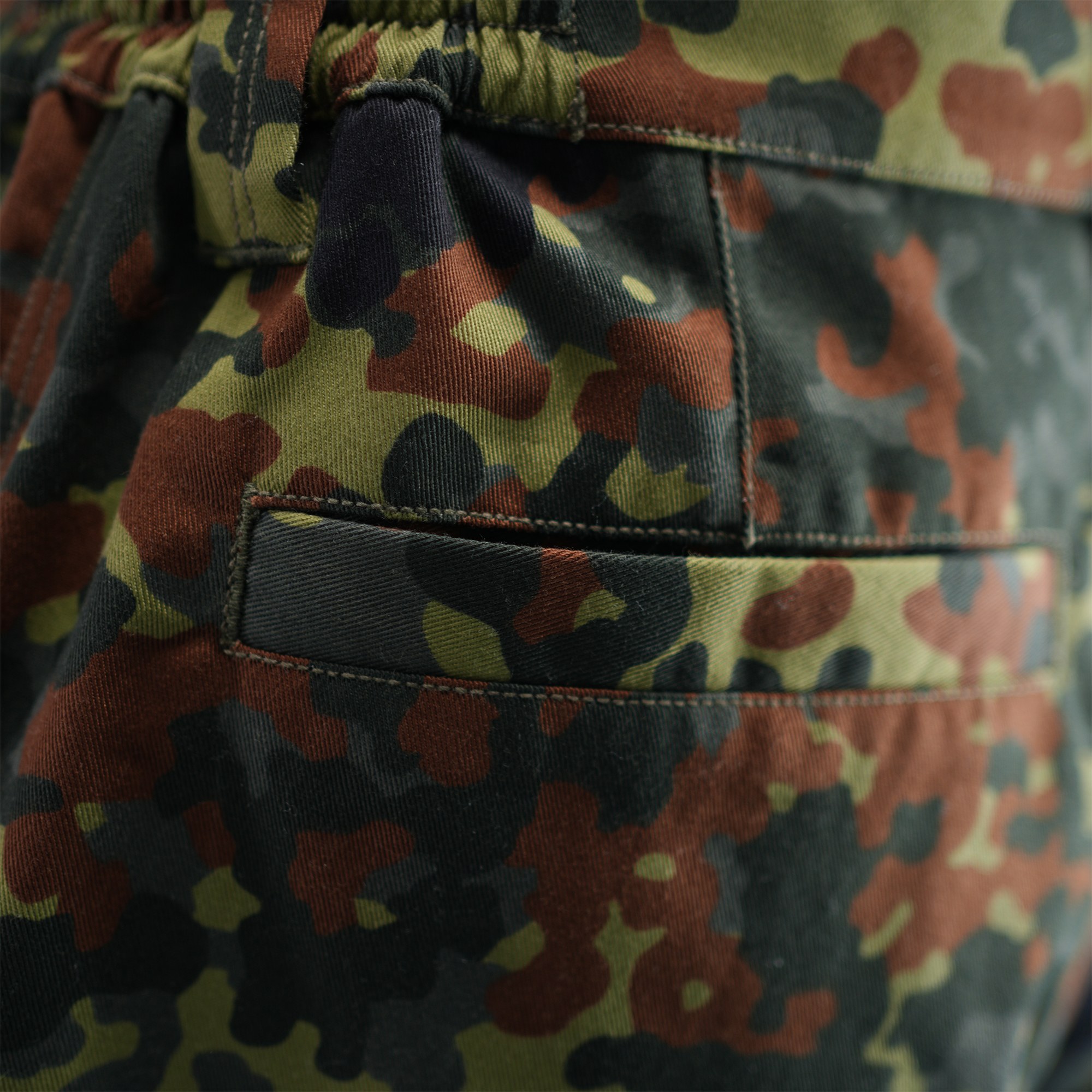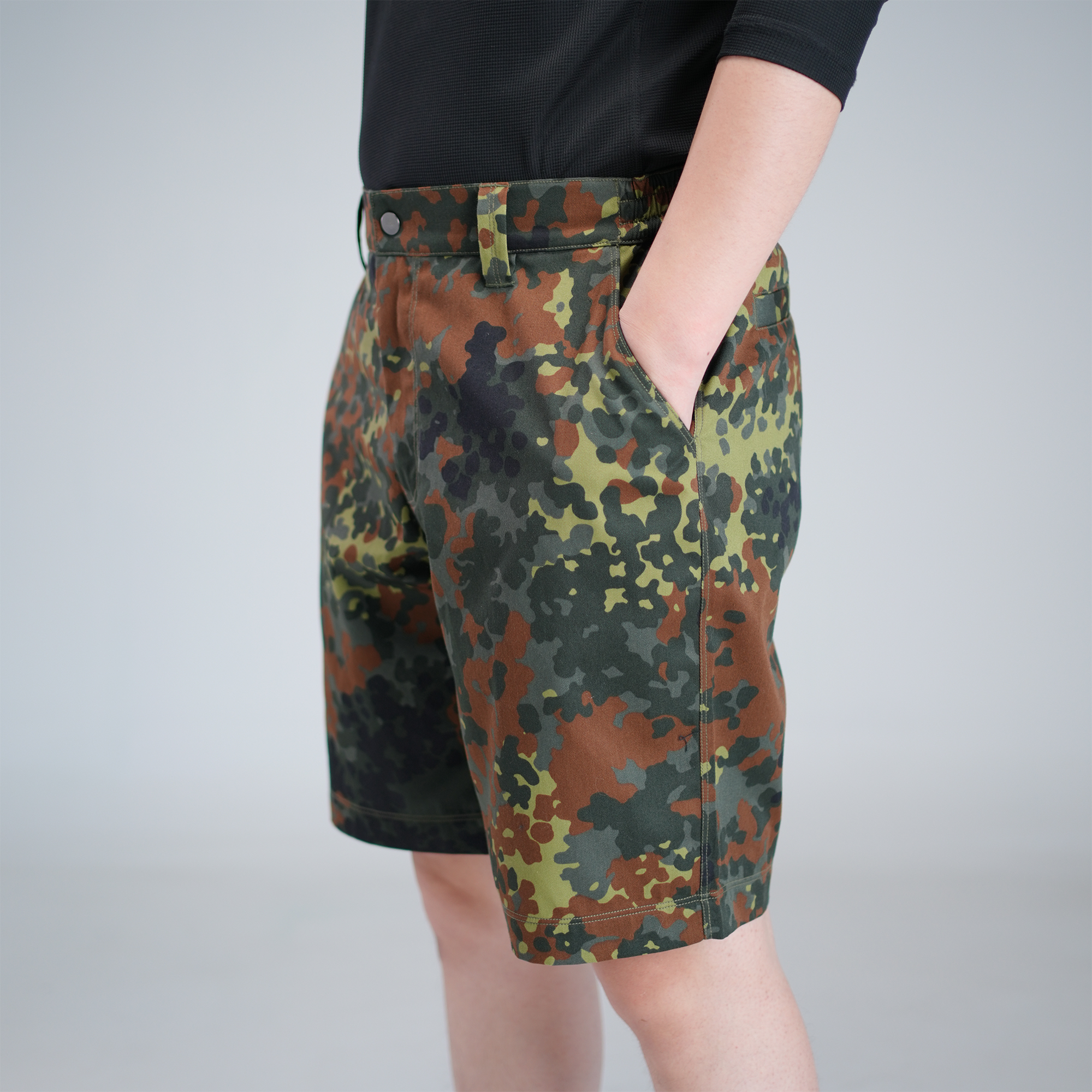 独特的迷彩设计: 德斑迷彩由五种颜色构成,分别是黄绿、浅绿、深绿、深棕和黑色,这些颜色对应了丛林中各种植物的相近色,如青草、浅绿色树叶、深绿色树叶、泥土和树枝等物体,具有很好的隐蔽效果,面料使用优质聚酯纤维65%和棉35%混纺,这种组合兼顾了耐磨性和柔软舒适性,适合日常穿着和户外活动。