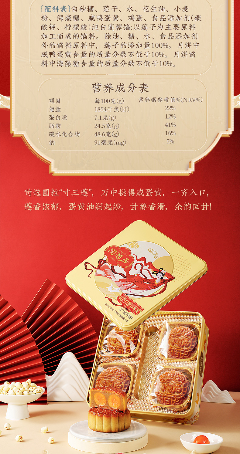 陶陶居双黄白莲蓉月饼720g