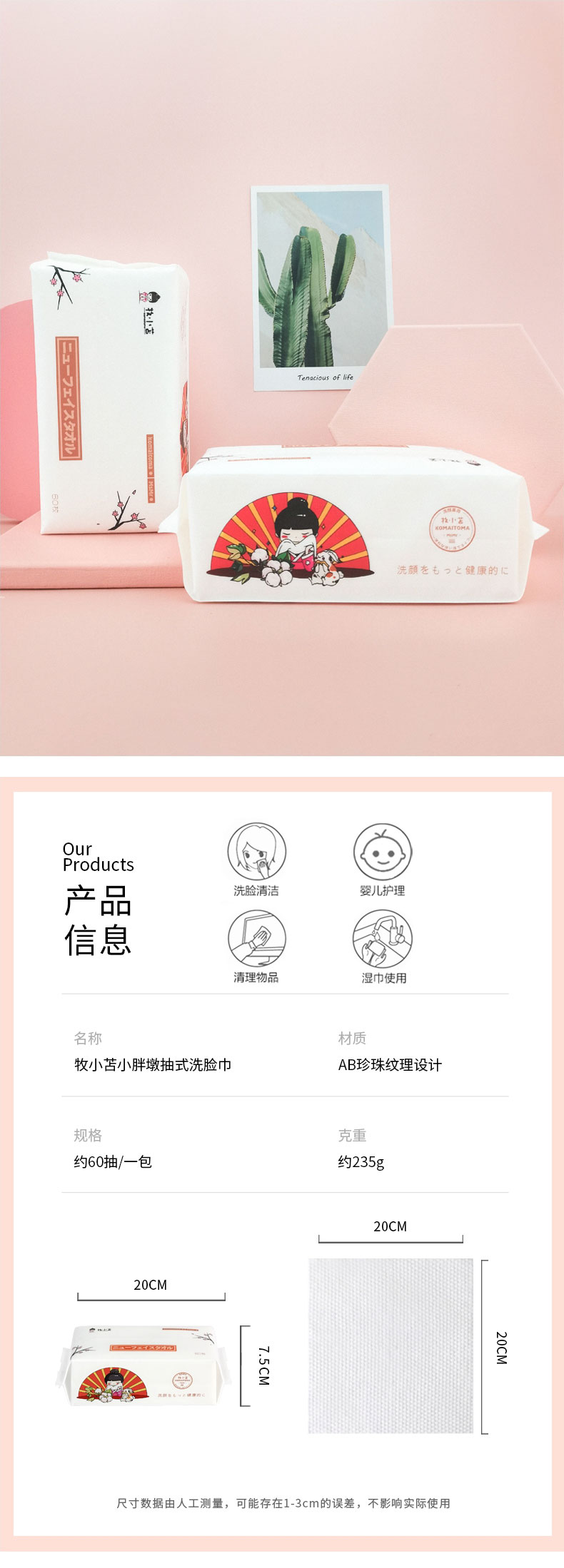 牧小苫小胖墩抽取洗脸巾加大加厚一次性洁面巾珍珠纹70抽(3包起售)