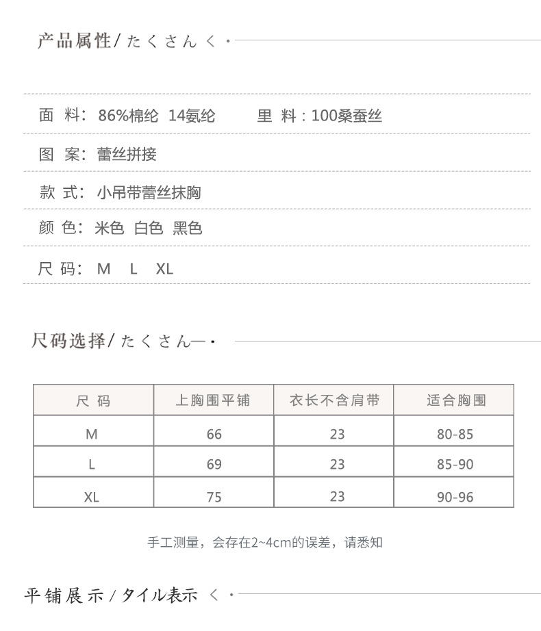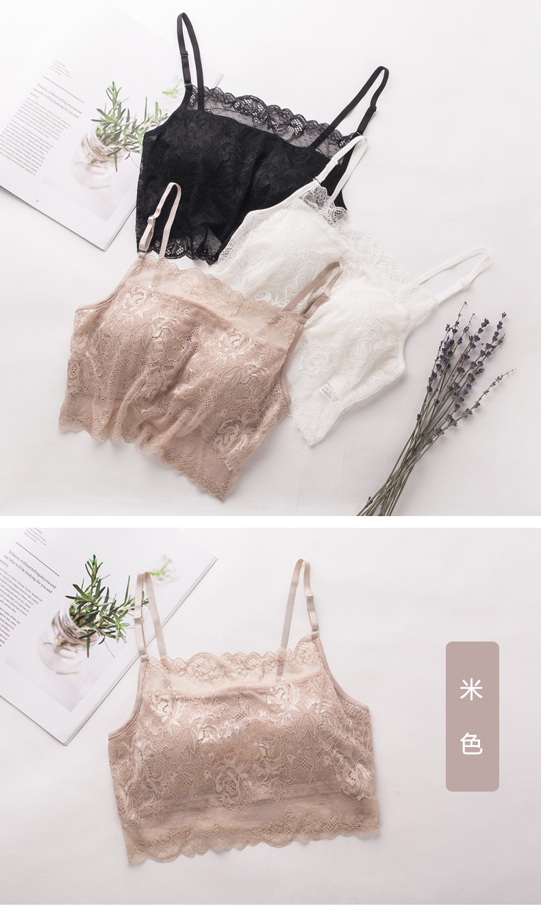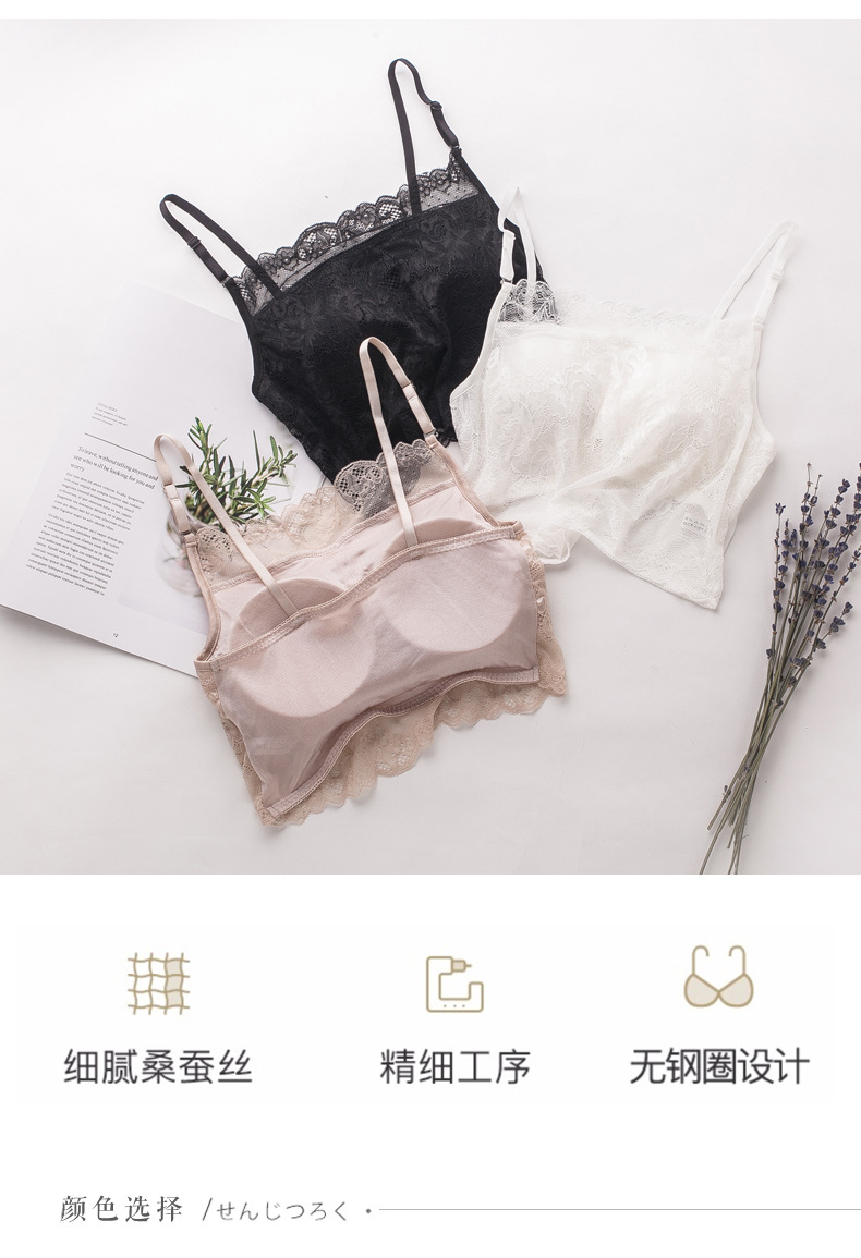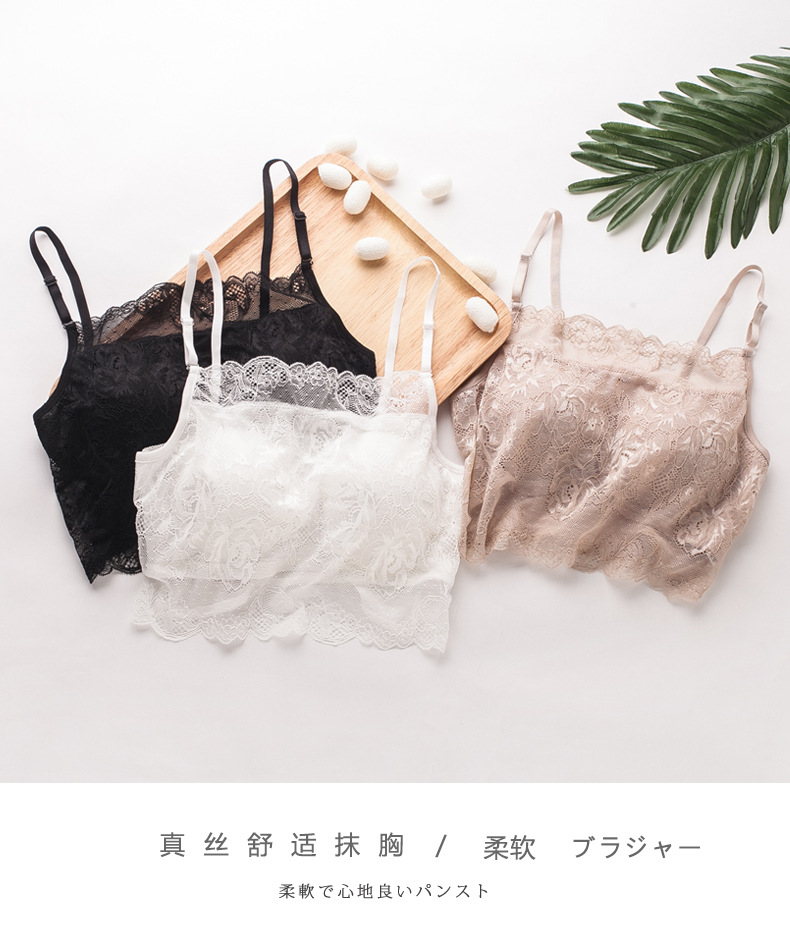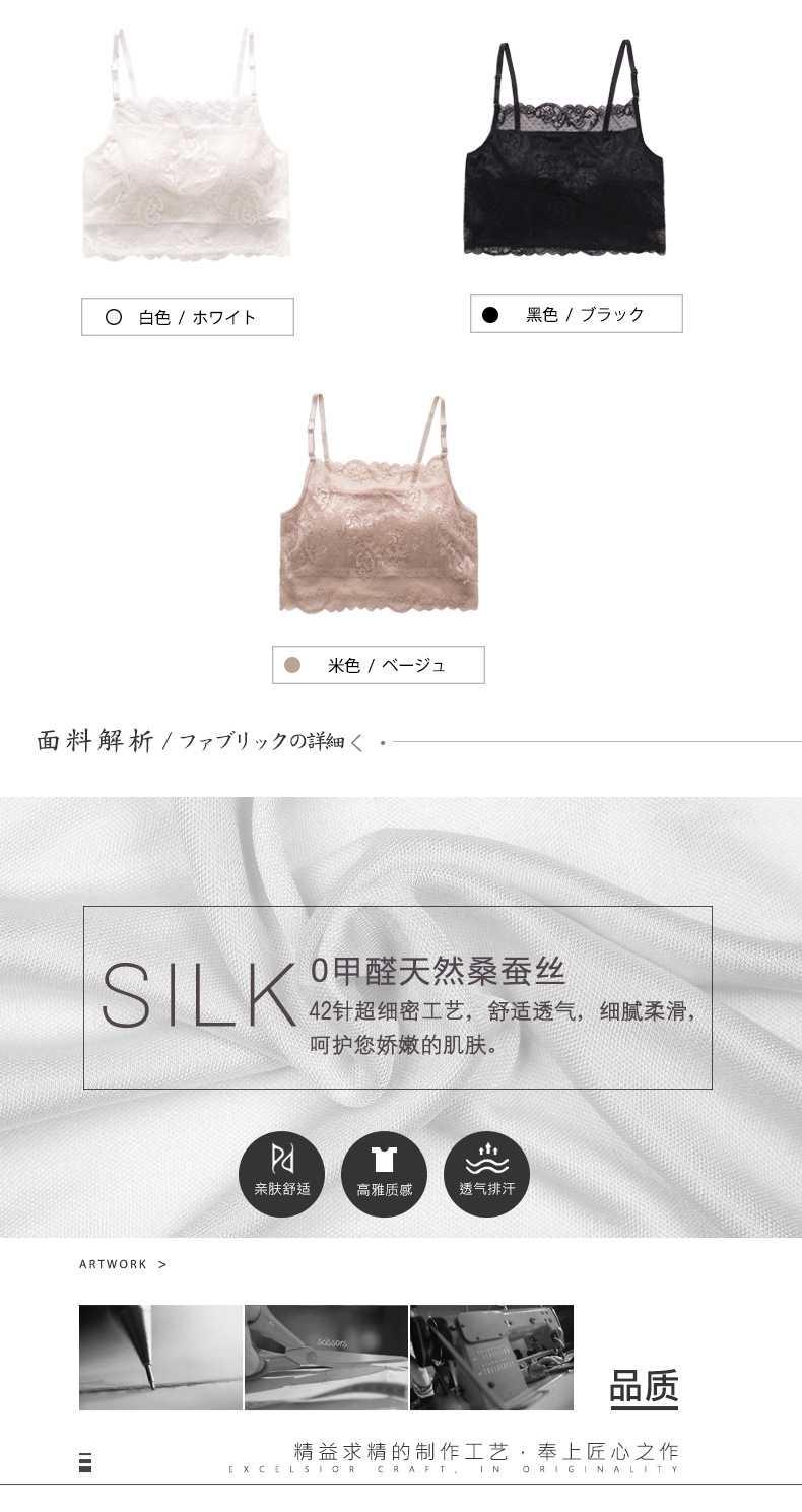 ARN-X027真丝吊带抹胸纯桑蚕丝大码针织蕾丝裹胸打底内衣围胸有胸垫女