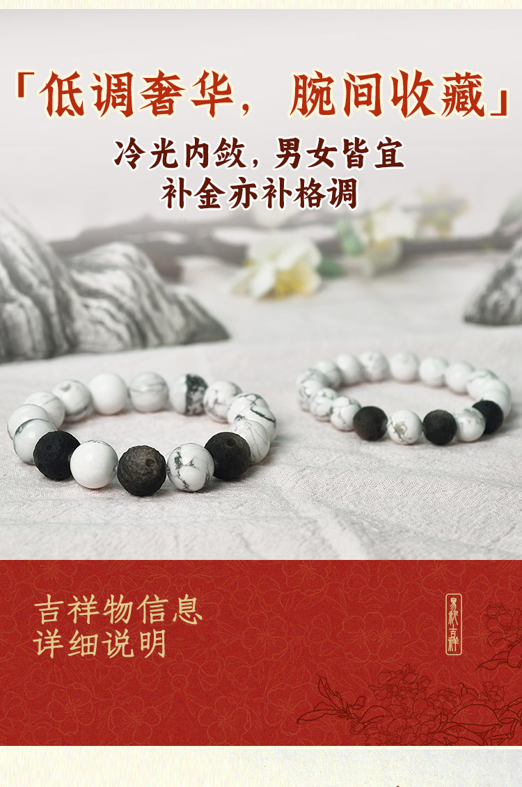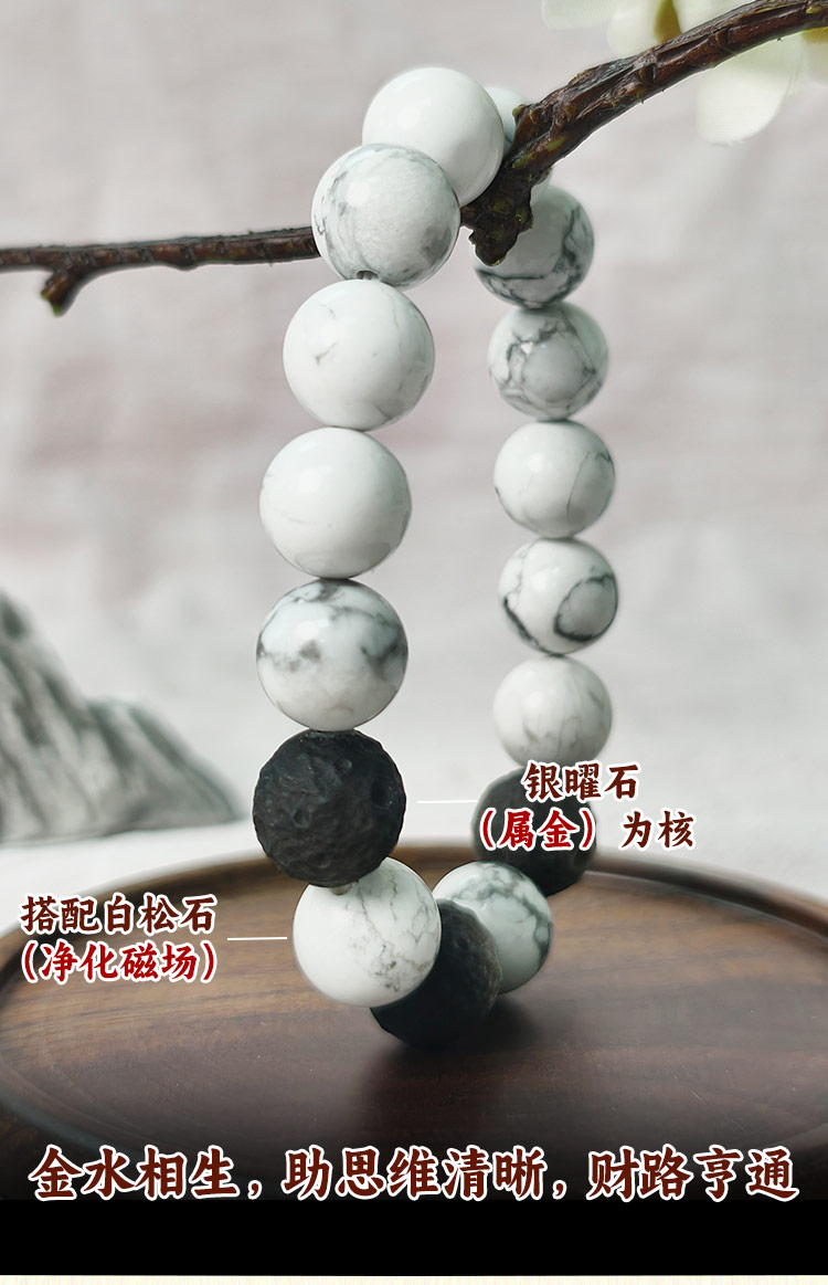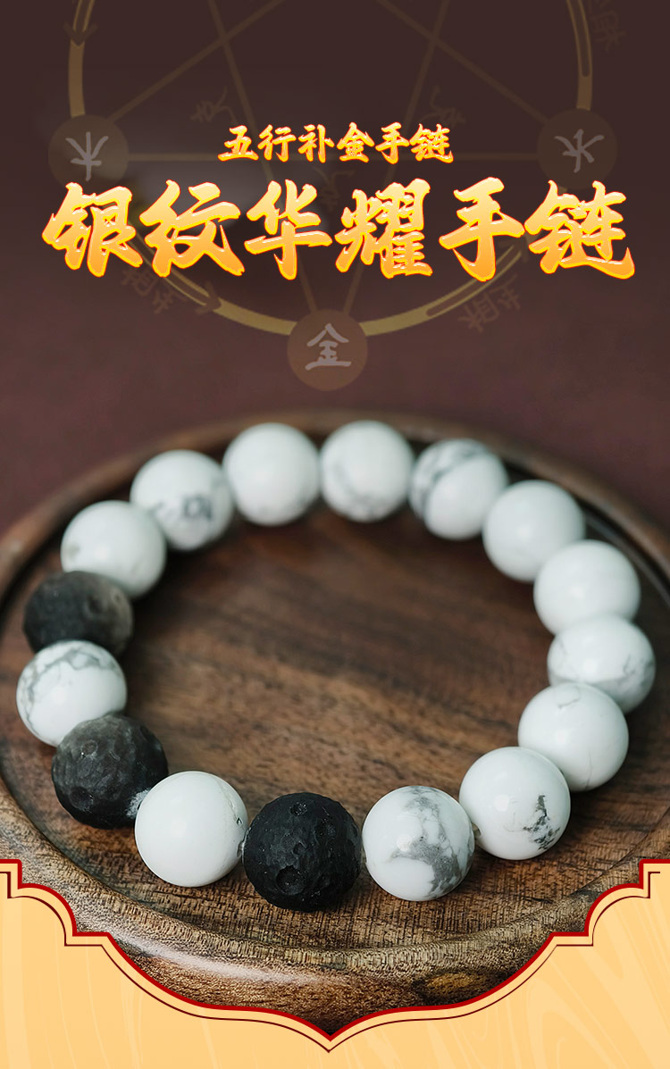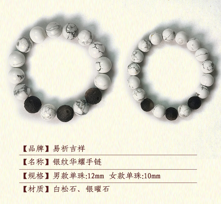 易祈吉祥五行补金系列白松石手链银曜石饰品送礼男女款手串礼物