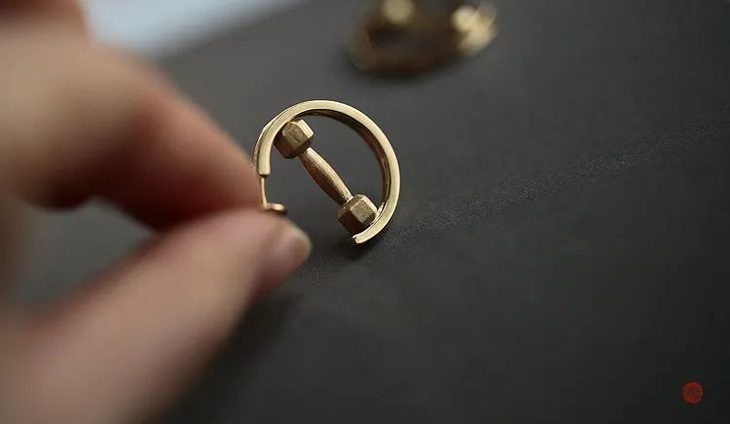 挂坠男女通用,耳环适合女生,非常的cool。而且你会发现,小哑铃在圈圈中间可以咕噜噜旋转,非常有趣。整体造型远看很像一个禁止符号。正是应和了“自律给我自由”这句话,