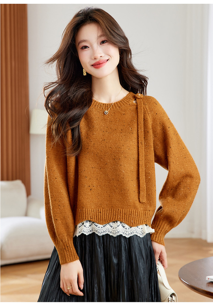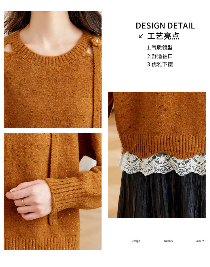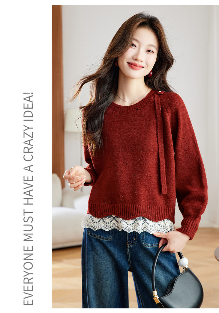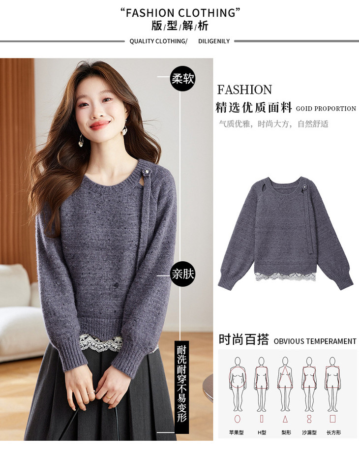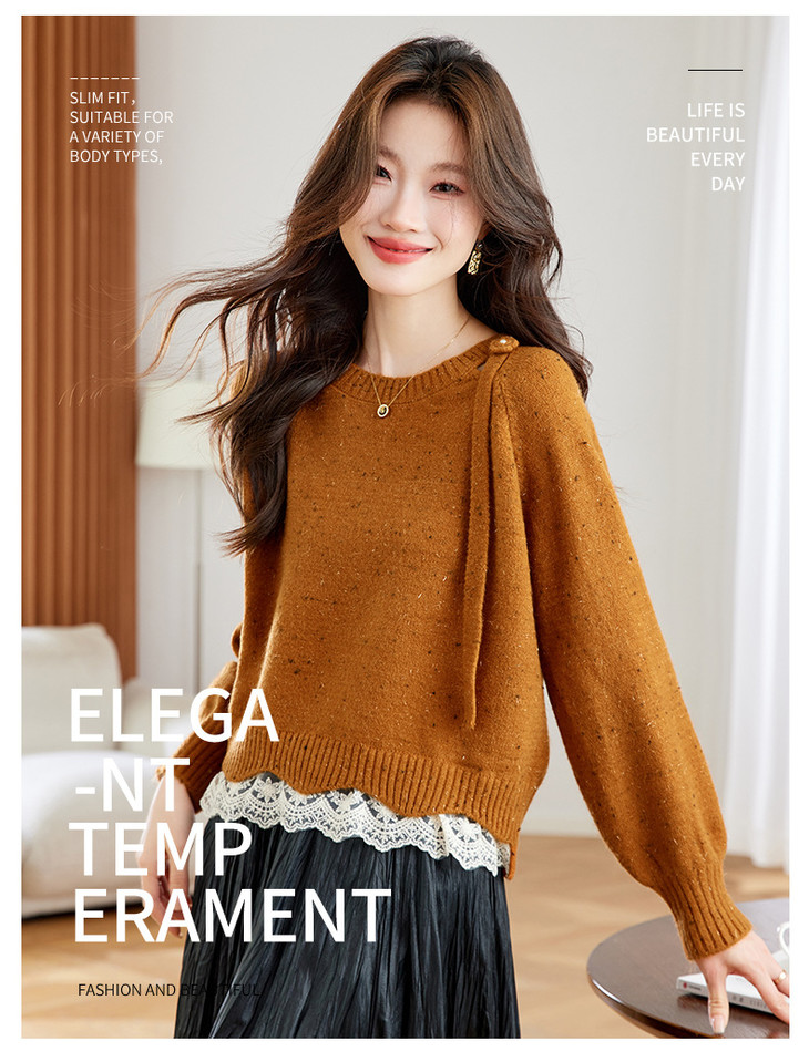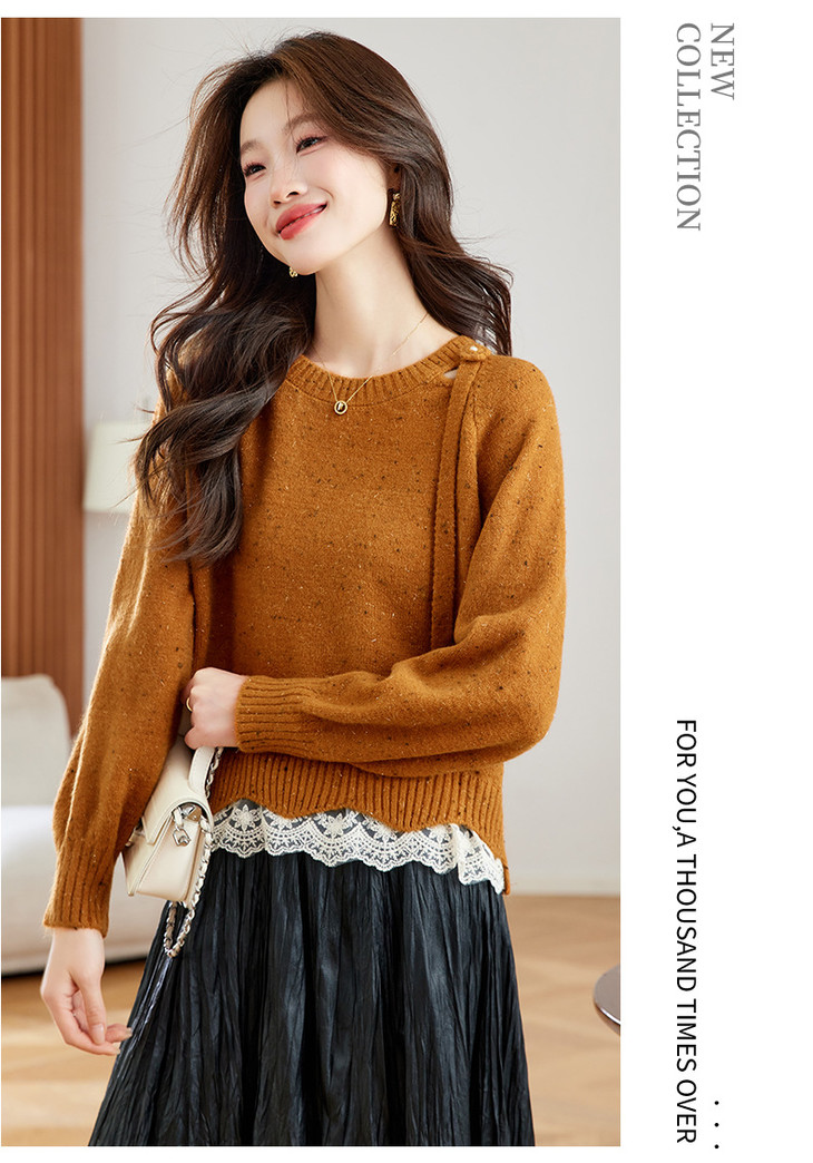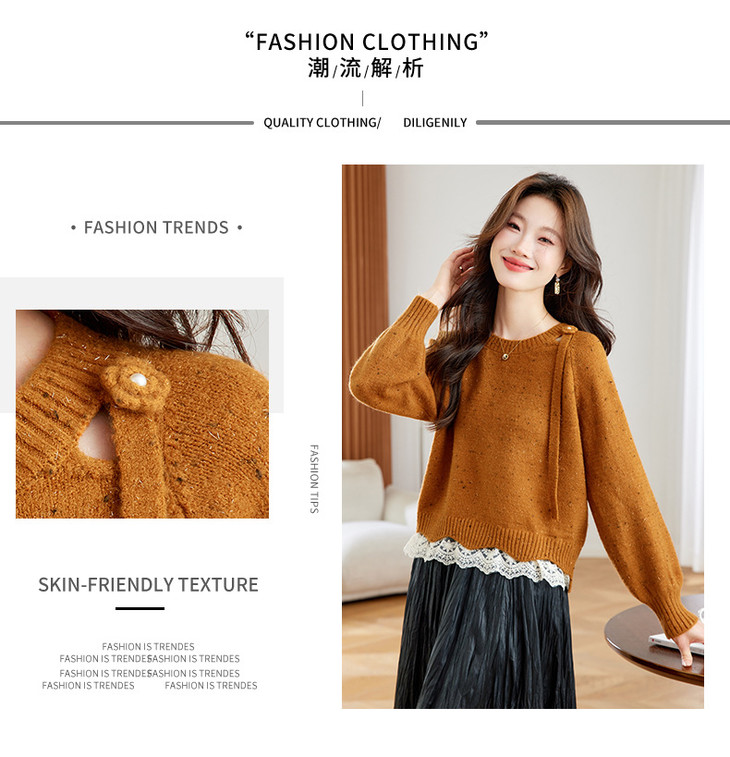 高级感蕾丝花边宽松毛衣打底衫,好看的针织衫上衣厚CC-XFY-3317