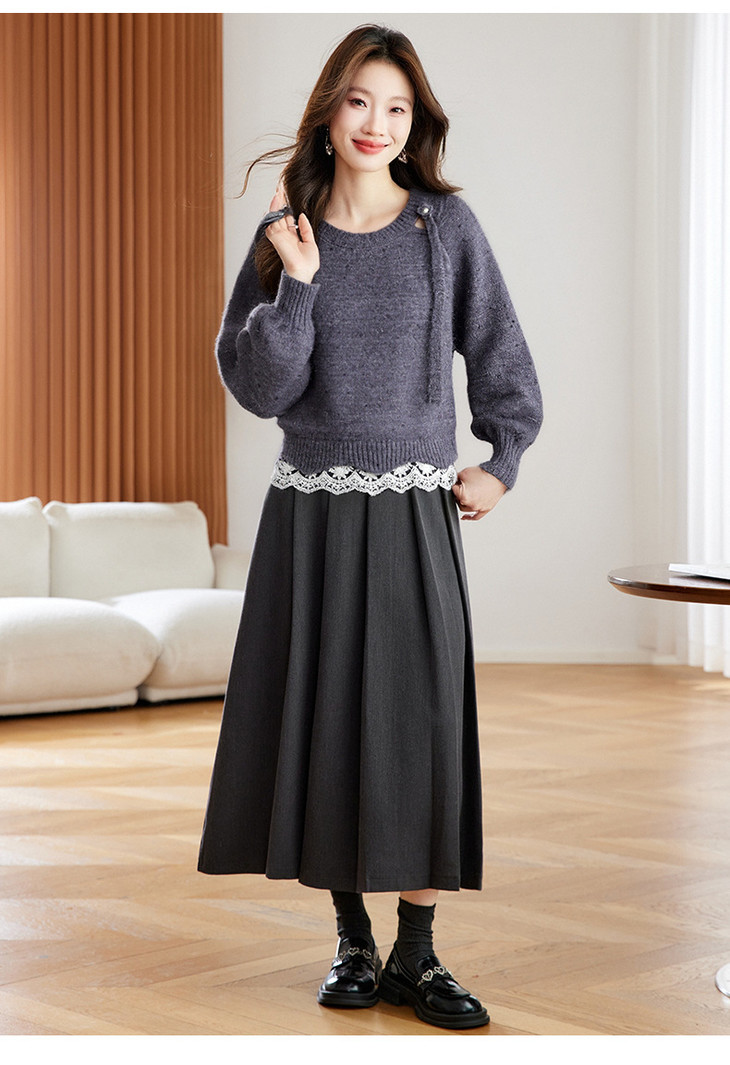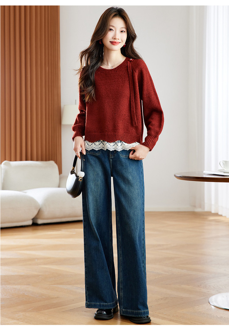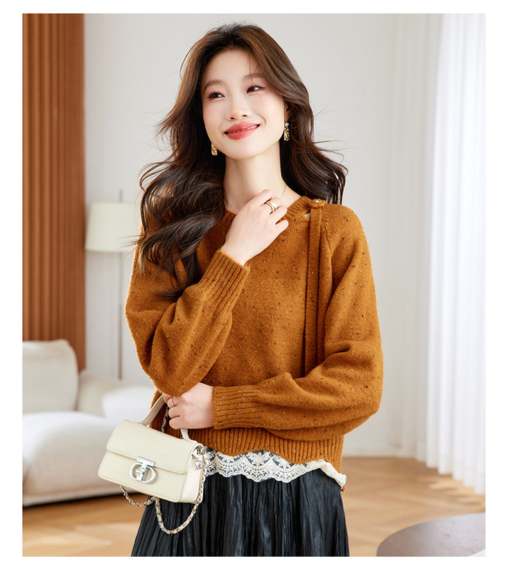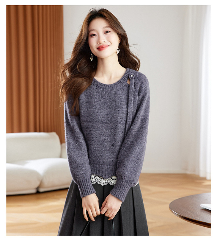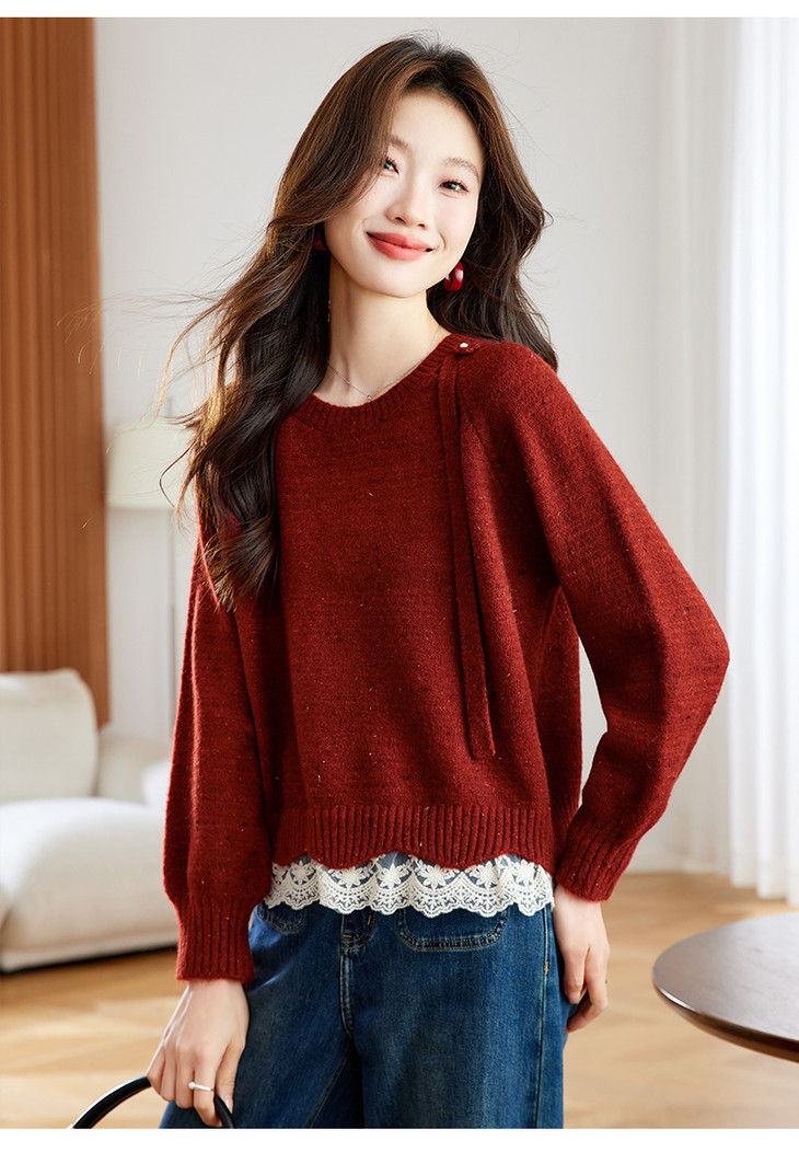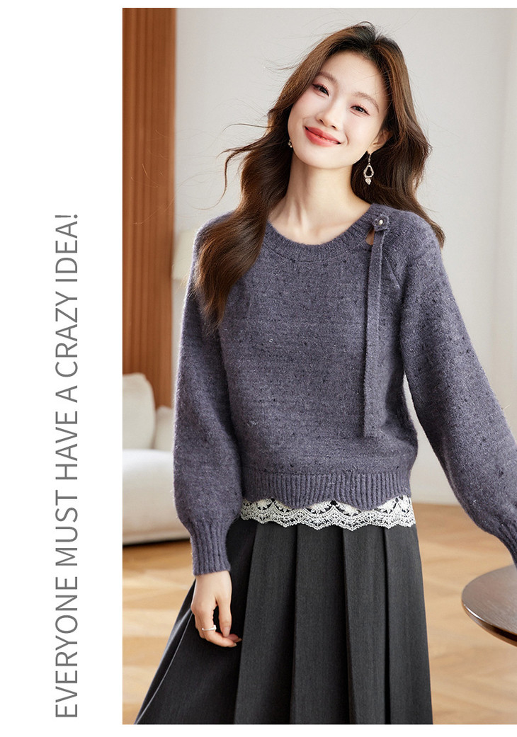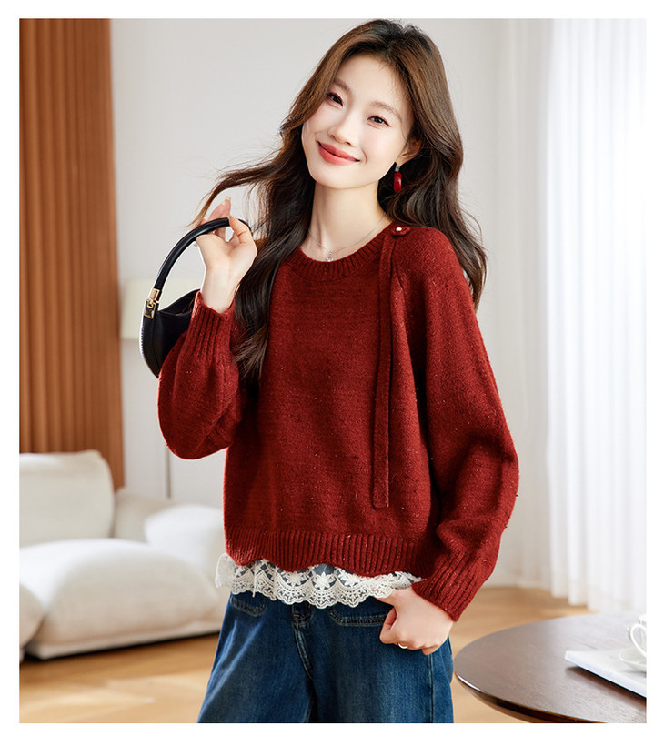 高级感蕾丝花边宽松毛衣打底衫,好看的针织衫上衣厚CC-XFY-3317
