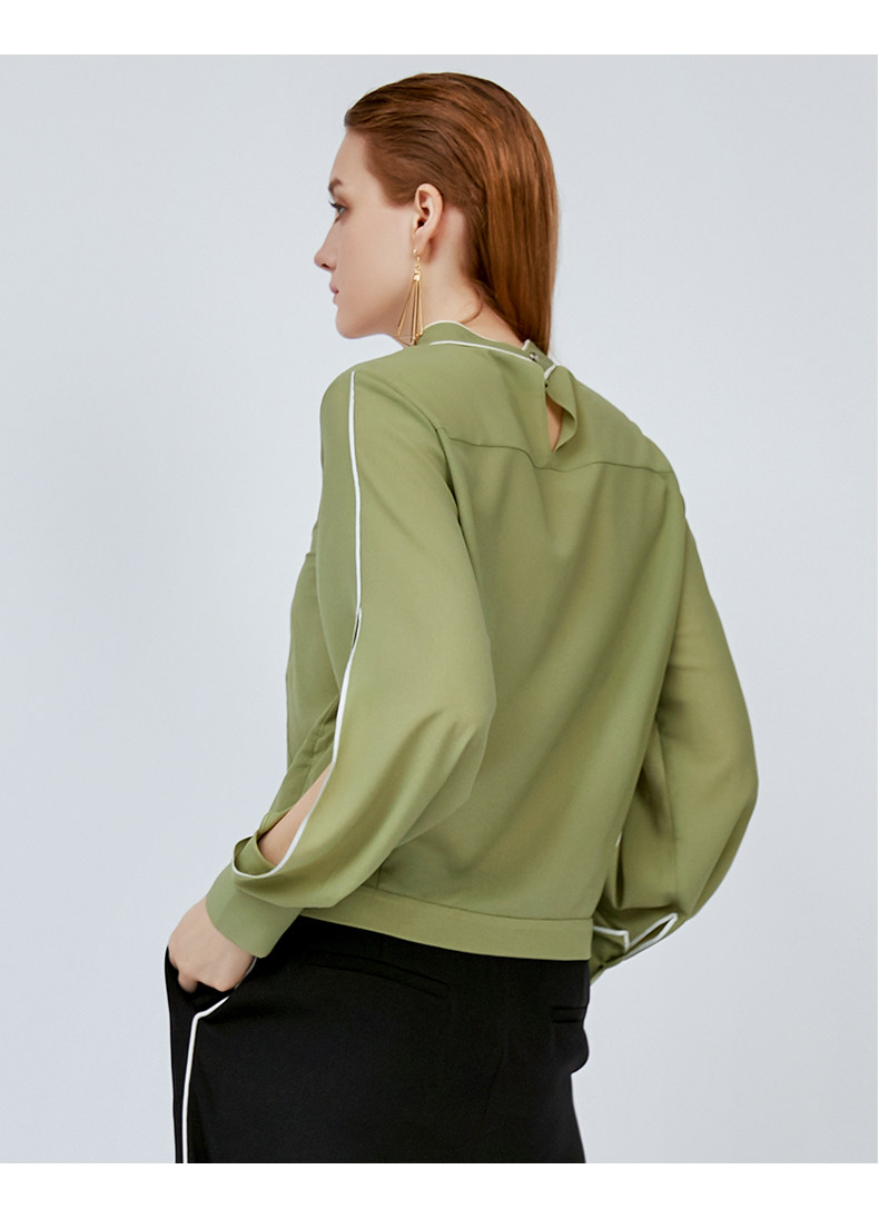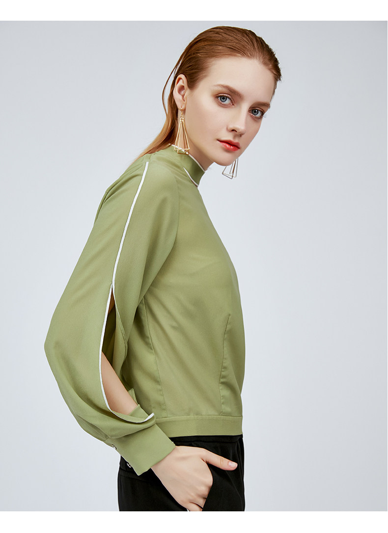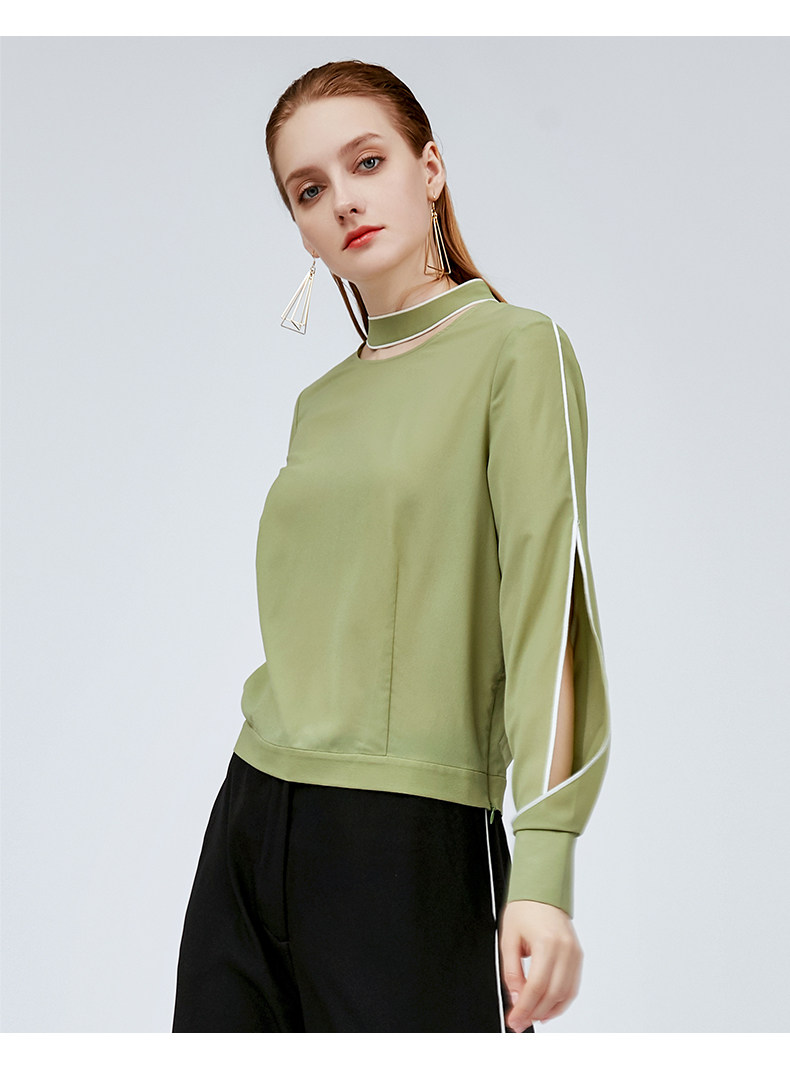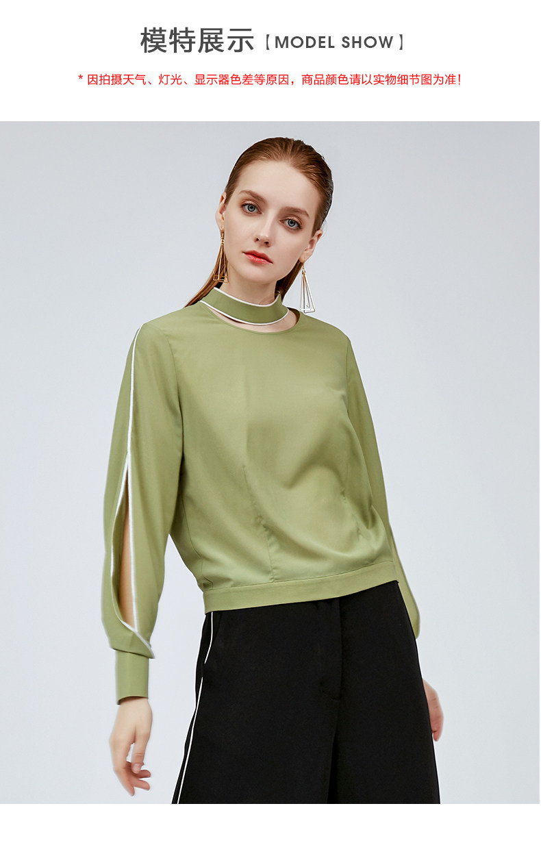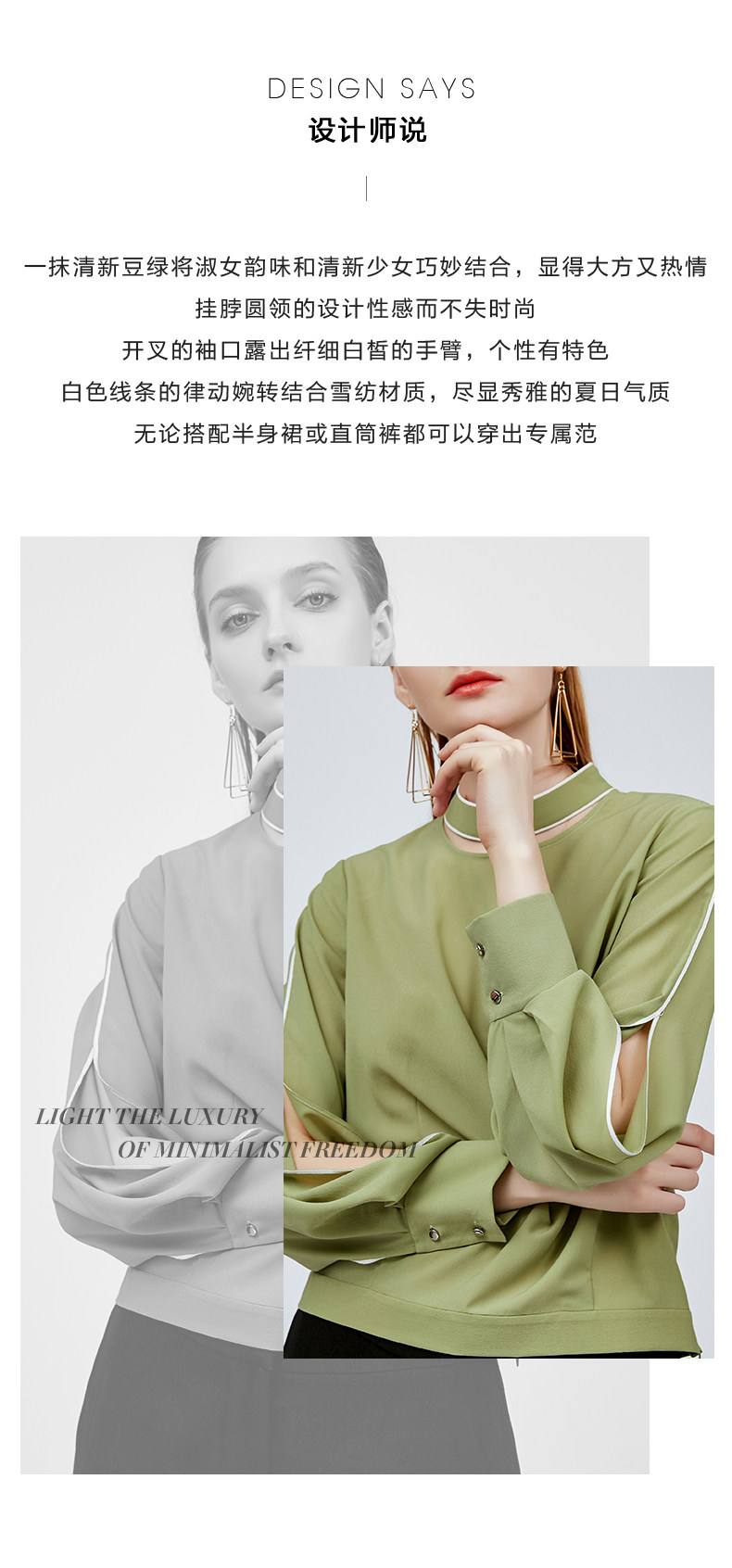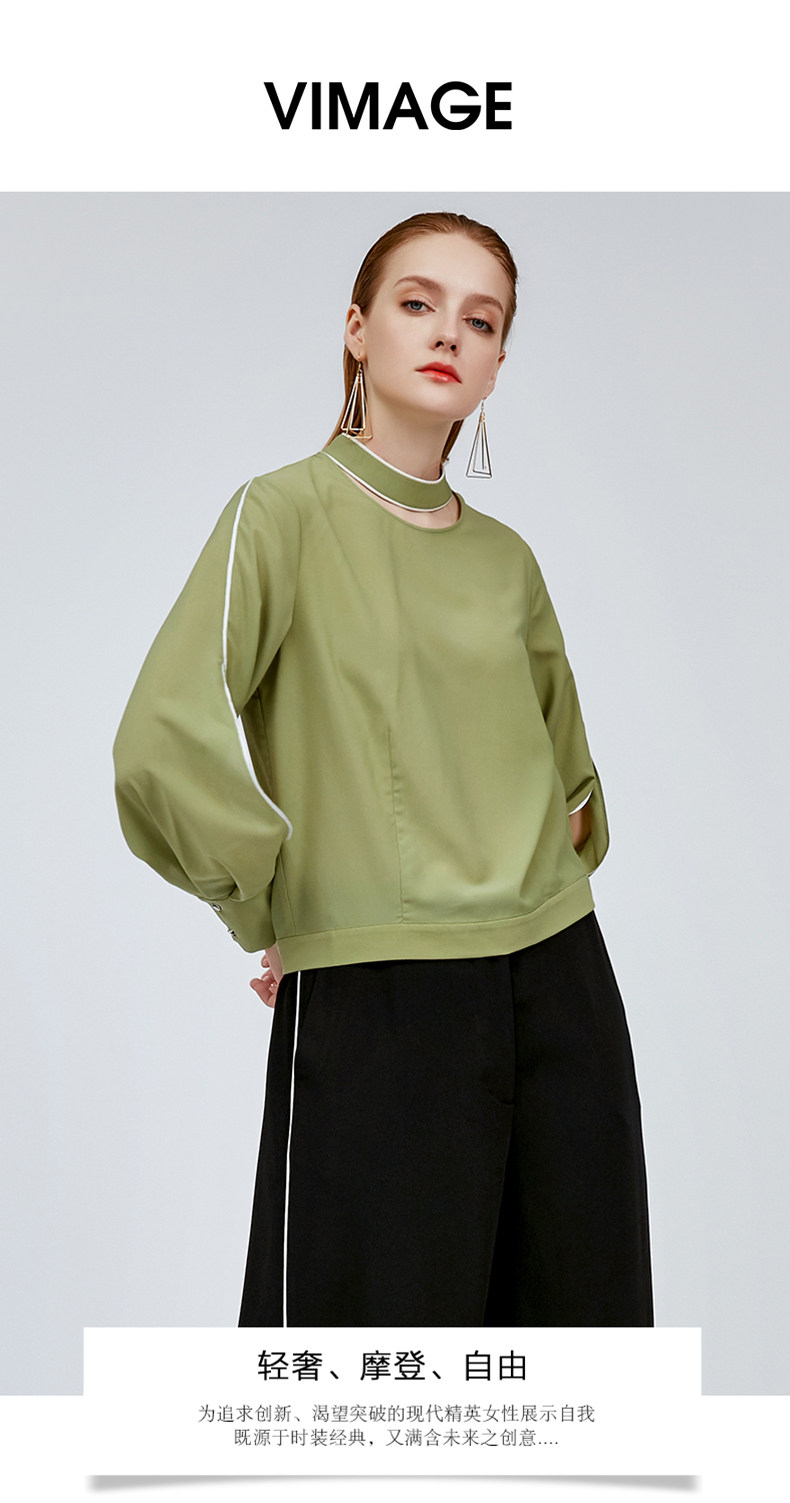vimage纬漫纪新款心机衬衫设计感超仙女豆绿色挂脖衬衫女衬衣V1113705